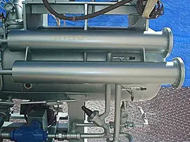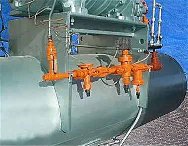 Paquete compresor de tornillo FES 575 / Mycom 250LUD-MX. Modelo: 575 / 250LUD-MX. S/N: 2512498. Refrigerante: R-717, amoniaco. Presión de prueba de fugas: 313 psig. Presión de prueba hidrostática: 470 psig. Configuración Vi: 3.6. Desplazamiento: 1.670 cfm. Separador de aceite FES, S/N: 87107, Nat'l Bd: 2928, MAWP: 250 psi, temperatura máxima de trabajo: 200 °F. Bomba rotativa Viking, Modelo: AL4195, S/N: 11687589. Motor eléctrico Reliance, 7-1/2 hp, 1175 rpm, 230/460 V, 20,4/10,2 amperios, 60 Hz, trifásico. Panel de control FES Micro II, 120 V. Motor eléctrico Reliance, 700 hp, 3570 rpm, 4000/2300 V, 87/151 amperios, 60 Hz, trifásico. Entradas: (1) 14 pulg. de diámetro. Puerto de succión de refrigerante con un diámetro de 17 pulgadas. brida. Salidas: (1) 5 pulg. de diámetro. tubo de descarga de refrigerante. Dimensiones totales: 13 pies 1 pulgada de largo x 4 pies 8 pulgadas de ancho x 8 pies 4 pulgadas de alto. Tiempo de funcionamiento del compresor: 39,134 horas. (SR450) (ACN950).