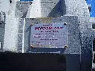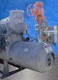 Paquete de compresor reforzador de tornillo FES 575B / Mycom 250LUD - 700 HP. Modelo: 575B / 250LUD 3.6Vi. S/N: 2512369. Motor Reliance, 700 hp, 3570 rpm, 2300/4000 V. Separador de aceite FES, MAWP: 250 psi. Panel de control Mycom Mypro-M. Capacidad: utilizado por última vez con R-717 que produce 598,6 toneladas y 598,6 CV. CV de freno por tonelada: 1.163. Configuración Vi: 3.6. Desplazamiento: 1.670 cfm. Dimensiones totales: 12 pies 11 pulgadas de largo x 4 pies 6 pulgadas de ancho x 7 pies 9 ½ pulgadas de alto (h4)(SR550) (ACN950)