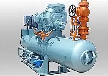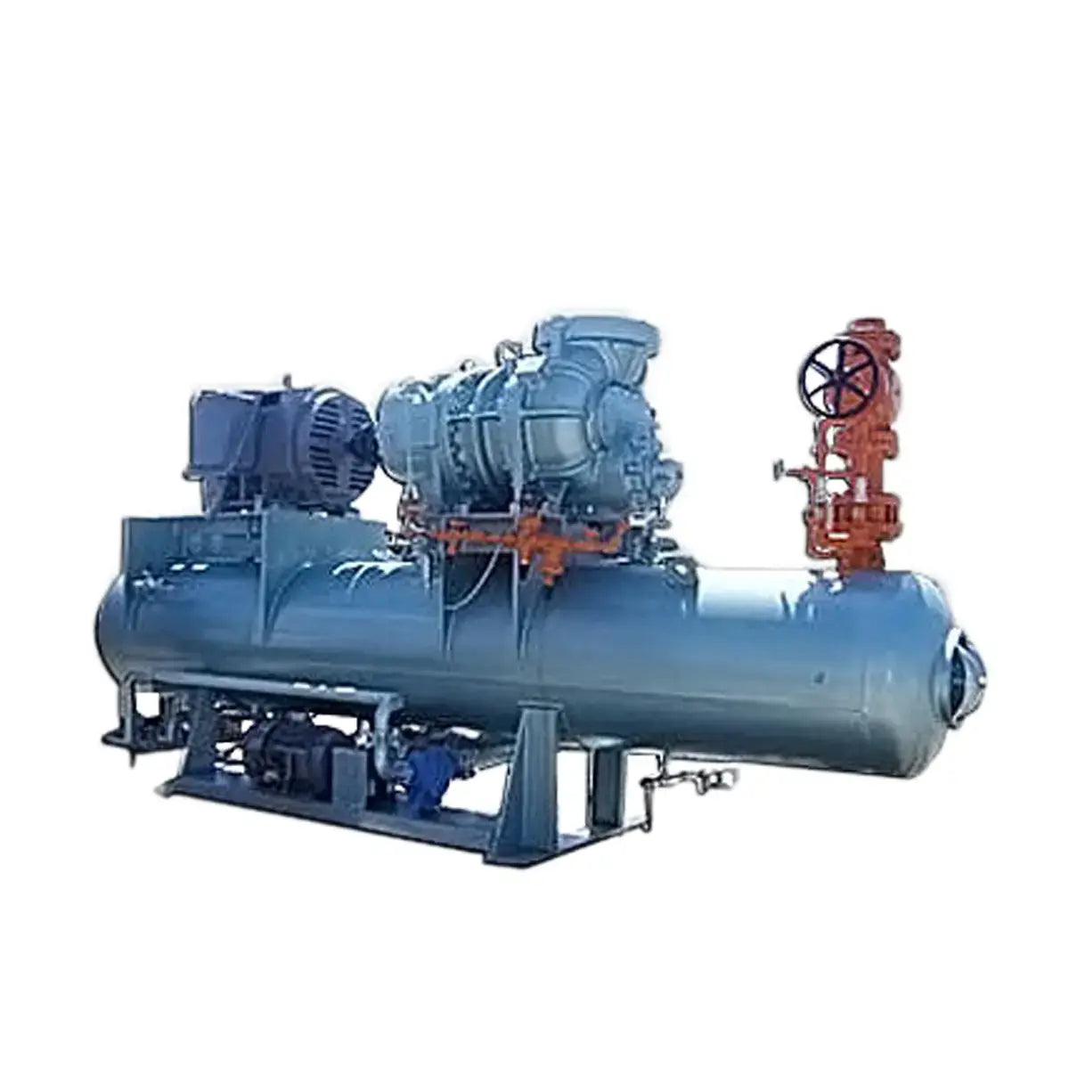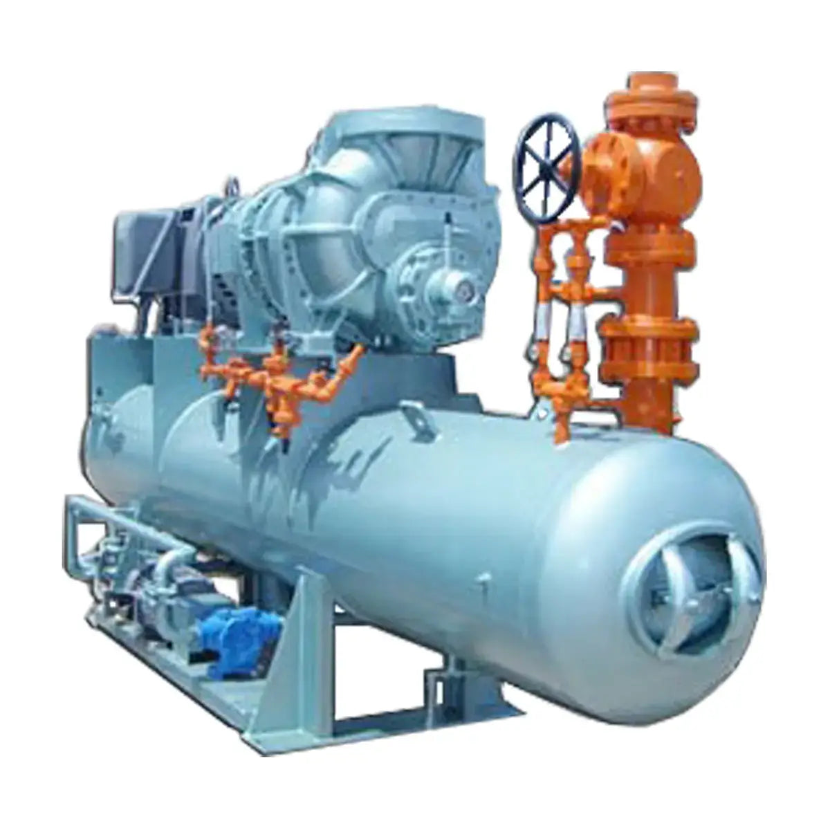 Paquete de compresor de tornillo rotativo reforzador FES 775 / Mycom 320 SU-LX. Modelo: 320 SU-LX. Refrigerante: R-717 (amoniaco). Motor Toshiba, 250 hp, 3540 rpm, 2300/4160 V. Separador de aceite FES, MAWP: 250 psi a 300 °F, MDMT: -20 °F. Panel de control Mycom Mypro-M. Capacidad nominal: 254 toneladas con una temperatura de succión de -35 °F y una temperatura de descarga de 20 °F. Configuración Vi: 2.6. Desplazamiento: 2230 cfm. Dimensiones totales: 15 pies 4 pulgadas de largo x 5 pies. Ancho x 7 pies. 4 pulgadas de alto (H4)(SR500) (ACN1192). NOTA: Este paquete ya no tiene motor.