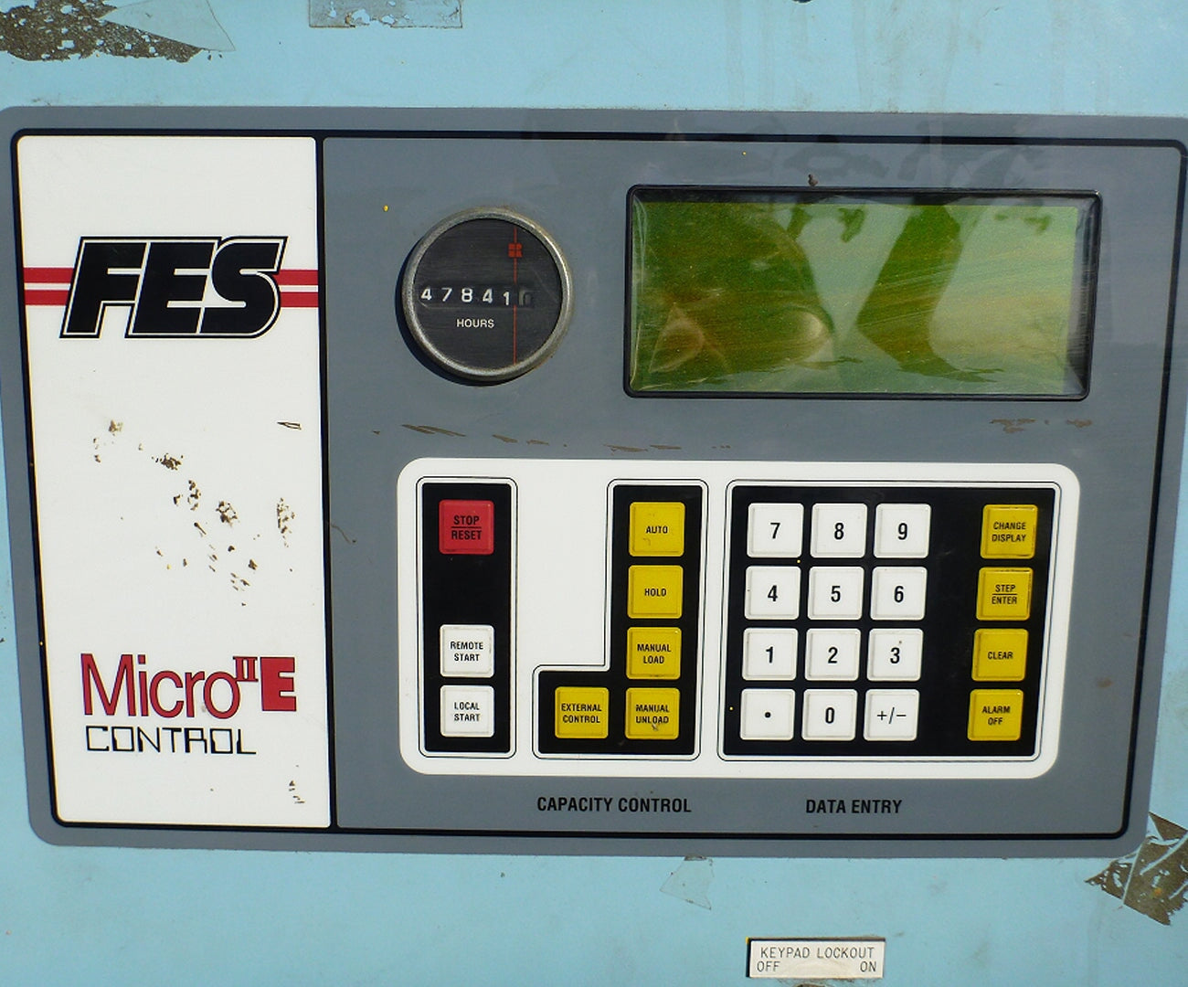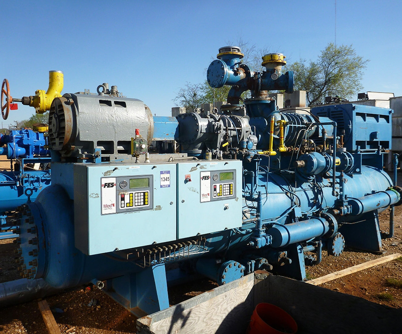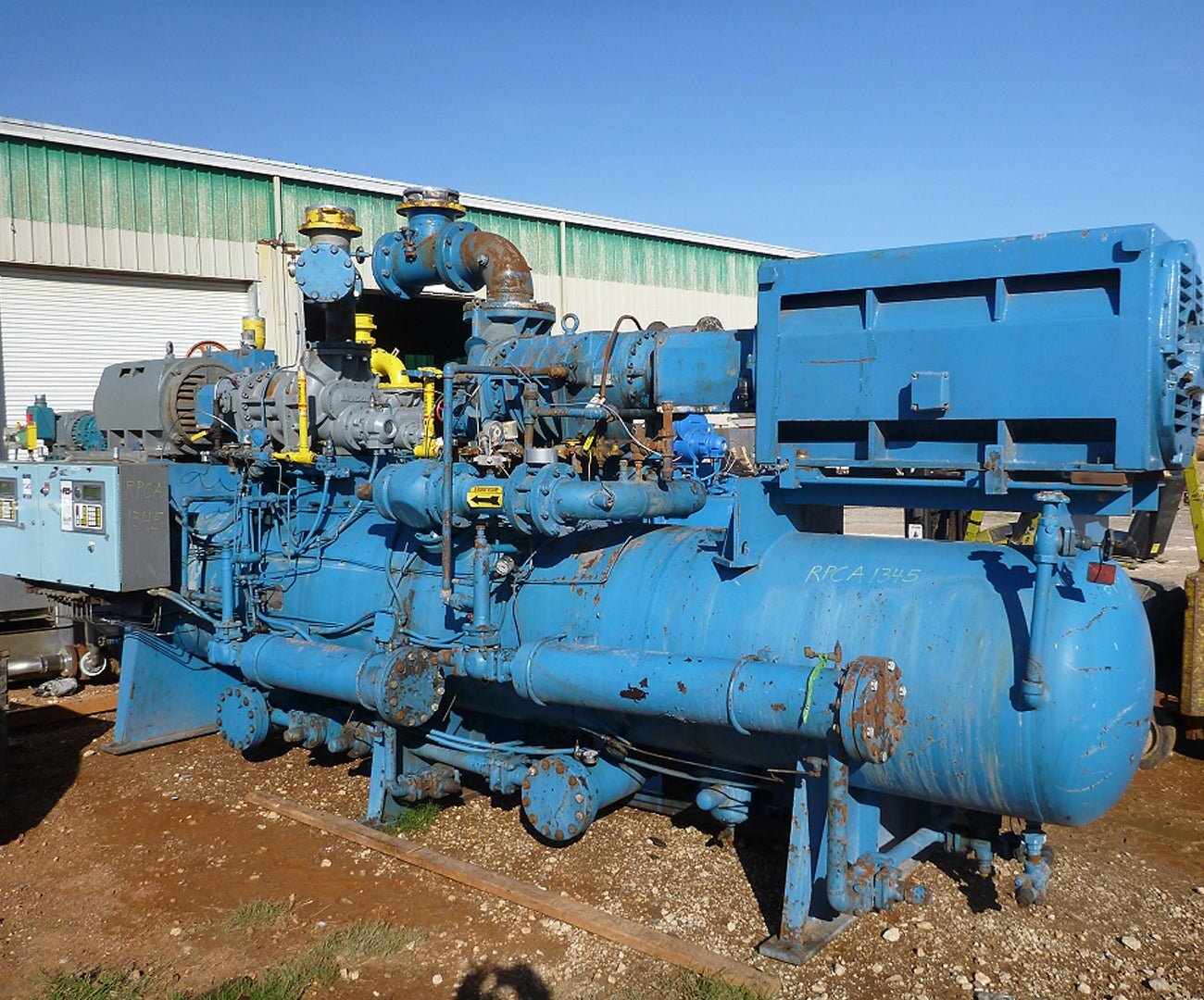 Paquete de compresor de doble tornillo FES / Mycom / Reco. Compresor mycom. Modelo: 250 lúmenes. S/N: 2577185. Conectado al motor GE. 800 CV, 460 V, 896 A, 3575 rpm. Compresor reco. Modelo: 200 LG-MX. S/N: 2012051. Adjunto al motor Toshiba. 350 CV, 460 V, 300 A, 3540 rpm. Montado en tanque común con controles Micro IIE.