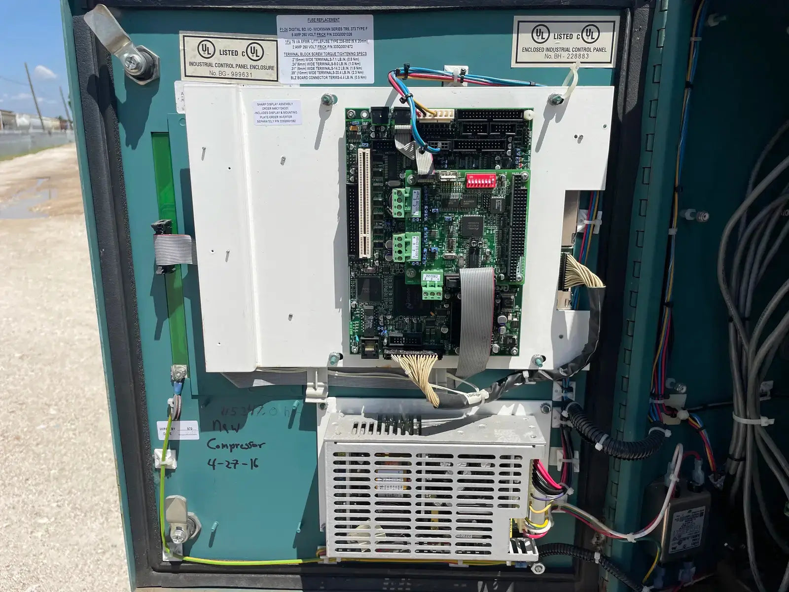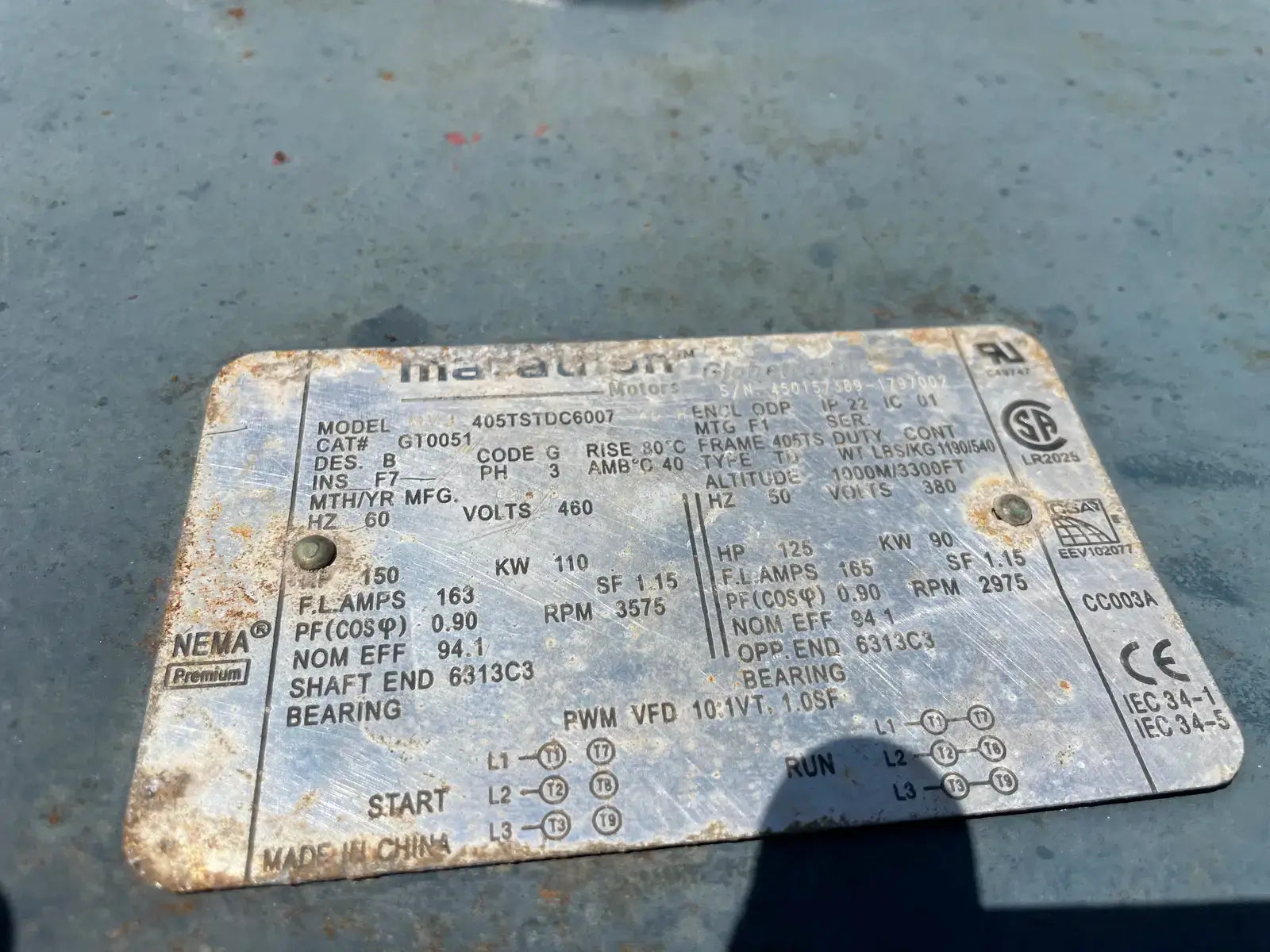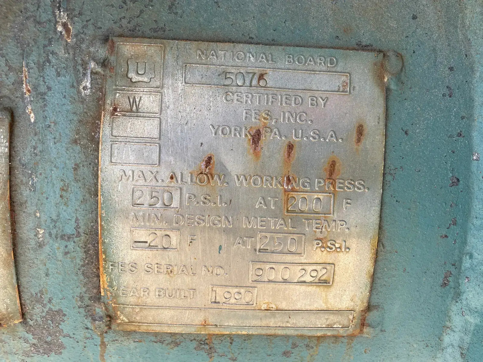 Paquete de compresor de tornillo rotativo Frick. Compresor de tornillo rotativo GEA: Modelo: 155, Número de serie: MK1F-1320, Número de reconstrucción: RW220075, Fecha de reconstrucción: 04-16. Panel de control cuántico de Frick. Separador de aceite certificado FES: Junta Nacional: 5076. Presión máxima de trabajo permitida: 250 PSIG a 200 F. Temperatura mínima del metal de diseño: -20 F a 250 PSI. Número de serie FES: 900292. Año de construcción: 1990. Motor eléctrico Marathon: HP: 150, Hz: 60, Voltios: 460, PH: 3, FLA: 163, RPM: 3575, Bastidor: 405TS.