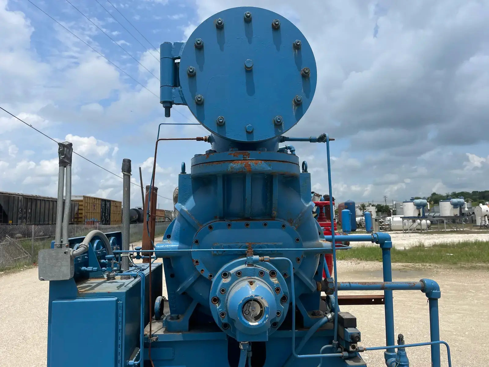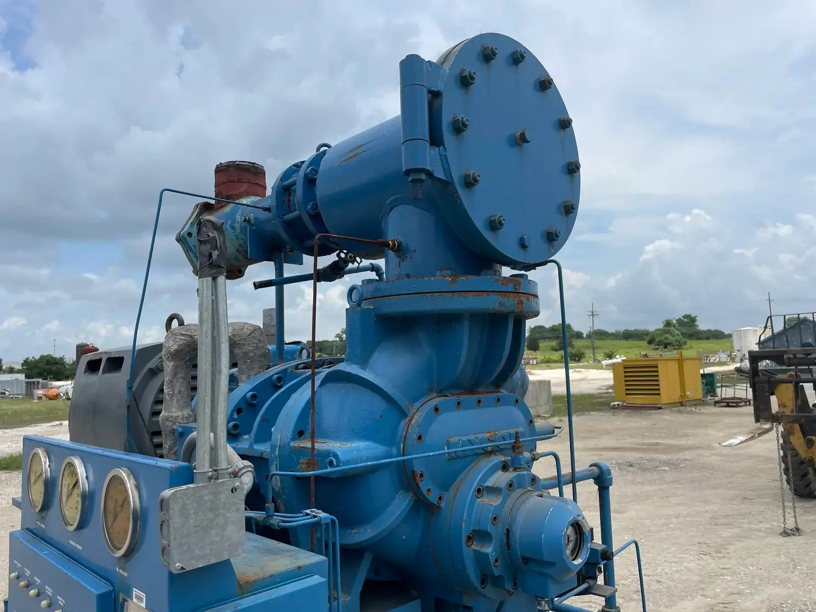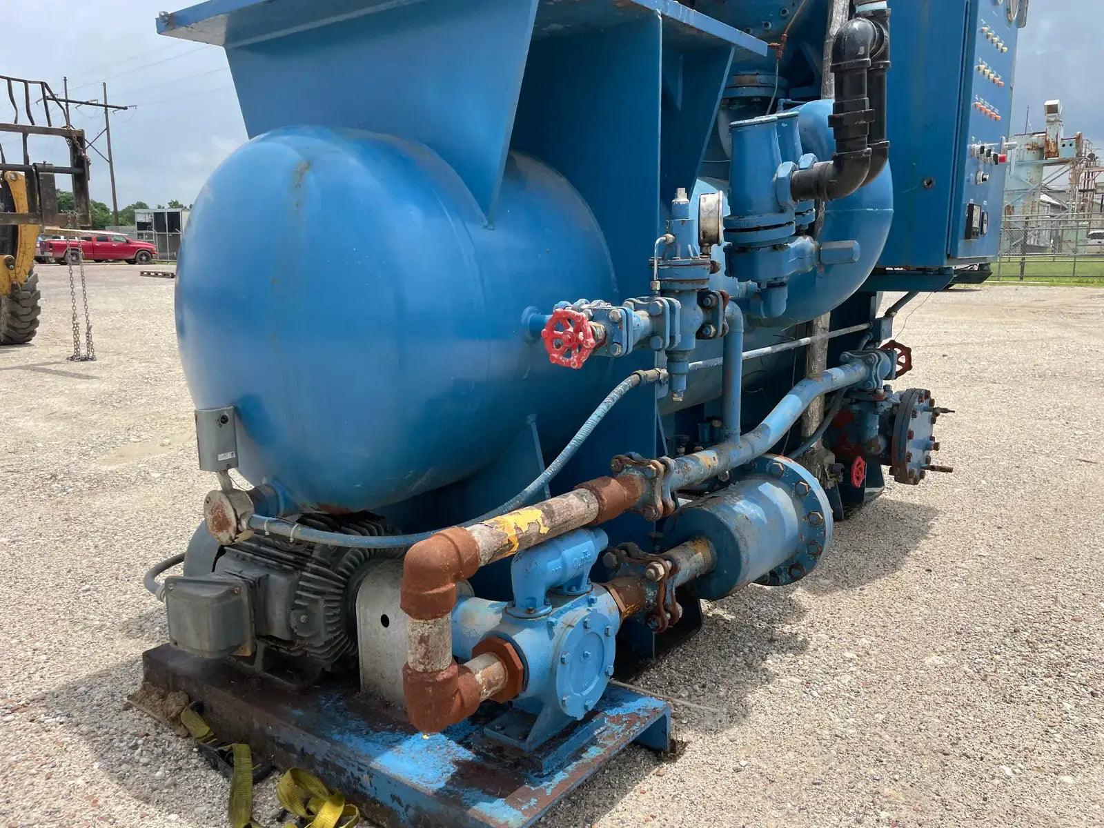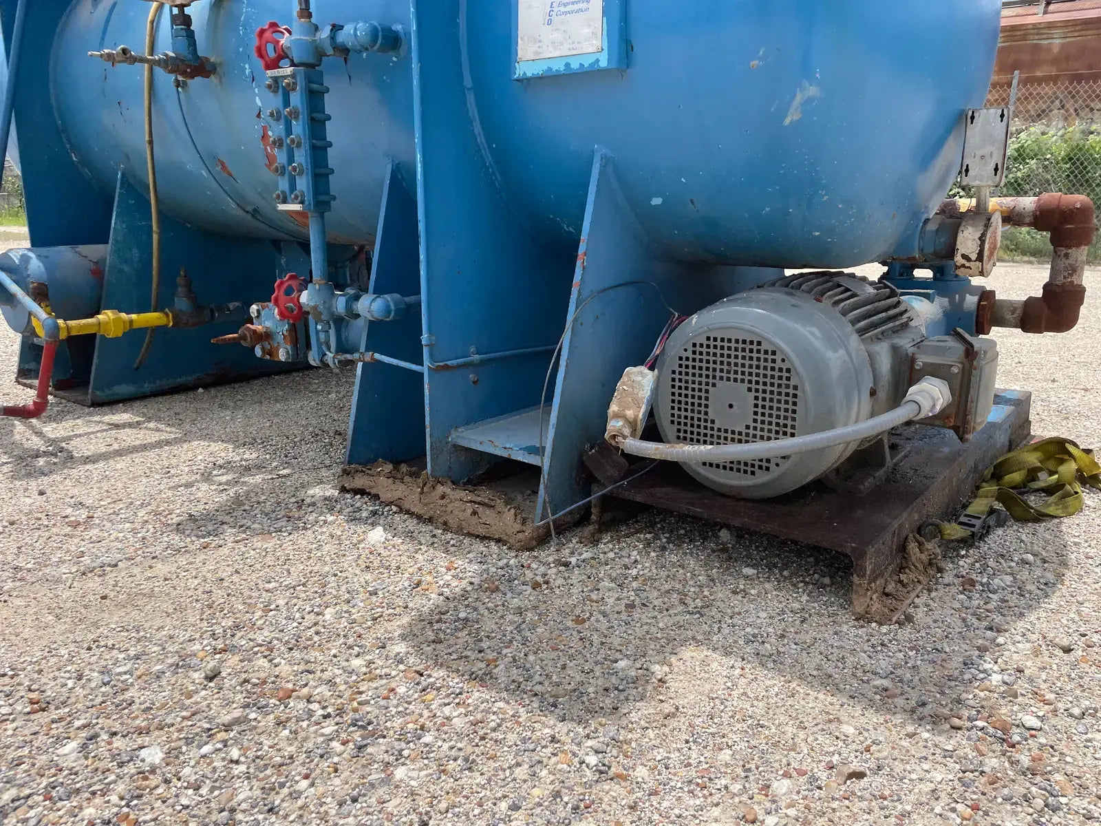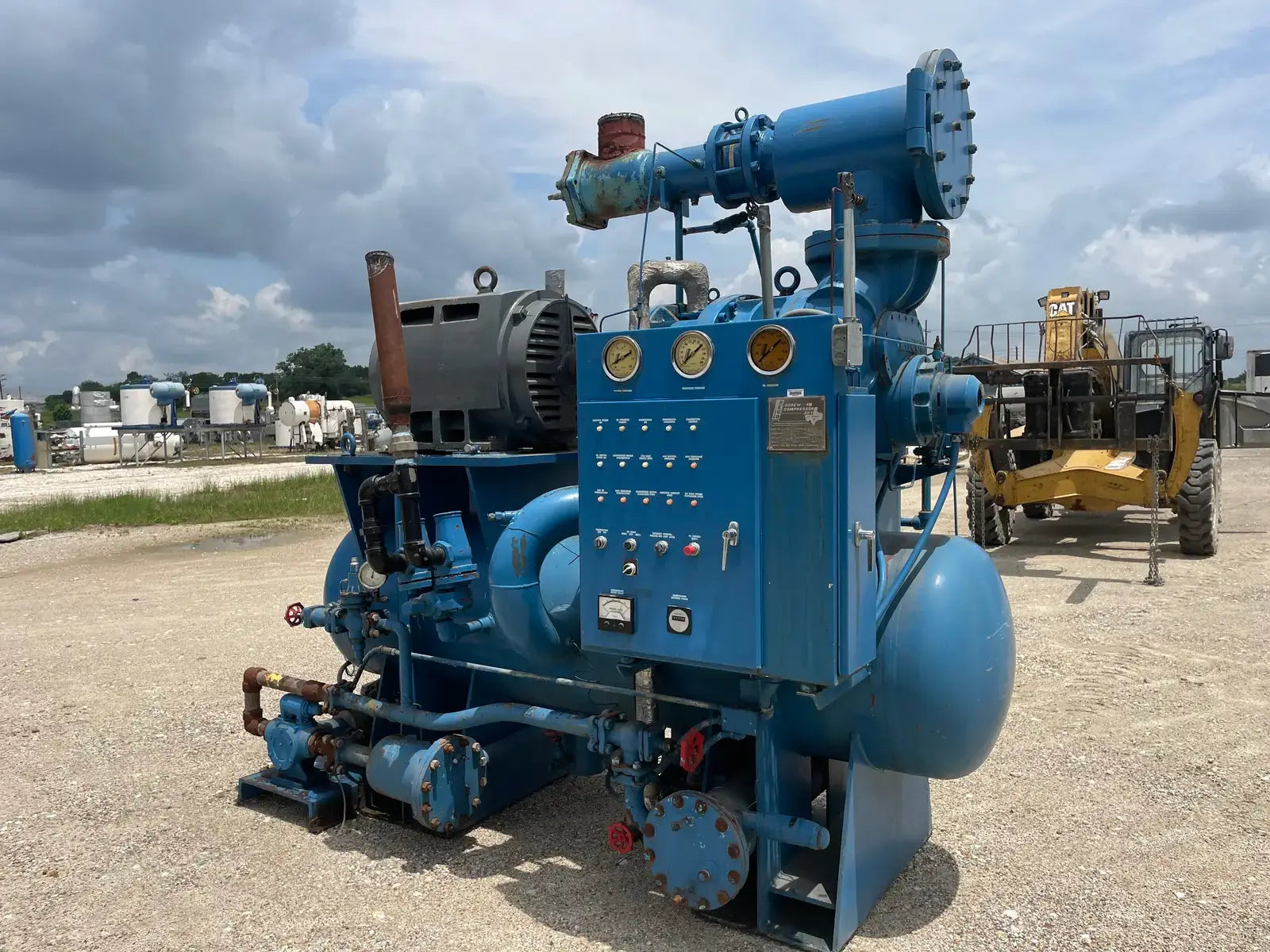 Paquete compresor de tornillo RECO. Modelo: 250SG-MX-3.6. Número de serie: S-1215-2. Refrigerante: Amoníaco. Tipo: Hi-Stage. PSIG máx.: 250. Fecha de fabricación: 1977. Caballos de fuerza: 450. Voltaje: 460. Hz: 60, Ph: 3. Compresor de tornillo desnudo rotativo Mycom. Modelo: 250-SG-MX. Número de serie: 2552059. RPM del compresor: 3600. Refrigerante: Amoníaco. Presión de diseño: 250 PSIG. Año de construcción: 1977. Separador de aceite RECO: Junta Nacional No: 2521. MDMT: 250 PSI @ 650 F. No. de serie Mfg: S12151. Año de construcción: 1976. Carcasa: .375. Cabeza: .375.