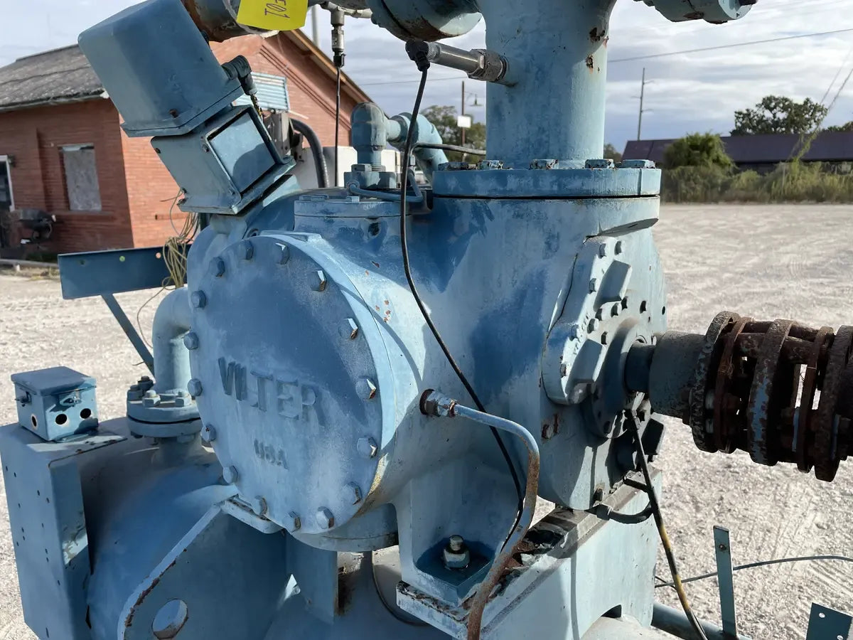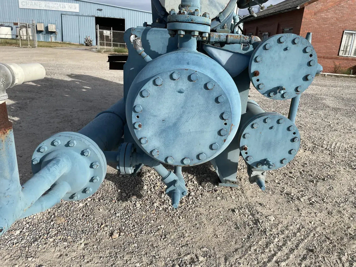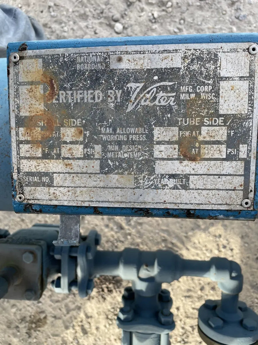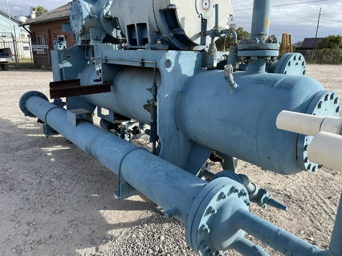 Compresor de tornillo semiherm simple serie Vilter VS. Número de serie: 1440R, Número de pedido: K53881, Presión de prueba del compresor (PSIG): 450, Número de modelo del compresor: VSS451 A025224BPAAAR. Peso del paquete unitario estándar: 4000. Los desplazamientos oscilan entre 778 y 2020 CFM. Falta placa de datos del paquete. Motor eléctrico Reliance: Estructura: 444TS, Tipo: P, Diseño: B, HP: 200, Voltios: 460, Hz: 60, Fase: 3, RPM: 3550, AMPS: 231, Servicio: Cont, Clase Ins: B, Tracción Cojinete de extremo: 65BC03X30x26, Cojinete OPP: 65BC03X30X26, NEMA NOM Eff: 91.7, Número de identificación: P44G0352D-01-OM/MN1811. Separador de aceite Vilter: Junta Nacional No: 38399, Máx. Prensa de trabajo permitida: 300 PSIG a 400 F, mín. Temperatura del metal de diseño: -20 F a 400 PSI, año de construcción: 1992, número de serie: A27606B. Enfriador de aceite Vilter: Junta Nacional No: 33410, lado de la carcasa: 400 PSIG a 400 F, -20 F a 400 PSI, lado del tubo: presión de trabajo máxima permitida: 300 PSIG a 400 F, temperatura mínima del metal de diseño: -20 a 300 PSI , Año de construcción 1992 Panel de control de modernización de refrigeración de M&M: Modelo: M100199G2, Número de esquema: M201450, Número de serie: 1440101, Voltaje de control: 120 VCA, Frecuencia: 50/60 Hz, Fases: 1, FLA máx.: 51 AMPS, Clasificación del motor: N/A, SCCR: 5KA@240V, Clasificación de carcasa: UL tipo 1.