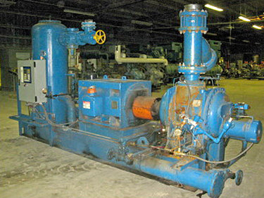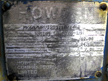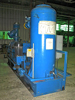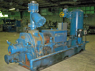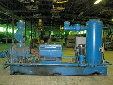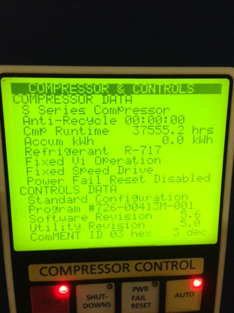 Paquete de compresor de tornillo rotativo Vilter VRS-1200 / Howden WRV255/1.10 usado. Modelo: VRS-1200/WRV255/1.10. Número de serie: MK6A/WRVI255110/1468. Contrato No: J03101 VR25106-1MN. Clasificación de capacidad: 409 toneladas a 466 BHP usando R-717 (amoniaco) con temperatura de succión de 20°F/33,5 psig y temperatura de condensación de 95°F y 181 psig. Desplazamiento: 1110 cfm. FES Systems, Inc. Panel de modernización GEA: ser. No. 02230103. Motor Louis Allis Armor Line: 500 hp, 3555 rpm, 4160v, 65 amperios, 60 Hz, trifásico. Horas totales de funcionamiento del compresor: 37555. Dimensiones totales: 16 pies 3 pulgadas de largo x 5 pies ½ pulgadas de ancho x 8 pies 2 pulgadas de alto.