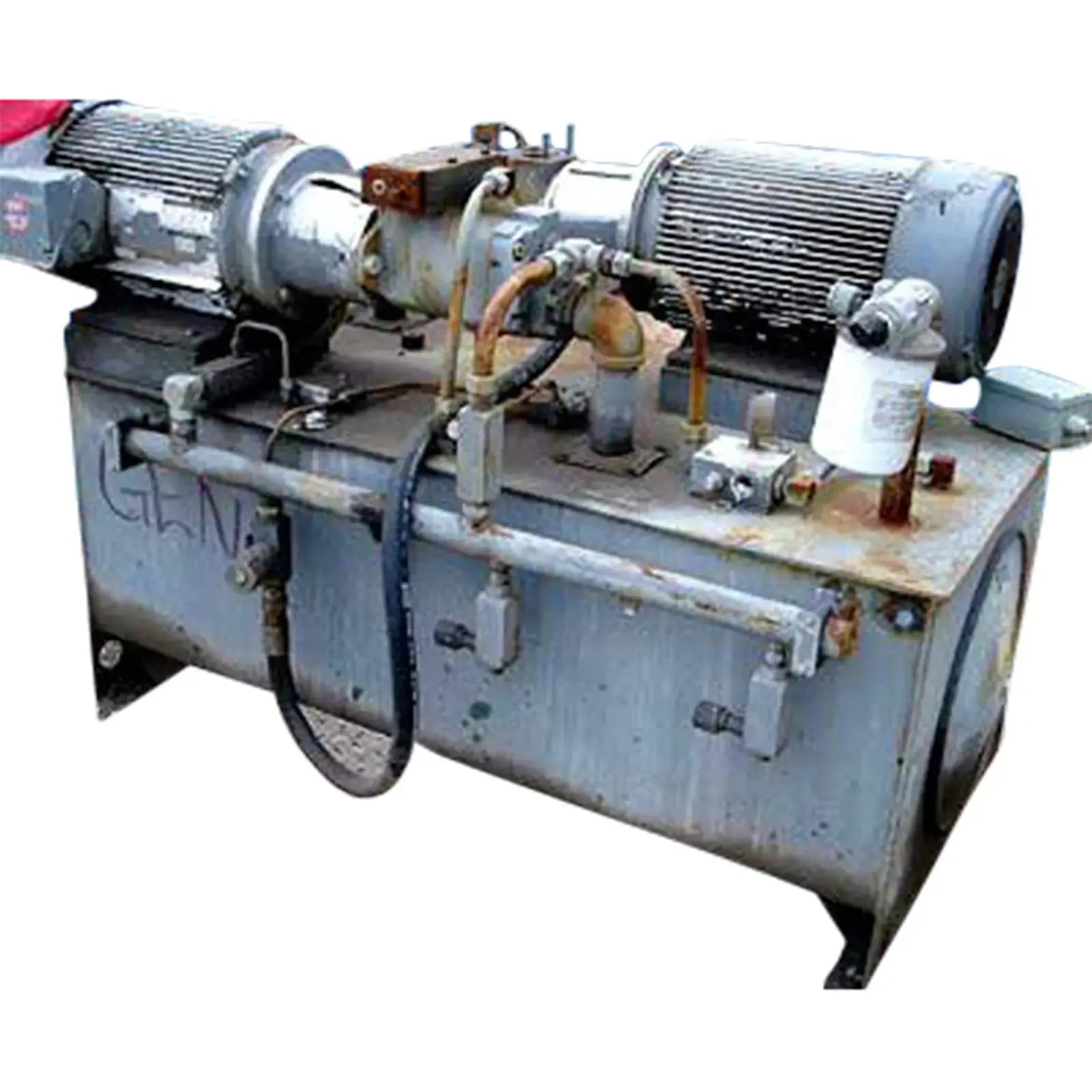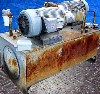 1991 Paquete de energía hidráulica Weston: 150 galones. Modelo: WFT120. S/N: 9141. Flujo nominal máximo: 34 gpm a 1250 psi. (2) Motores estadounidenses con bombas, 25 hp, 1765 rpm, 230-460 V, 63-31,5 FLA, 60 Hz, trifásicos. Entradas: (1) 1-1/2 pulg. de diámetro. TNP (hembra). Salidas: (1) 1-1/4 pulg. de diámetro. TNP (hembra). Dimensiones totales: 68 pulgadas de largo x 42 pulgadas de ancho x 46 pulgadas de alto (ACN128).