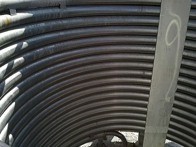 1997 Intercambiador de calor multitubular Stork para aplicaciones UHT/HTST. Fabricado por Stork en Holanda. Año: 1997. Serie: 20375. Los intercambiadores de calor Stork se utilizan comúnmente en la industria sanitaria, alimentaria, láctea, farmacéutica y bioquímica. La construcción es de acero inoxidable 316L. El diseño helicoidal dRam Industries reduce de forma industrial el espacio requerido, disminuye el tiempo de limpieza, aumenta la vida útil y aumenta la transferencia térmica (en comparación con las unidades de paso recto estándar). Peso estimado: 1700 libras. Tamaño del puerto: 2,25 pulgadas. Número de bobinas: 32, aproximadamente 45 pies de bobina. Dimensiones totales: 8 pies de diámetro por 7,5 pies de alto.