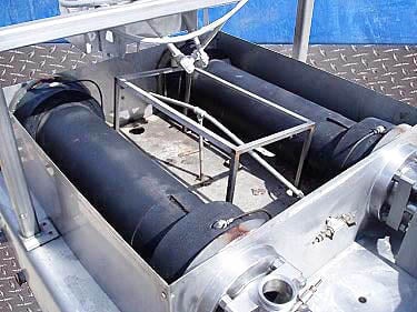 Paquete de lechería Intercambiador de calor de superficie barrida Rota-Pro. Número de serie: HP-2-125-S. Superficie de calefacción: 9,5 pies cuadrados/cilindro. Enfriado con glicol. Se proporcionan camisas de cilindro ASME estándar para calentar con agua o vapor hasta 450 °F o enfriar con agua, salmuera, glicol u otros medios líquidos adecuados. Dimensiones del cilindro interior: 6 pulgadas de diámetro x 48 pulgadas de largo. Cilindro de níquel cromado. Los raspadores giratorios, con cuchillas raspadoras fijas, barren continuamente la superficie del cilindro para limpiar el producto, produciendo simultáneamente un nivel altamente deseable de mezcla y agitación del producto que contribuye a la consistencia en la identidad del producto final. Motor Louis Allis, 15 hp, 1770 rpm, 440 V, 20 amperios, 60 Hz, trifásico. Entradas: (2) 2-1/2 pulg. de diámetro. accesorios roscados, (1) 1-1/2 pulg. de diámetro. bisel con tuerca hexagonal (media). Salidas: (2) 2 pulg. de diámetro. accesorios roscados, (1) 1-1/2 pulg. de diámetro. puerto de medios. Dimensiones totales: 88 pulgadas de largo x 51 pulgadas de ancho x 65 pulgadas de alto (H17).