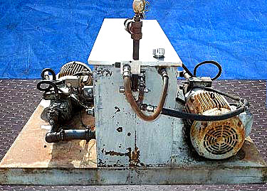 Paquete de potencia hidráulica doble: 30 HP. (2) Motores Baldor, 30 hp, 1760 rpm, 230/460 V, 74/37 amperios, 60 Hz, trifásicos. (2) Bombas de pistón Hydura. Bomba #1- Modelo: PVW 45L SAY CNSN; Bomba #2- Modelo: PVW 45R DICE CNSN. Capacidad del tanque: 150 galones. Indicador de nivel de cristal de aceite. Manómetro: 0-2000 psi. Tanque de entrada: hembra roscada de 2 pulg., (2) filtros. Tanque de salida: hembra roscada de 3-1/2 pulg., conexión tanque/bomba: tubería de 3 pulg., (2) filtros dentro del tanque. Dimensiones totales: 76 pulgadas de largo x 60 pulgadas de ancho x 37 pulgadas de alto.
