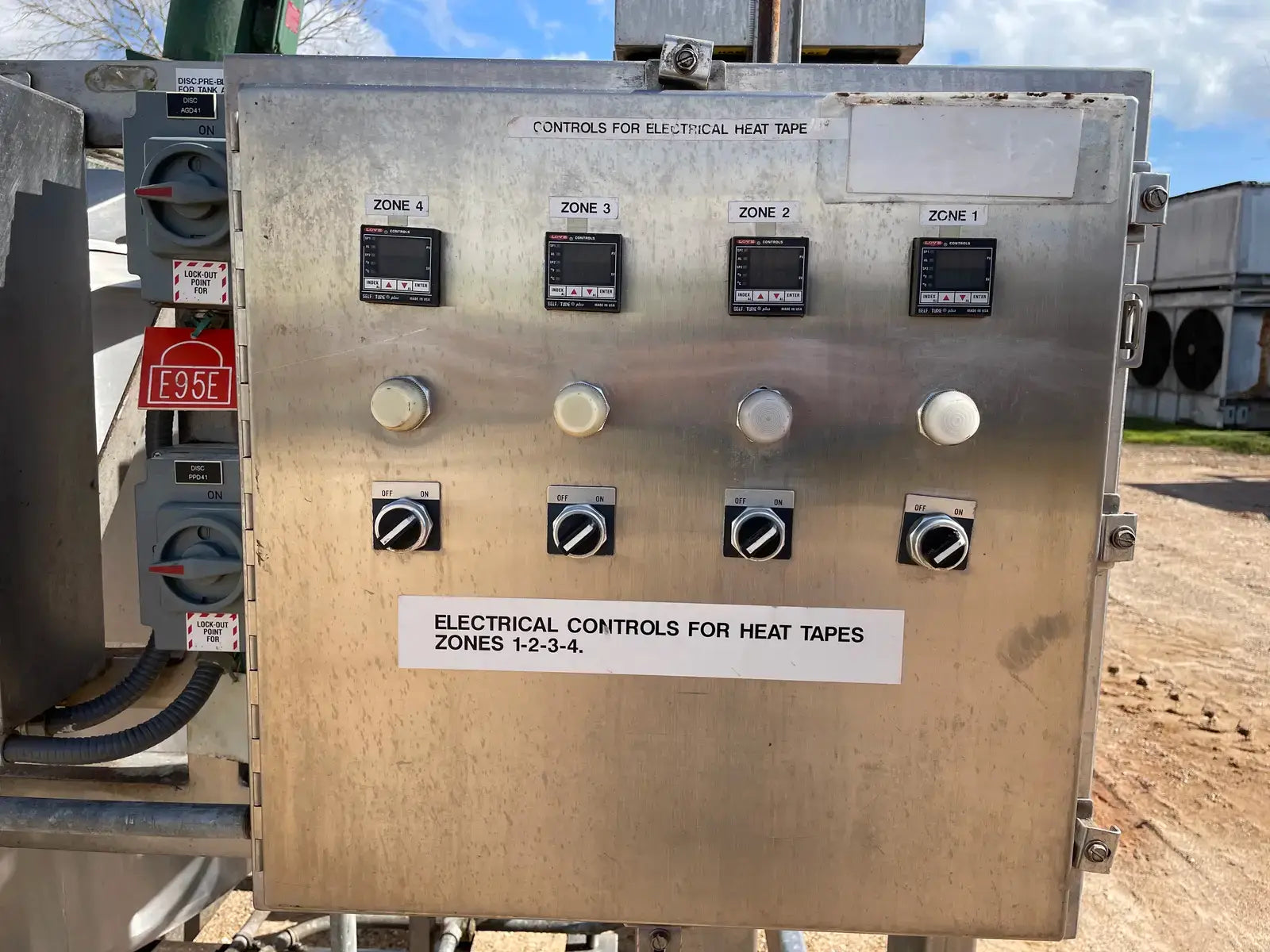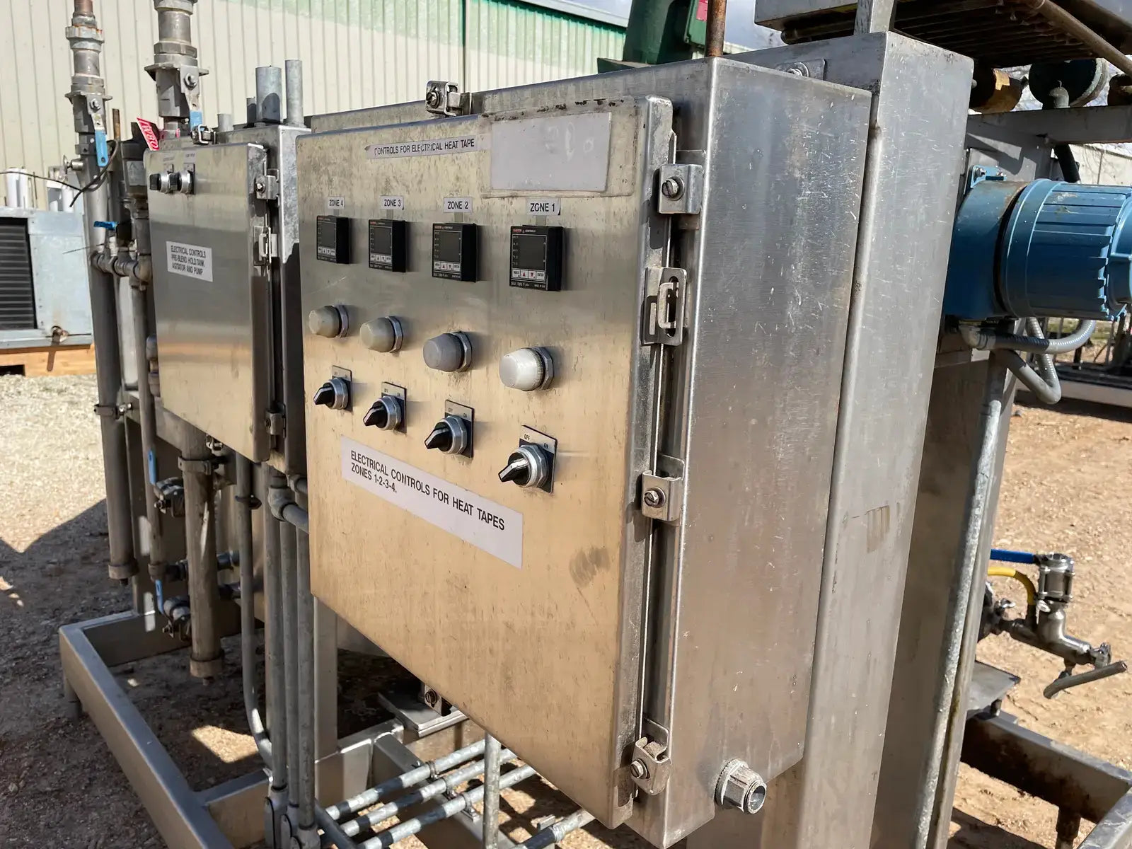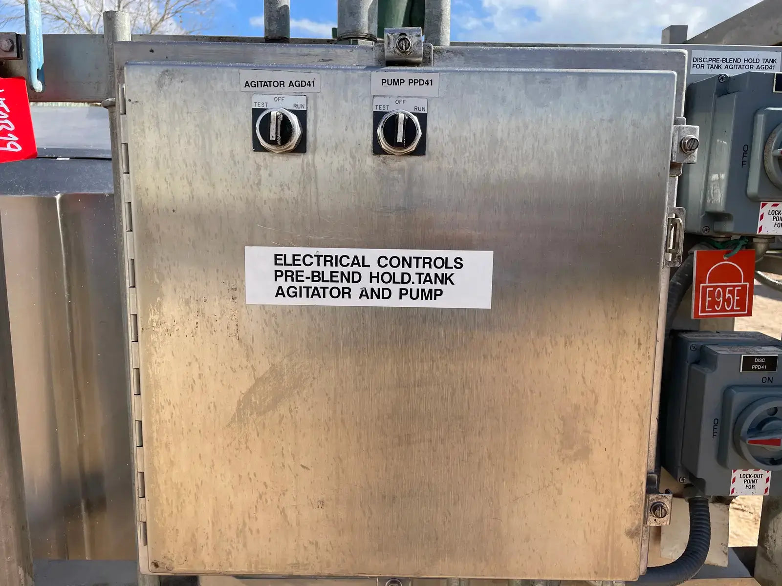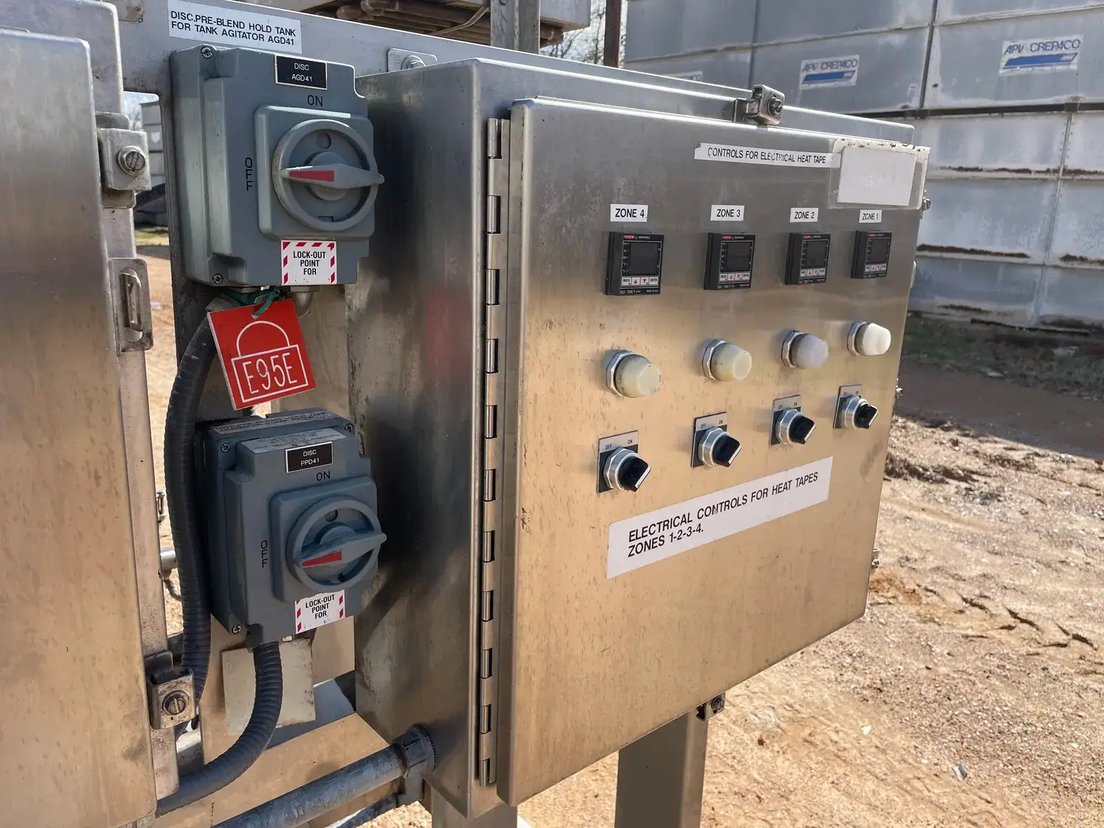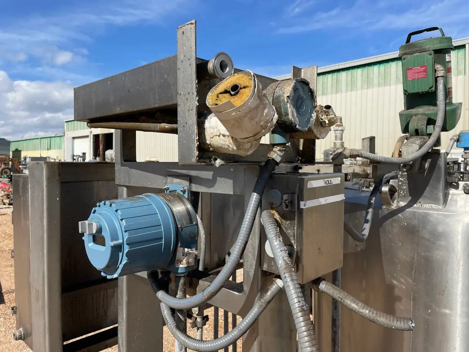Paquete de tanque de mezcla agitado Waukesha Cherry-Burrell con dos agitadores, arrancadores de control y una bomba de desplazamiento positivo Waukesha. Certificado por Waukesha Cherry-Burrell. Recipiente: Junta Nacional No: 4607. Presión máxima de trabajo, intercambiador de calor: 100 PSIG @ 350 F. Temperatura mínima de diseño del metal, intercambiador de calor: -20 F @ 100 PSIG. Número de serie: E-357-96. Año de construcción: 1997. Capacidad de la embarcación: 300 GPM. Peso vacío: 3000 LBS. Bomba de desplazamiento positivo Waukesha: Modelo: 015 U1, Número de serie: 1000003231644.