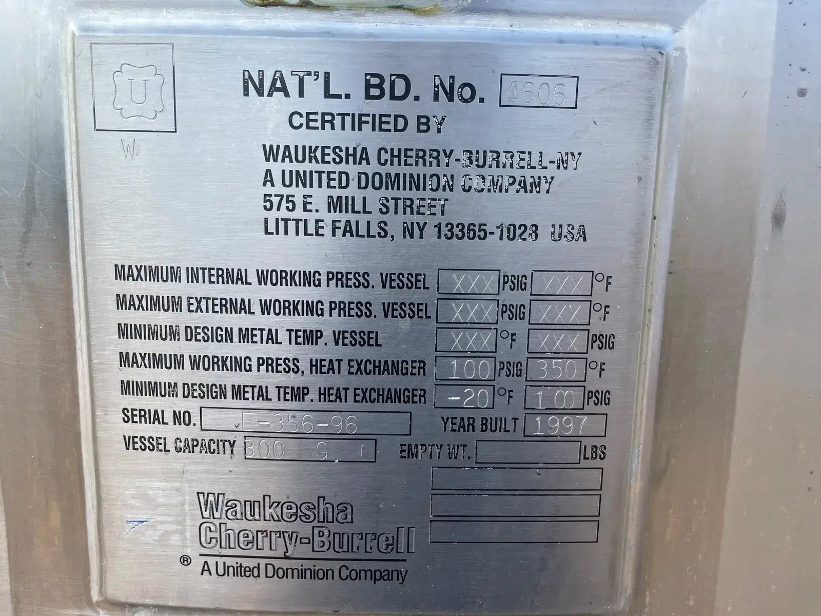 Paquete de tanque agitador de mezcla premezcla Waukesha Cherry-Burrell (300 gal)