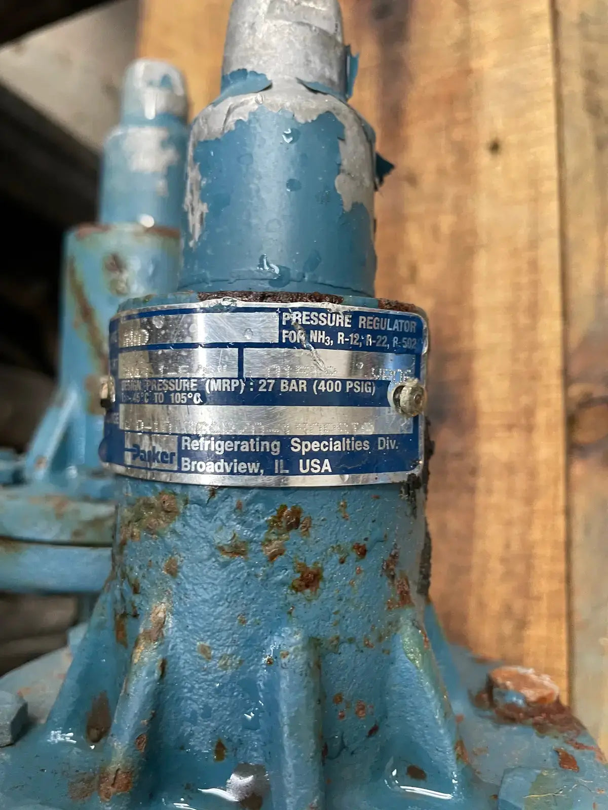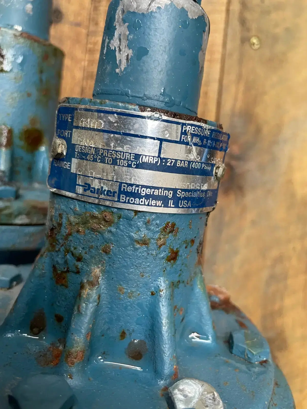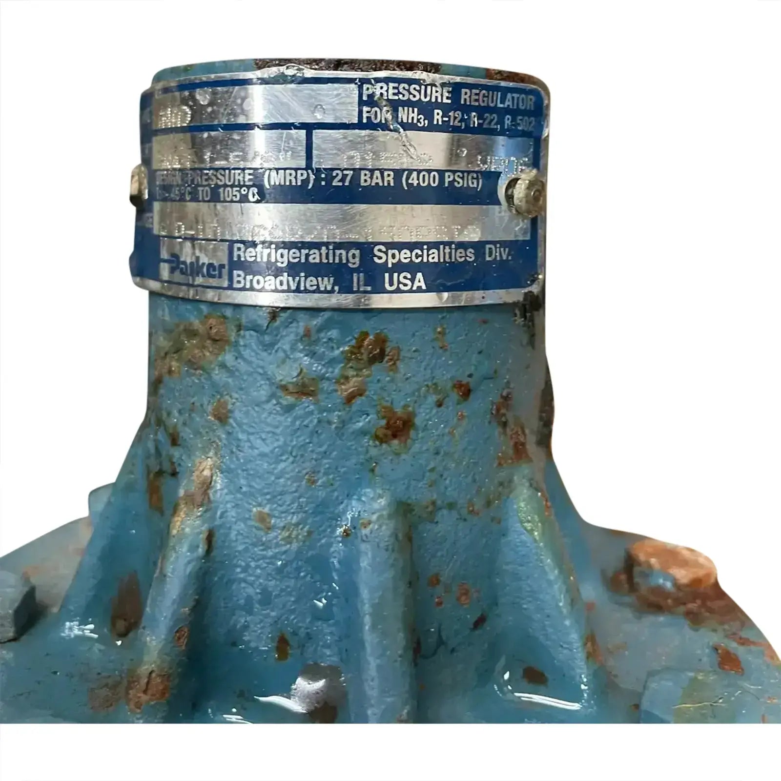 Regulador de presión de entrada Parker RS. Tipo: A4AD. Puerto: 1-5/8 pulg. Rango de temperatura: -45 °C a 105 °C. Presión de diseño: 400 PSIG.