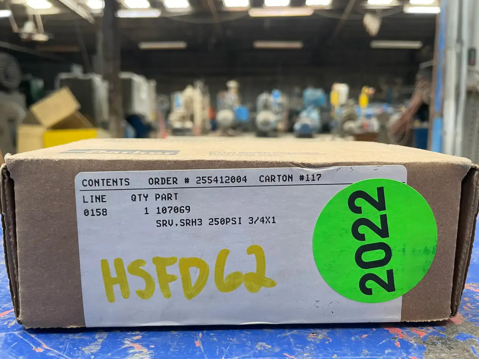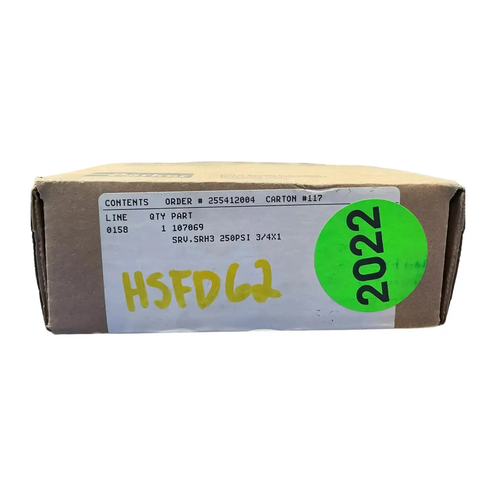 Válvula de seguridad Parker RS de alta capacidad. Tipo: SRV, SRH4. Conexión de entrada: 3/4 pulg. Conexión de salida: 1 pulg. Ajuste de alivio de presión: 250 PSI.
