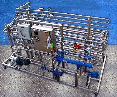 Pasteurizador de triple tubo anhidro APV. Modelo: CTT-C-50.B-38-25-3M. Se usó por última vez para pasteurizar de 0,25 a 4 gpm de jugo de 15 grados de 30 °F/50 °F a 200 °F; luego enfriar la misma cantidad de producto de 200 °F a 50 °F/40 °F. También se utiliza para pasteurizar de 0,25 a 4 gpm de concentrado de jugo de 50 grados Brix de 30 °F/50 °F a 200 °F; luego enfriar la misma cantidad de producto de 200 °F a 50 °F/40 °F. Acero inoxidable 316 (lado del producto); Acero inoxidable 304 (lado de servicio). Dimensiones totales: 12 pies de largo x 6 pies de ancho x 7 pies de alto. Se utiliza en la planta piloto APV como calentador/enfriador de jugo de uva.
