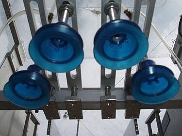 2001 MGS Máquina Pick n' Place intermitente. Modelo: IPP-1110MD. S/N: 8057. Dimensiones del cargador: 25 pulgadas de largo x 17-1/2 pulgadas de ancho x 4 pulgadas de alto. Suministro de vacío: entre 17 y 25 pulgadas de Hg. Generador de vacío Piab, Modelo: M50L, S/N: M50B5-EN, ajuste del regulador de aire: 58 y 87 psi. Ventosa: VC-32C. Alimentación: 115 V, 5 amperios, 60 Hz, monofásica. El MGS Pick n' Place es un alimentador por vacío que selecciona una variedad de productos apilados en uno o más cargadores y colocados a una velocidad variable dentro o sobre los artículos que viajan en un transportador. Altura de alimentación: 37 pulgadas. Dimensiones totales: 58 pulgadas de largo x 41 pulgadas de ancho x 61 pulgadas de alto.