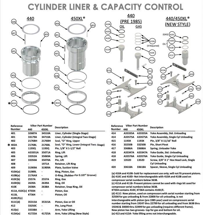 Piezas de control de capacidad y camisas de cilindro Vilter