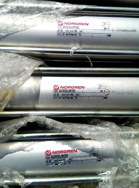 Pistones del actuador neumático Norgren. Tipo A: número de pieza CA/8050L/M/350. 50-350MM. 1-16 BARRAS. Tmax 80C, cantidad 3. Tipo B: número de pieza CA/8050/M/250, PSI máx. 200, C25824, cantidad 1. Norgren Canadá IMI Mississauga Ontario Canadá.
