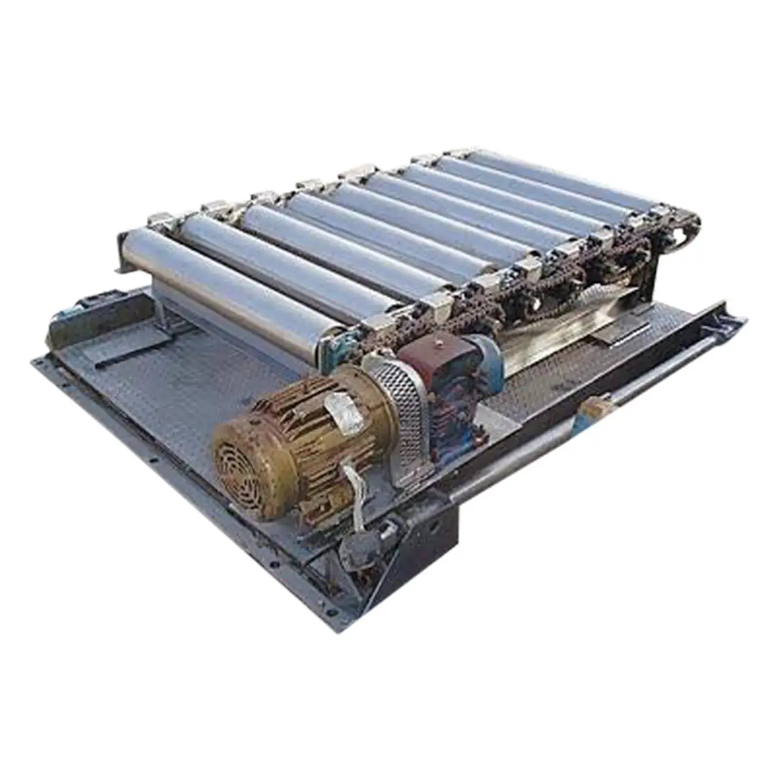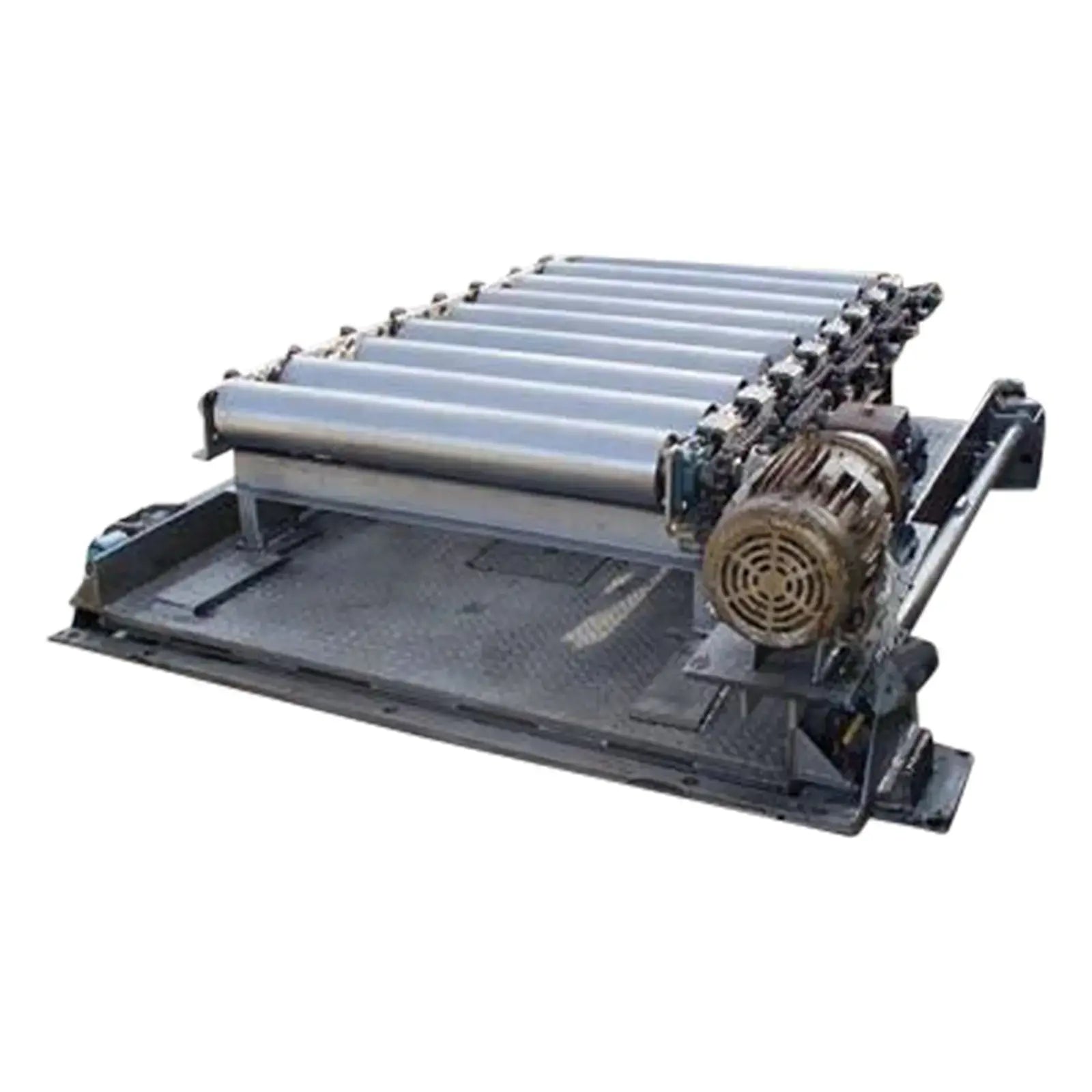 Plataforma de acero inoxidable Avery Weigh Tronix con transportador de rodillos. Modelo: LPFS10. S/N: 2764. Capacidad: 5,000 lbs. Barras de pesaje Weigh-Tronix, modelo: WBP-5.00K, clase III. Límite de carga segura: 10,000 lbs. Transportador de rodillos de acero inoxidable: 6 pies 6 pulgadas de largo x 4 pies 3 pulgadas de ancho (9) 5-1/2 pulgadas de diámetro. x rodillos de 3 pies y 3-1/2 pulgadas de largo. Motor Industrial Baldor, 3 Hp, 1760 rpm, 230/460 V, 8/4 amperios, 60 Hz, trifásico. Transmisión por engranajes. Altura de entrada del transportador de rodillos: 2 pies 3 pulgadas Altura de salida del transportador de rodillos: 1 pie 10 pulgadas Dimensiones totales: 8 pies 3 pulgadas de largo x 6 pies 7 pulgadas x 2 pies 8 pulgadas de alto (ACN160 ).