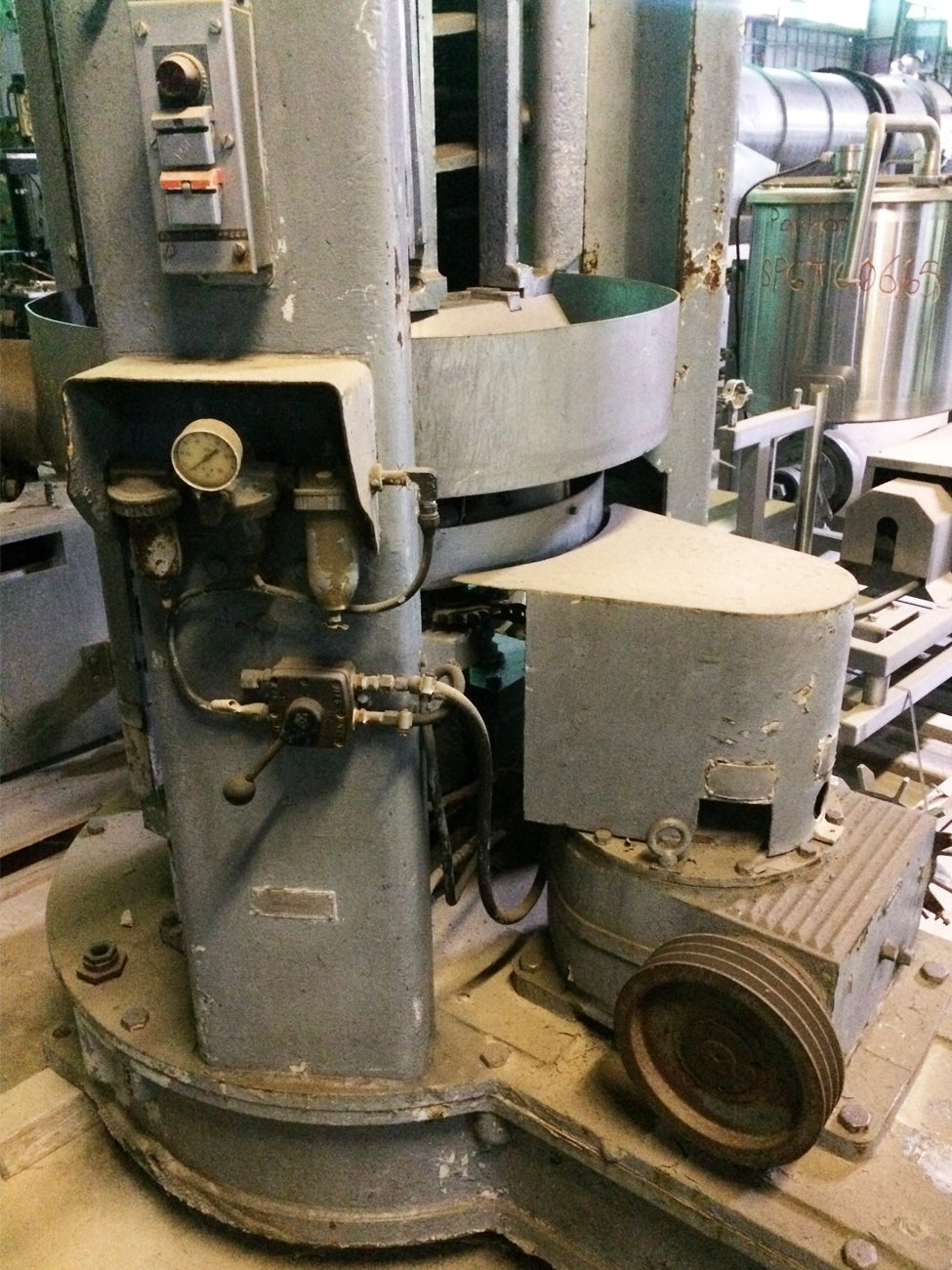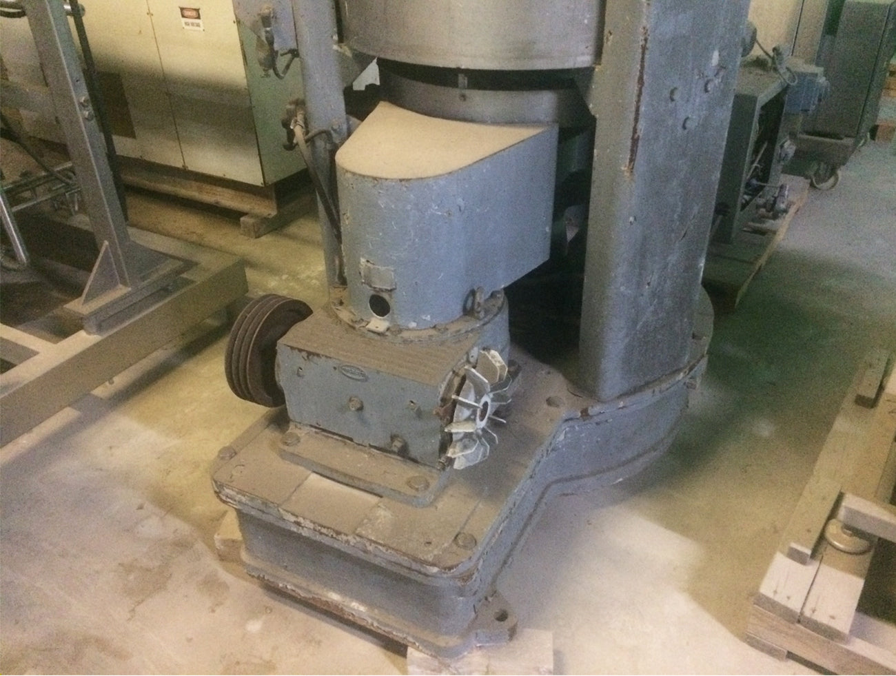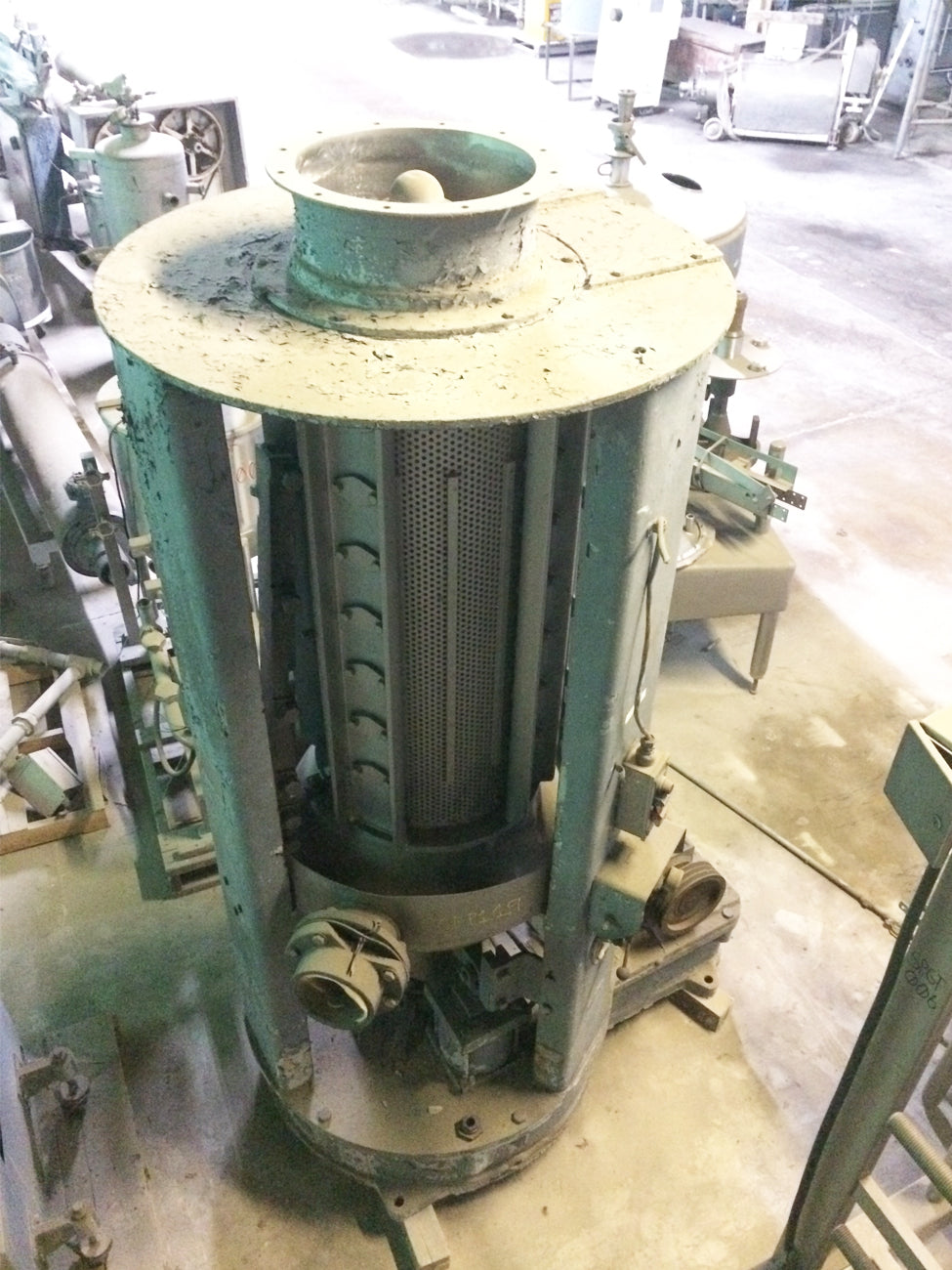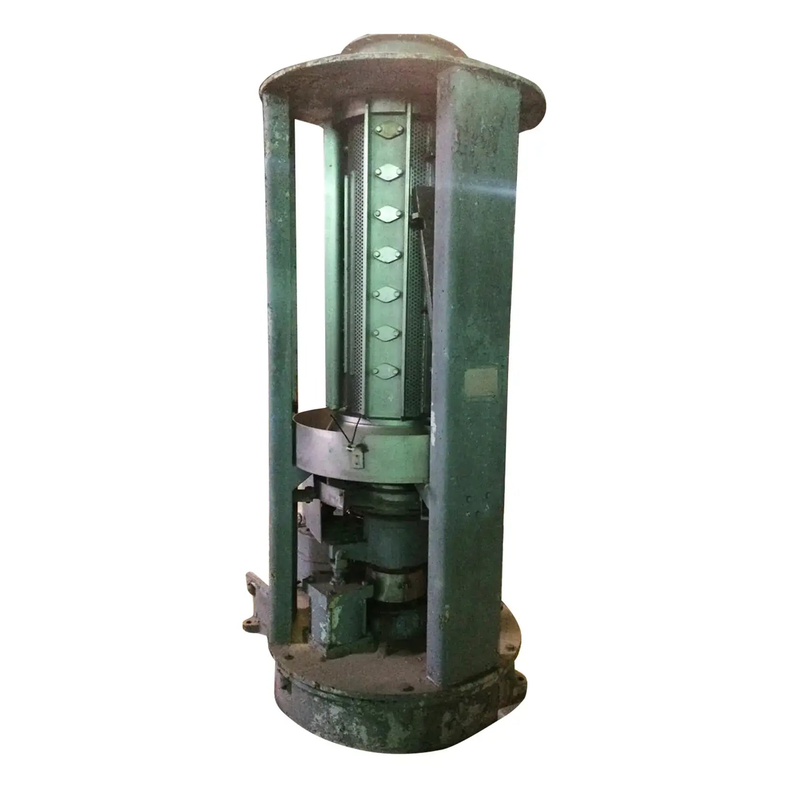 Prensa de jugo vertical Jones Beloit Pressmaster. Modelo 2510. N/S P-141. Con una construcción de acero inoxidable 304, esta prensa tiene (1) 16 pulgadas de diámetro. Entrada superior con un diámetro de 20 pulgadas. brida y (12) orificios de fijación para introducción de producto crudo. Prensa de producto de 21 pulg. de diámetro. x 47-1/2 pulg. H. 15-3/4 pulg. de diámetro. cuchillas para rebanar. La prensa consta de un diámetro de 15 pulgadas. criba interior con orificios pasantes de 1/4 pulg. y una criba exterior con un diámetro de 16 pulg. Canal de acumulación de jugo: 33 pulg. de diámetro. x 6 pulgadas de alto. El jugo sale a través de un diámetro de 6-1/2 pulgadas. Salida de PVC. La pulpa se acumula en un canal y se empuja hacia afuera por una salida de 12 pulgadas de ancho x 3 pulgadas de alto mediante paletas de 6 pulgadas de ancho x 4 pulgadas de alto. (2) Los actuadores Miller Power Fluid mueven el husillo verticalmente. Motor Delroyd, reconstruido en 1995 y reacondicionado en diciembre de 2000; impulsa un diámetro de 9-3/4 pulg. Polea de 3 correas. Construido como 100 y convertido a 125, construido para motor de 7,5 hp con husillo de 100 s. Clasificado de 1 a 12 rpm dependiendo del producto. Welches obtiene 20 toneladas por hora de uva Concord con prensa auxiliar a 7 rpm. La piña se pela a 5 rpm y de 10 a 12 toneladas por hora con un 35 % de humedad eliminada, lo que le da un 65 % de materia seca. Dimensiones totales: 61 pulgadas de largo x 44 pulgadas de ancho x 98 pulgadas de alto