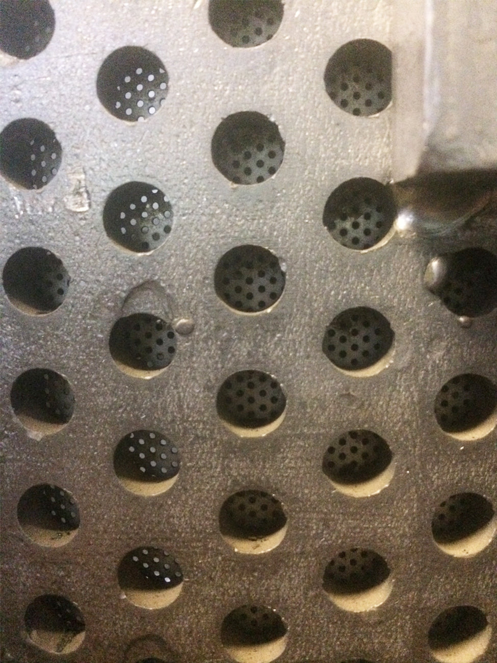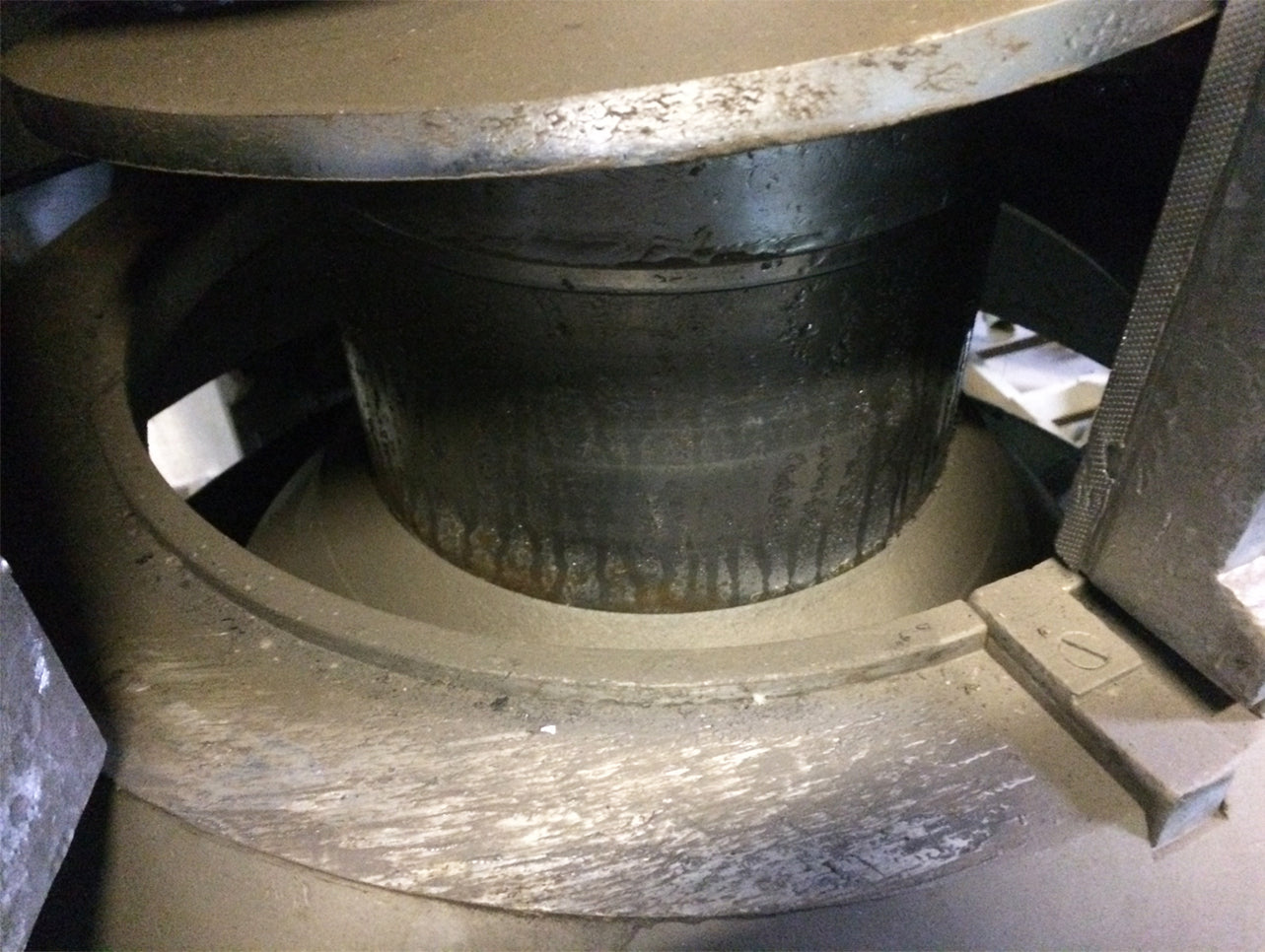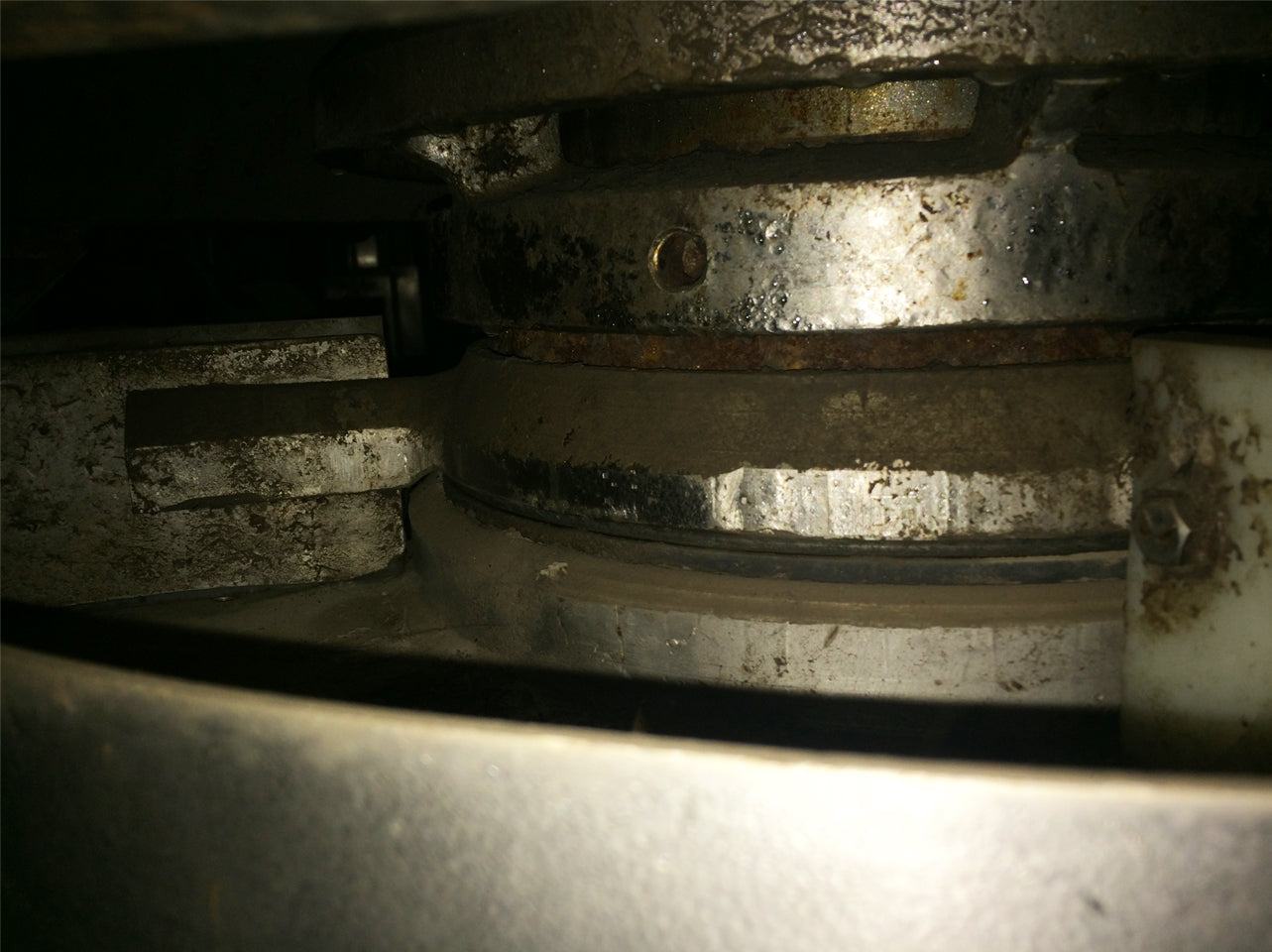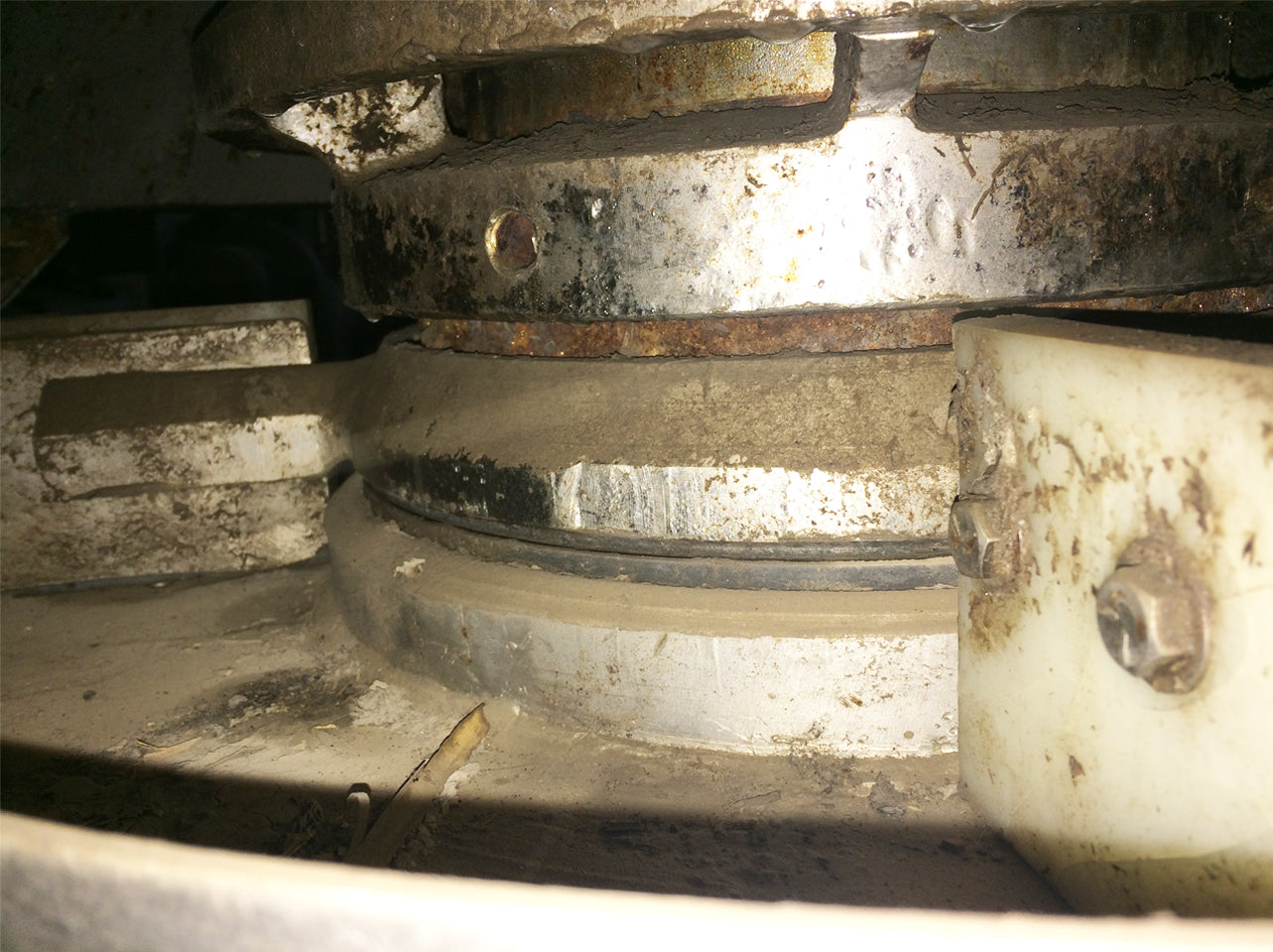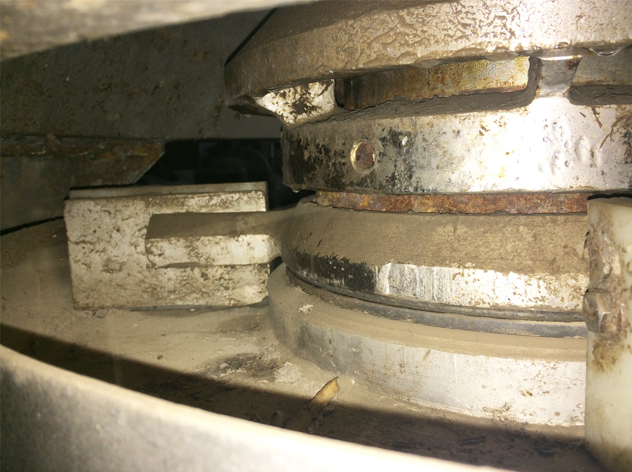 Prensa de jugo vertical Jones Beloit Pressmaster. Modelo 2510. N/S P-141. Con una construcción de acero inoxidable 304, esta prensa tiene (1) 16 pulgadas de diámetro. Entrada superior con un diámetro de 20 pulgadas. brida y (12) orificios de fijación para introducción de producto crudo. Prensa de producto de 21 pulg. de diámetro. x 47-1/2 pulg. H. 15-3/4 pulg. de diámetro. cuchillas para rebanar. La prensa consta de un diámetro de 15 pulgadas. criba interior con orificios pasantes de 1/4 pulg. y una criba exterior con un diámetro de 16 pulg. Canal de acumulación de jugo: 33 pulg. de diámetro. x 6 pulgadas de alto. El jugo sale a través de un diámetro de 6-1/2 pulgadas. Salida de PVC. La pulpa se acumula en un canal y se empuja hacia afuera por una salida de 12 pulgadas de ancho x 3 pulgadas de alto mediante paletas de 6 pulgadas de ancho x 4 pulgadas de alto. (2) Los actuadores Miller Power Fluid mueven el husillo verticalmente. Motor Delroyd, reconstruido en 1995 y reacondicionado en diciembre de 2000; impulsa un diámetro de 9-3/4 pulg. Polea de 3 correas. Construido como 100 y convertido a 125, construido para motor de 7,5 hp con husillo de 100 s. Clasificado de 1 a 12 rpm dependiendo del producto. Welches obtiene 20 toneladas por hora de uva Concord con prensa auxiliar a 7 rpm. La piña se pela a 5 rpm y de 10 a 12 toneladas por hora con un 35 % de humedad eliminada, lo que le da un 65 % de materia seca. Dimensiones totales: 61 pulgadas de largo x 44 pulgadas de ancho x 98 pulgadas de alto