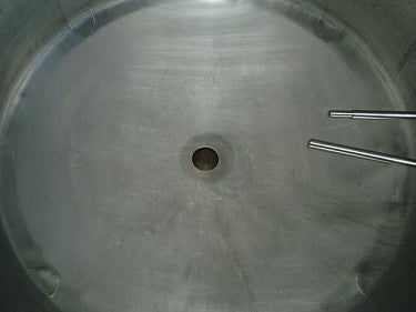 Procesador con camisa de pared con hoyuelos de 300 galones. Acero inoxidable. Junta Nacional No. 63. S/N 76533-1. Parte superior de cúpula, fondo de plato. Sin agitación. Manway en la cima. 67 psi a 315 °F. Dimensiones totales 4 pies de diámetro. x 7 pies H. 3 pies 3 pulg. Pared lateral.