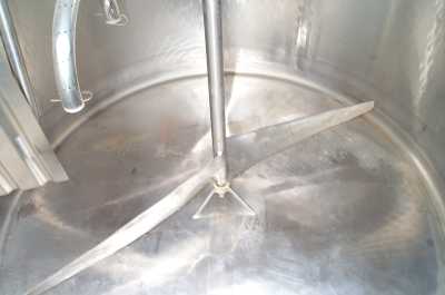 Procesador Mueller de acero inoxidable, 400 galones, pared de presión. Puente central con cubiertas superiores elevables. Agitador de amplio barrido con deflector. Salida de abrazadera de 2-1/2 pulgadas. Puede usarse como pasteurizador para procesamiento en tina o por lotes.