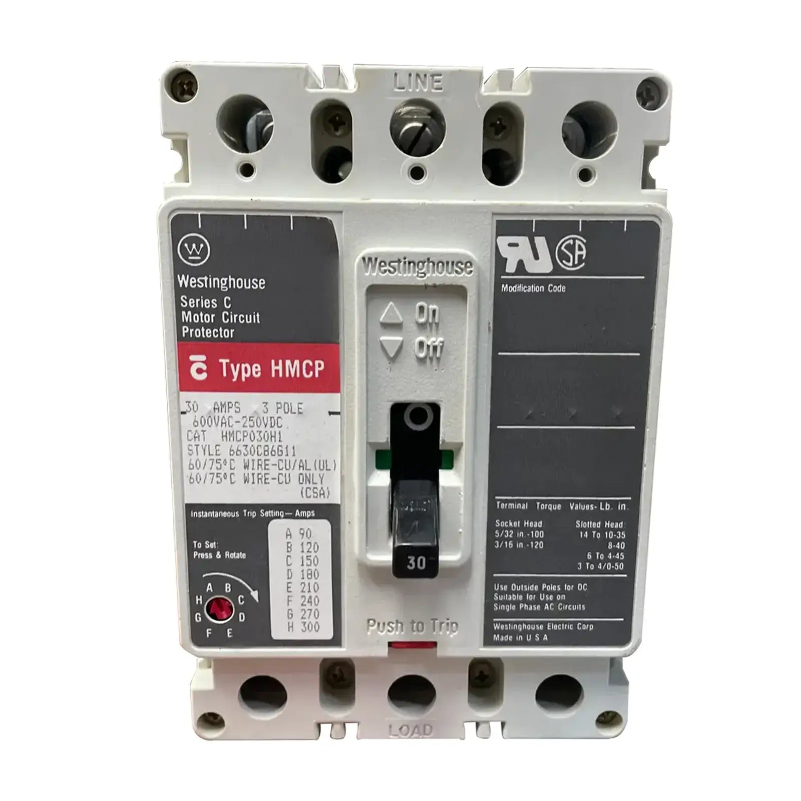 Protector de circuito de motor Westinghouse HMCP030H1 Serie C (30 amperios, 3 polos, 600 VCA-250 VCC)