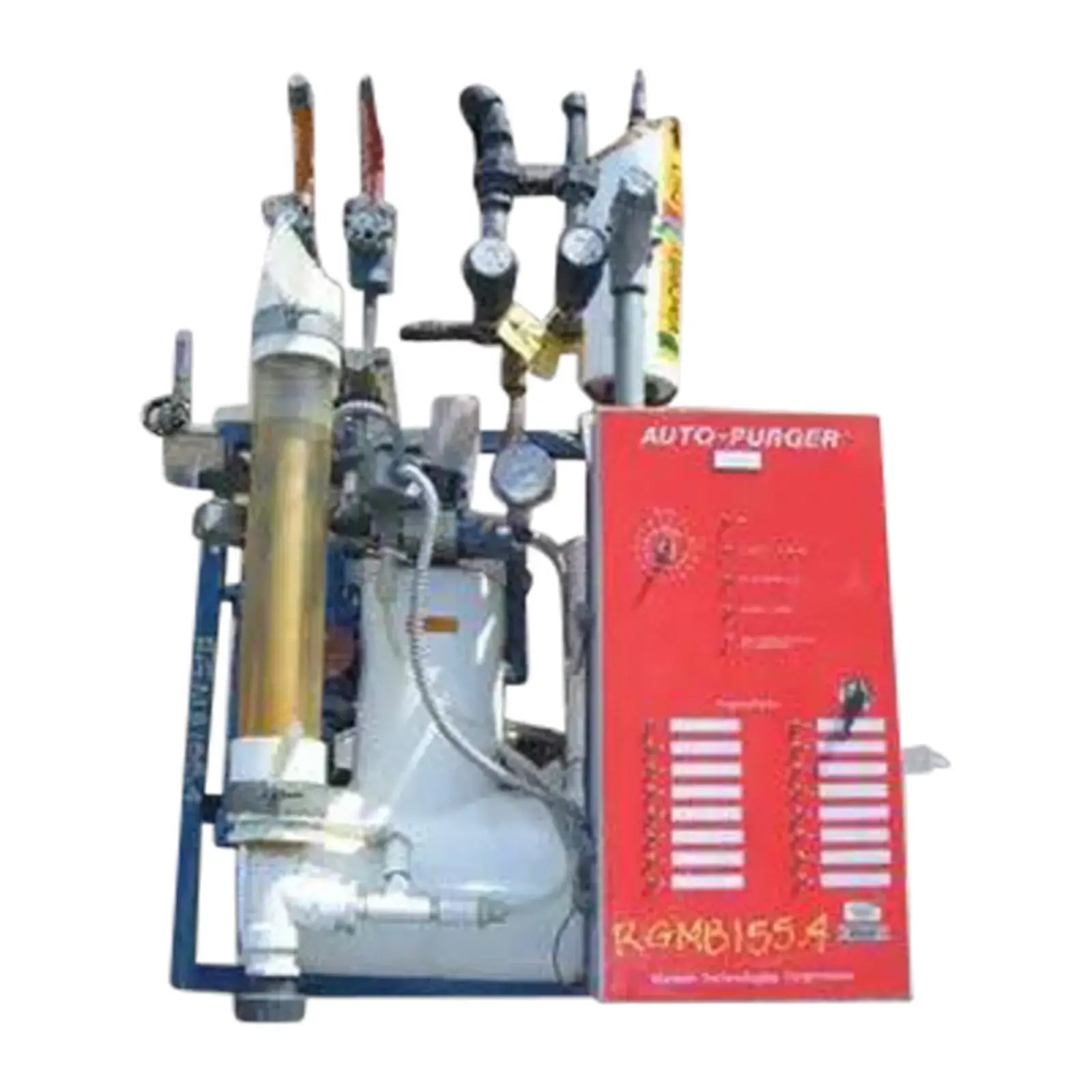 Purgador automático de Hansen Technologies. Modelo: AP16. SN: N2725. Refrigerante: R-717 (Amoníaco). Para múltiples puntos de purga, hasta 16 puntos. El AUTO-PURGER es un purgador automático de refrigerante de gas (aire) no condensable controlado electrónicamente para reducir la presión de condensación. Fuente de alimentación: 120V/60Hz, 3,0 amperios. Entradas: 1/2 pulg. de diámetro. línea de agua. 1/2 pulg. de diámetro. Línea de líquido de alta presión. Línea de gas contaminado de 1/2 pulg. desde condensadores y receptores de alta presión. Salidas: 1 pulg. de diámetro. drenaje de agua. 3/4 pulg. de diámetro. línea de succión al sistema. Dimensiones totales: 3 pies 2 pulgadas de largo x 2 pies de ancho x 4 pies 6 pulgadas de alto.