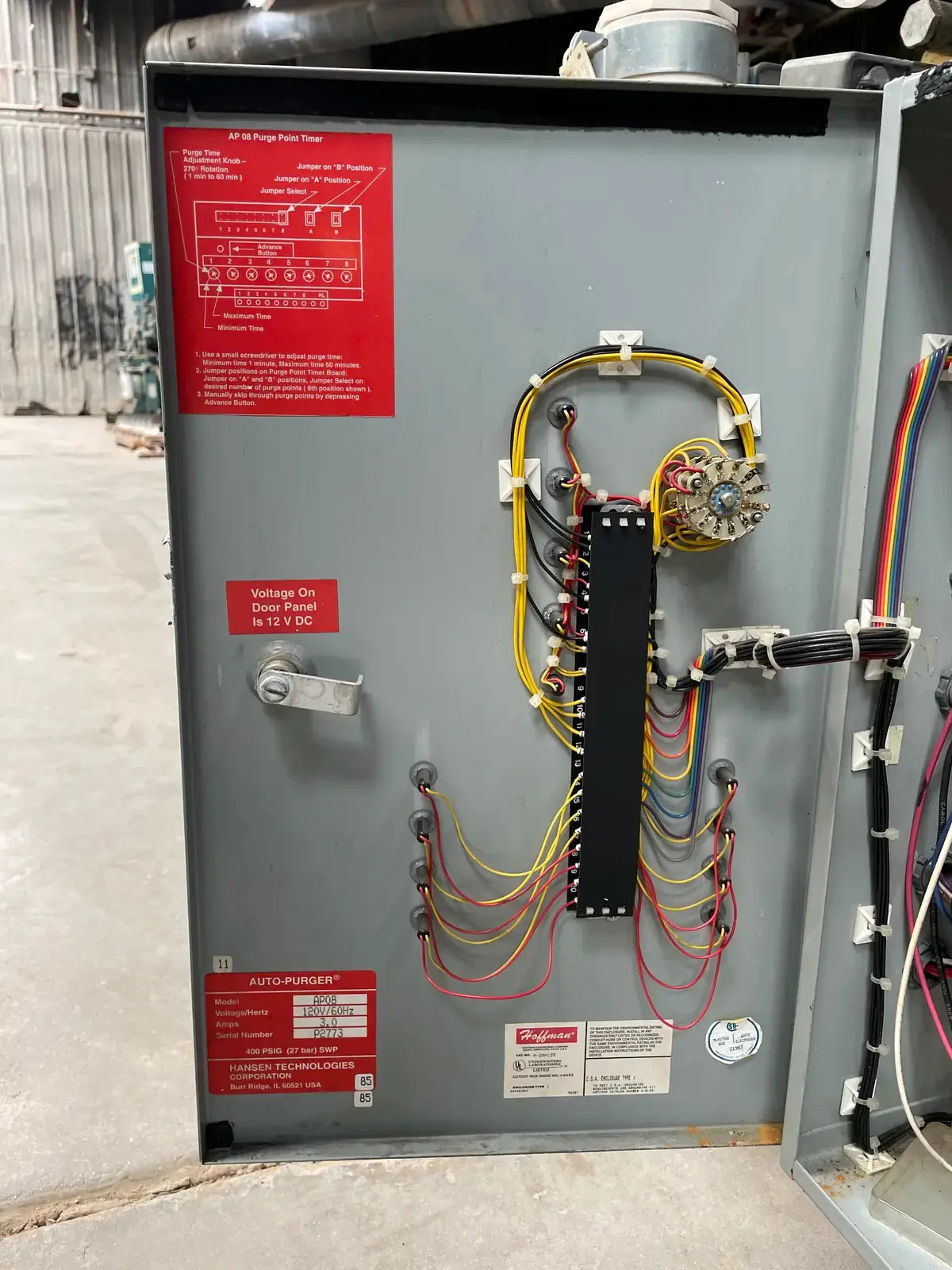 Purgador automático de amoníaco de Hansen Technologies. Modelo: AP08. Número de serie: P2773. Voltaje/Hercios: 120V/60Hz. Amperios: 3,0. 400 PSIG (27 bar) SWP.