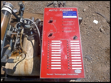 Purgador automático de Hansen Technologies. Modelo: AP24. Número de serie: W5055. 115 Voltios 50/60 Hz. 400 PSI (27 bares) SWP. Entradas/Salidas: (2) 0,5 pulgadas, (2) 0,75 pulgadas. Dimensiones totales: 51 pulgadas x 31,5 pulgadas de ancho x 22 pulgadas de alto.