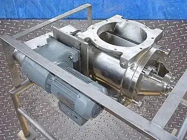 Quadro Ingeniería Incorporada Comil. Modelo: 196 S. S/N: 196-0197. Sistema de 2 piezas. El reductor de tamaño incorpora un diámetro de 8 pulgadas. pala del impulsor. Luego, el producto ingresa a una esclusa de aire giratoria que se descarga por la parte inferior. Motor Brook Hansen, 10 hp, 1750 rpm, 575 V, 60 Hz, 10,0 amperios. Motor Sew-Eurodrive, 1 hp, 1680 rpm, 330/575 V, 60 Hz, trifásico. Reductor de engranajes Sew-Eurodrive, 35 rpm (final). El Comil es excelente para lograr reducción de tamaño uniforme, tamizado, desaglomeración, dispersión y mezclado. Las aplicaciones incluyen: productos farmacéuticos, alimentarios, de química fina, de cuidado personal y cosméticos. Entradas: (1) 8 pulg. de diámetro. alimentación. Salidas: (1) 9 pulg. de diámetro. descarga con un diámetro de 12 pulgadas. brida y (8) orificios pasantes de 3/8 pulgadas a una distancia entre centros de 4-1/4 pulgadas. Dimensiones totales de Comil: 76 pulgadas de largo x 39 pulgadas de ancho x 80 pulgadas de alto. Dimensiones totales de la esclusa de aire: 37 pulgadas de largo x 26 pulgadas de ancho x 43 pulgadas de alto.