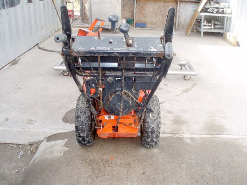 Quitanieves Ariens de 24 pulgadas a gasolina. Modelo: ST824 (924082). S/N: 027231. Este quitanieves de gama media de la marca Ariens es ideal para una casa en el campo. El motor Tecumseh Snow King de 8 hp proporciona una gran capacidad de levantarse y ponerse en marcha, mientras que una unidad de sinfín e impulsor abre caminos extra anchos a través de aceras y caminos cubiertos de nieve. La rotación rápida del conducto y el control direccional de 220° le permiten arrojar nieve lejos del área despejada. El 824 viene con seis velocidades de avance y dos de retroceso. Limpia aprox. Camino de 23 pulgadas de ancho. Dimensiones del impulsor de barrena: 23-1/2 pulgadas de ancho x 15-1/4 pulgadas de diámetro. Salida: Puerto de 5-7/8 pulg. de diámetro. Dimensiones totales: 4 pies 8 pulgadas de largo x 2 pies 3/8 pulgadas de ancho x 3 pies 7 pulgadas de alto (ACN13).