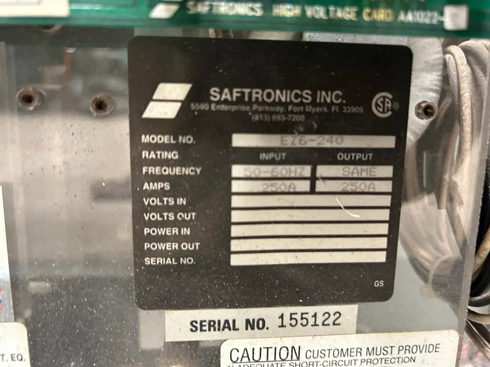 Arrancador de motor para compresor de tornillo Ram Industries. N.º de pieza: SOP005764. DWG/Serie: FZ425053.0. Fuente de alimentación: 460 voltios, 60 Hz, trifásica, 250 HP, 285.0 FLA, 1800 LRA. Potencia máxima total: 253 HP, 296.0 FLA.