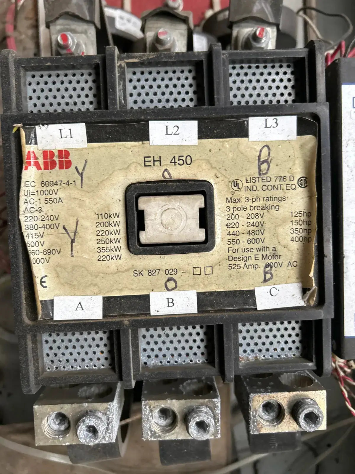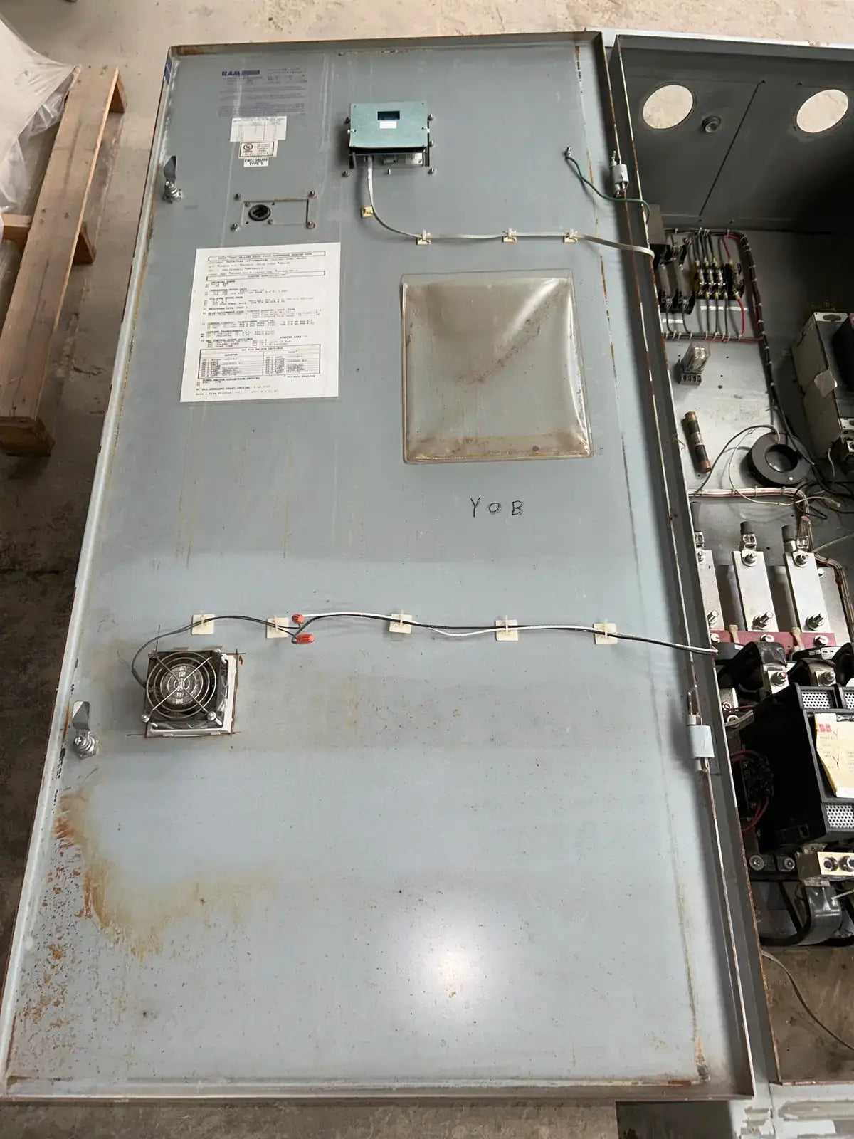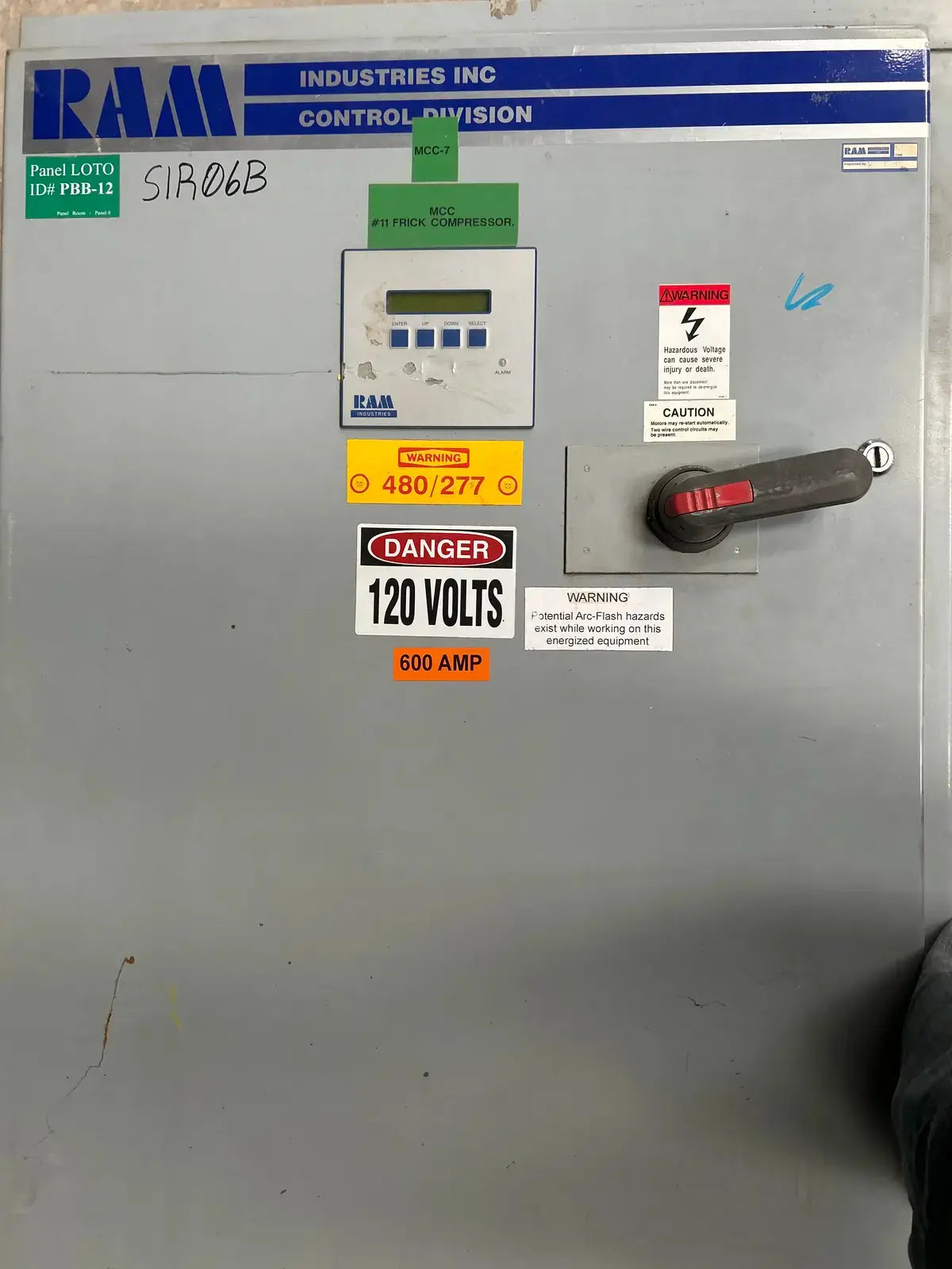Arrancador de motor de compresor de tornillo de Ram Industries. Tipo: Arrancador de estado sólido en línea DBS. Número de trabajo/pieza: SOP-38022. Número de serie/DWG: FK4300L3.0. Potencia máxima: 300. Voltios: 460, Hz: 60, Fase 3. FLA: 335,0. LRA: 219,7. Total: HP: 303, FLA: 344,04, Resistencia: 42KA.