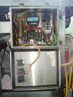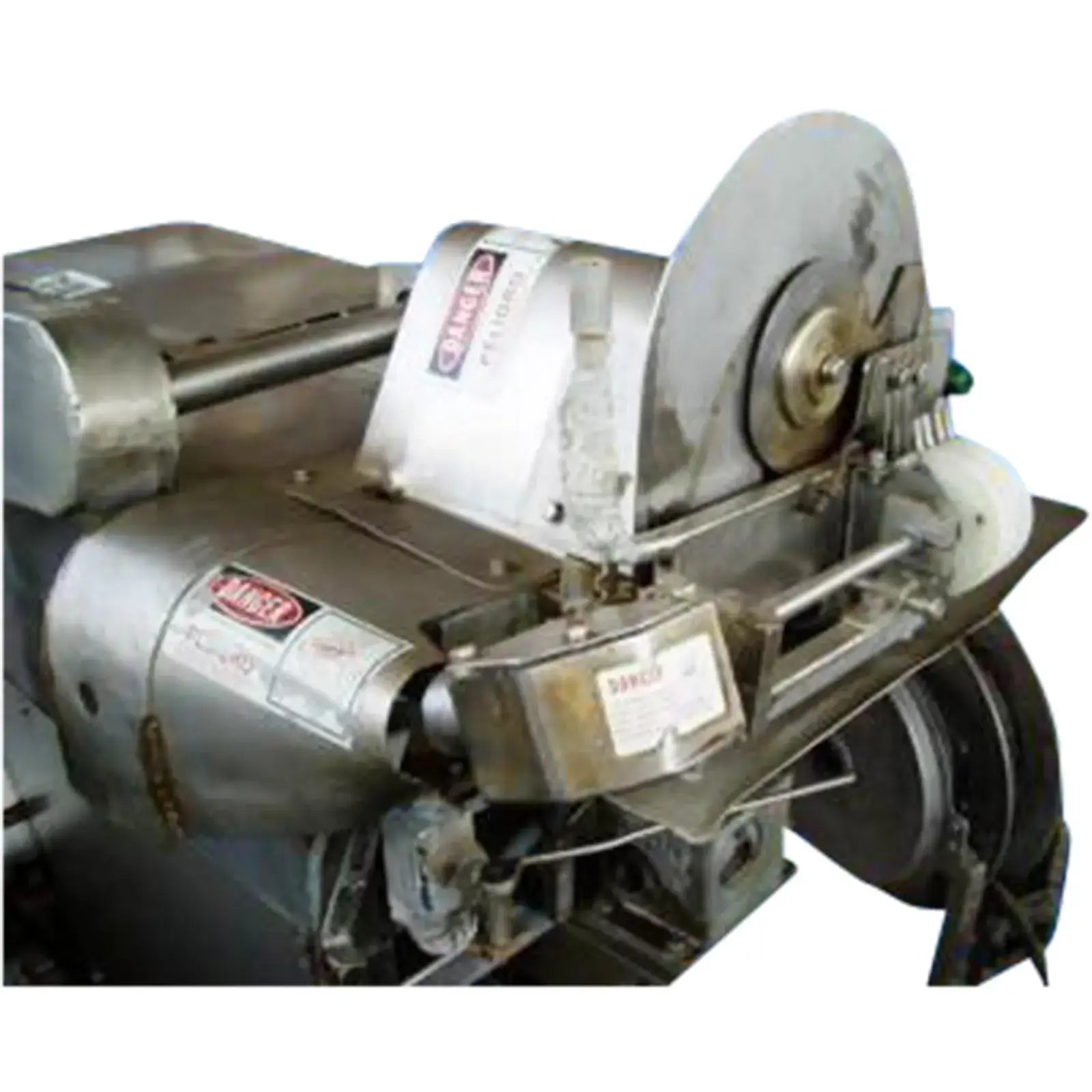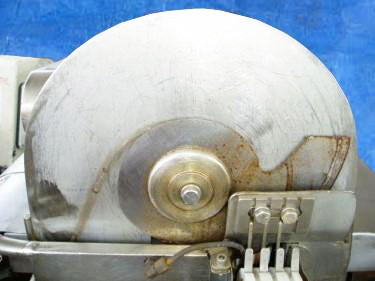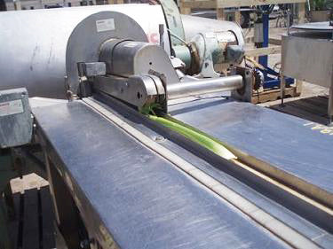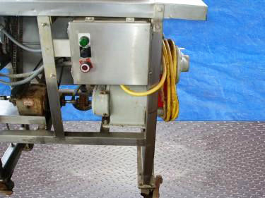 Cortadora de acero inoxidable. Apertura/espacio libre máximo sobre la banda: 1-1/2 pulg. de ancho x 1/2 pulg. de alto. Altura en la entrada/salida del transportador: 45-1/2 pulg. Dimensiones de la correa de alimentación: 48 pulg. de largo x 1-1/2 pulg. 2 pulgadas de ancho. Dimensiones de la correa de alineación: 17 pulgadas de largo x 1 pulgada de ancho. Diámetro de la rueda de corte: 5-1/4 pulgadas. El producto se guía hacia abajo, a través de la descarga, mediante una rueda de colocación de 4 puntas. El exceso de líquido se acumula en un plato de 20 pulgadas de largo x 4-1/2 pulgadas de ancho. Motor eléctrico Reliance, 3/4 hp, 1725 rpm, 230/460 V, 4,6/2,3 amperios, 60 Hz, trifásico. Reeves Motor Drive, relación 6,1, 764 rpm (máx.), 76,4 rpm (mín.). Entradas: 1/2 pulg. de diámetro. racor roscado. Salidas: Canal de descarga de 2 pulgadas de largo x 2 pulgadas de ancho. Dimensiones totales: 55 pulgadas de largo x 29 pulgadas de ancho x 56 pulgadas de alto.