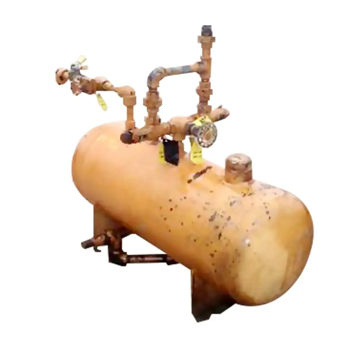 2002 Receptor de amoníaco Chilcon de Henry Technologies. Modelo: RA-12036-600. Nat'l Bd: 14422. MAWP: Capacidad: 18 galones. 300 psi a 300°F. MDMT: -55 °F a 300 psi. MDMT: -60°F a 150 psi. Entradas: (1) 1 pulg. de diámetro. puerto, (1) 1 pulg. de diámetro. FNPT, (1) 1/2 pulg. de diámetro. puerto. Salida: (1) 3/4 pulg. de diámetro. puerto. Dimensiones totales: 3 pies 10 pulgadas de largo x 1 pie 7 pulgadas de ancho x 2 pies 9 pulgadas de alto.