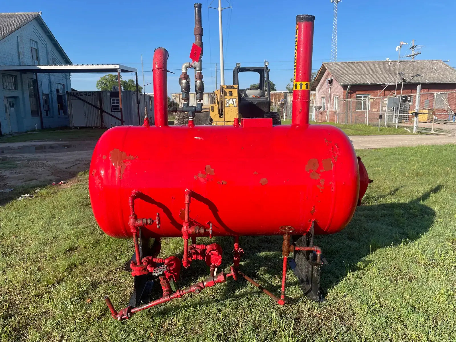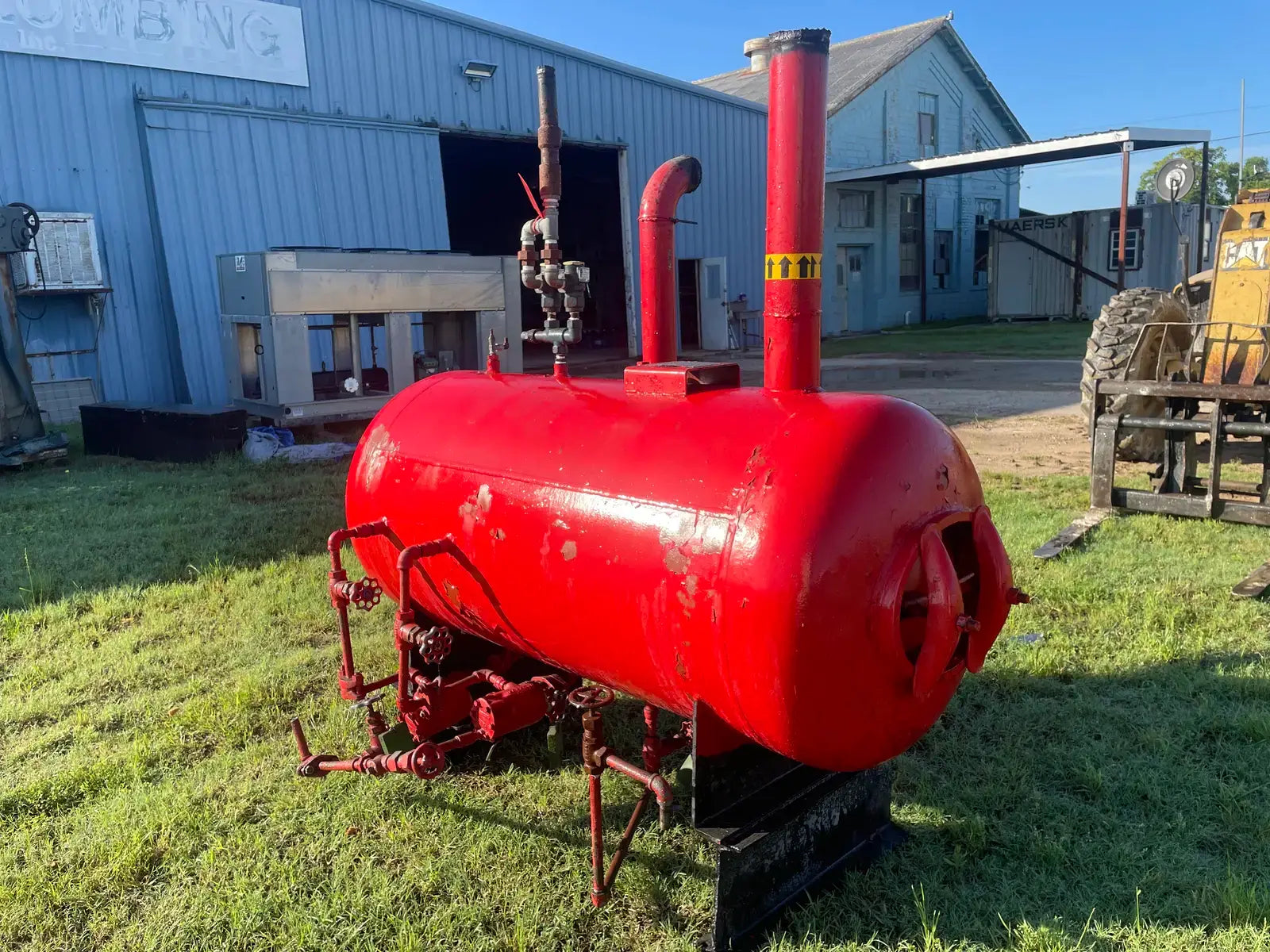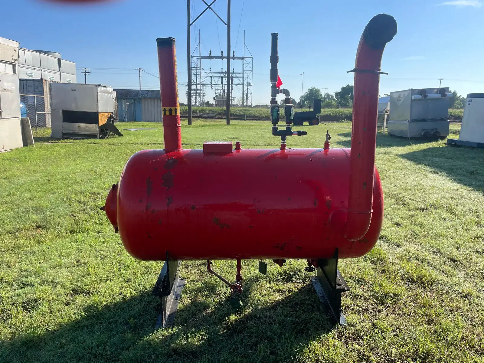 Receptor de amoniaco horizontal RECO. Junta Nacional: 3637. Número de serie: W92111. Año de construcción: 1979. MAWP: 250 PSI a 300 F. Carcasa: .375. Cabezas: .375. Dimensiones totales del recipiente: 30 de diámetro x 60 litros. Capacidad estimada: 250 galones.
