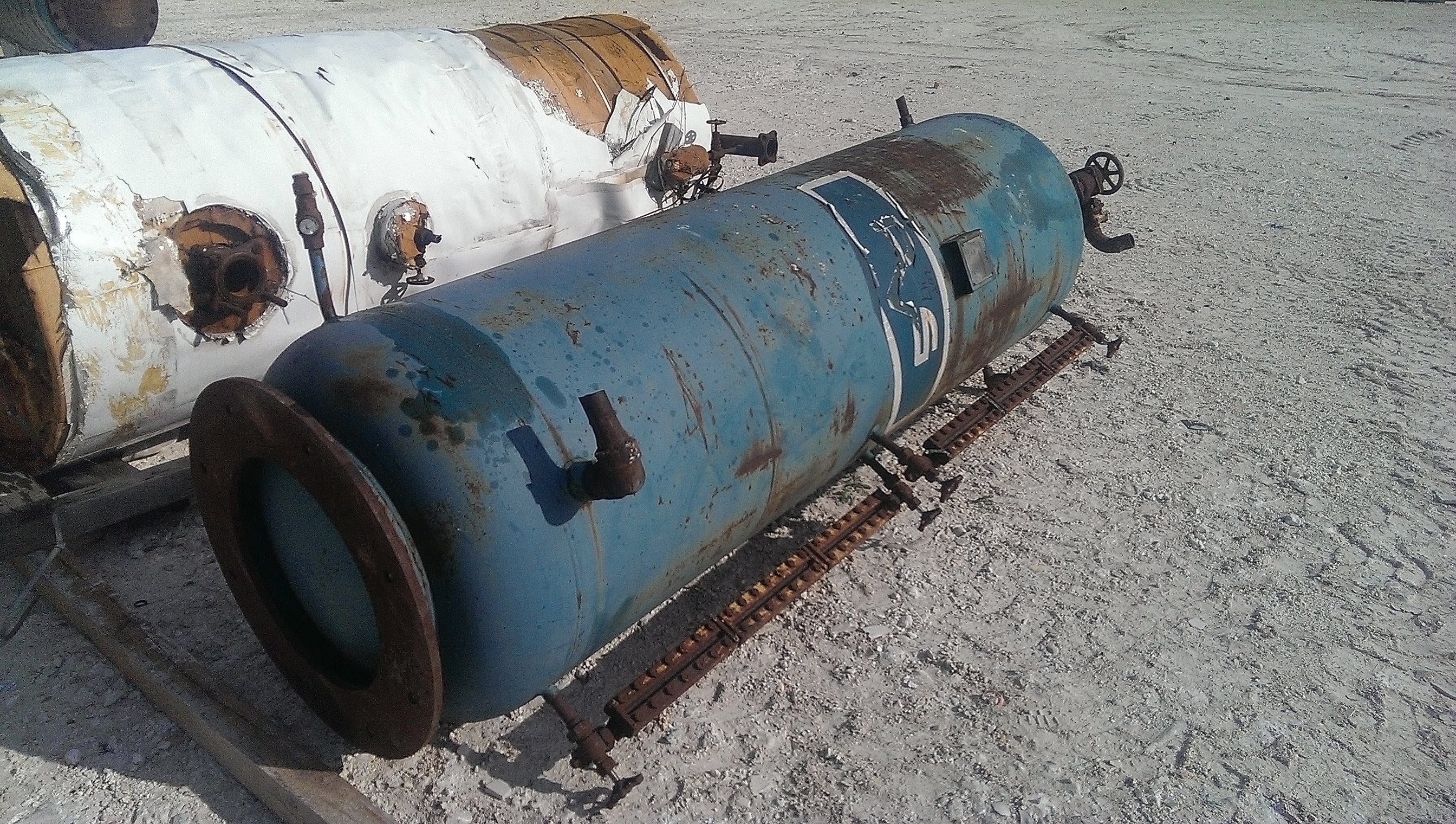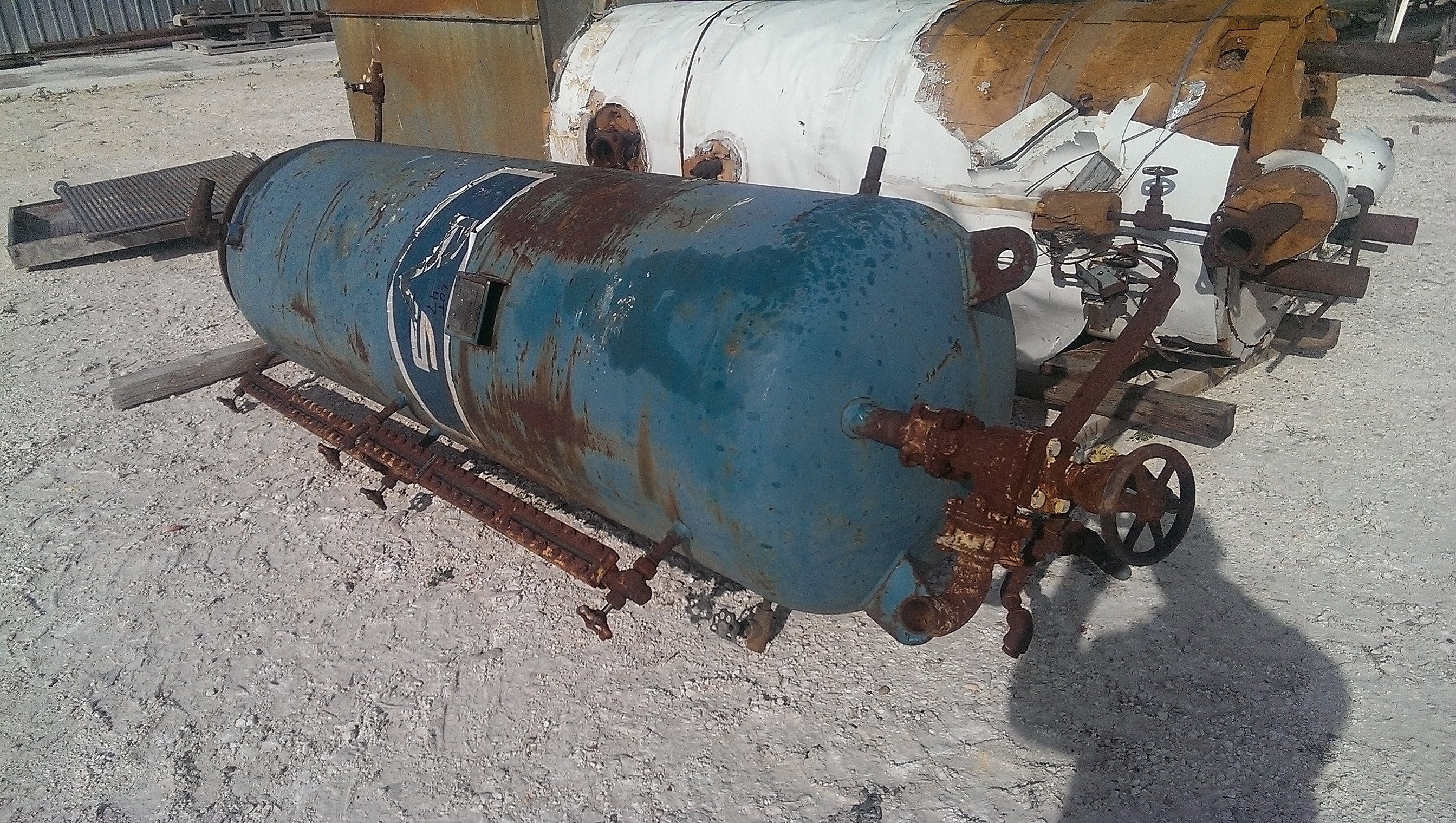 Receptor de amoníaco vertical RVS. Certificado por Refrigeration Valves and Systems Corporation, Bryan, TX, EE. UU. Nat'l bd.: 11834. S/N: 981085. Año: 1999. MAWP: 250 PSI a 300 F, MDMT -20 F a 250 PSI. Capacidad estimada: 500 galones. Puertos: 2 pulgadas de entrada/salida, drenaje de 0,5 pulgadas, (4) accesorios de mirilla de 0,75 pulgadas. Dimensiones totales: 36 pulgadas de diámetro. x 9,5 pies de alto.