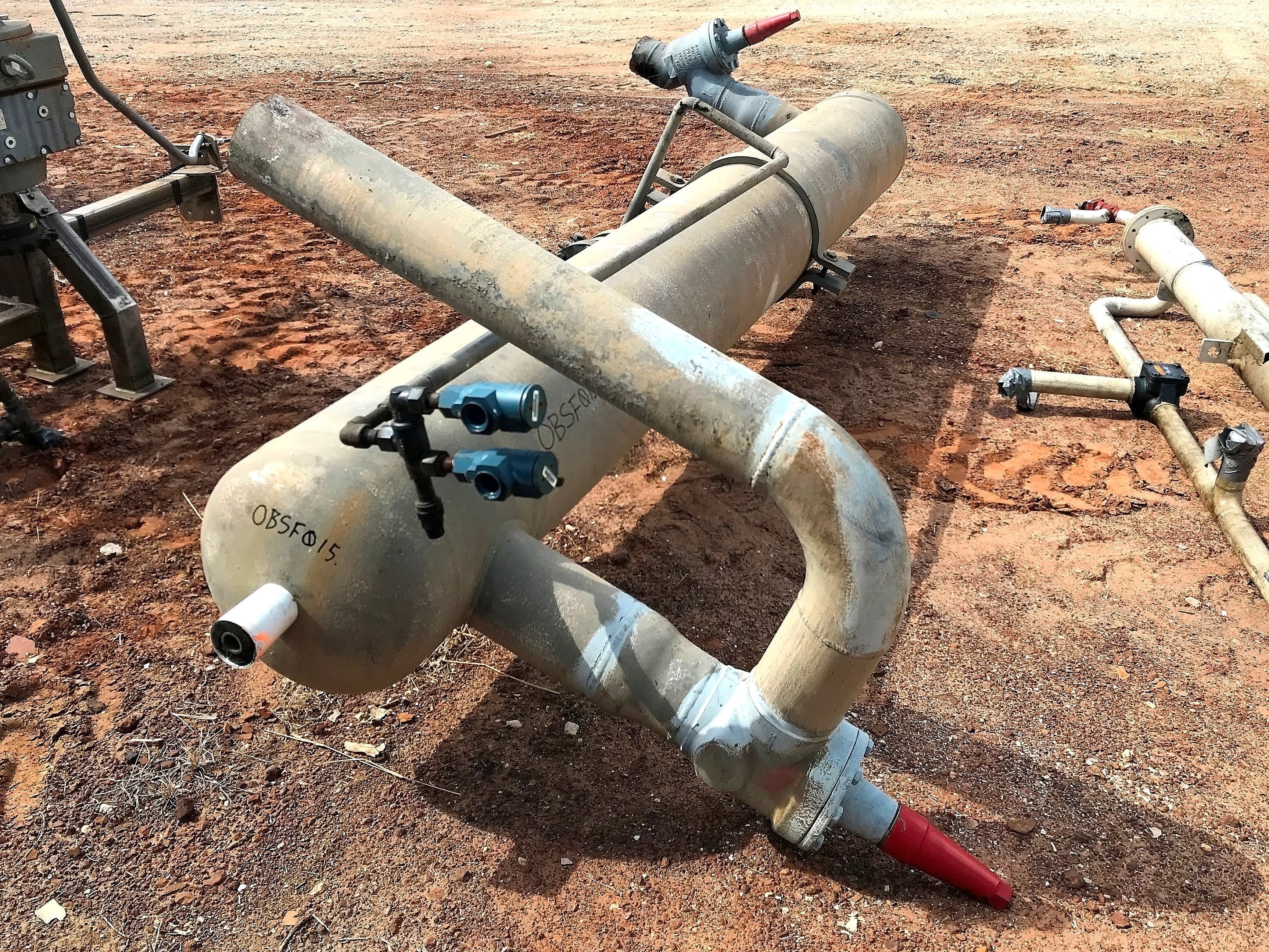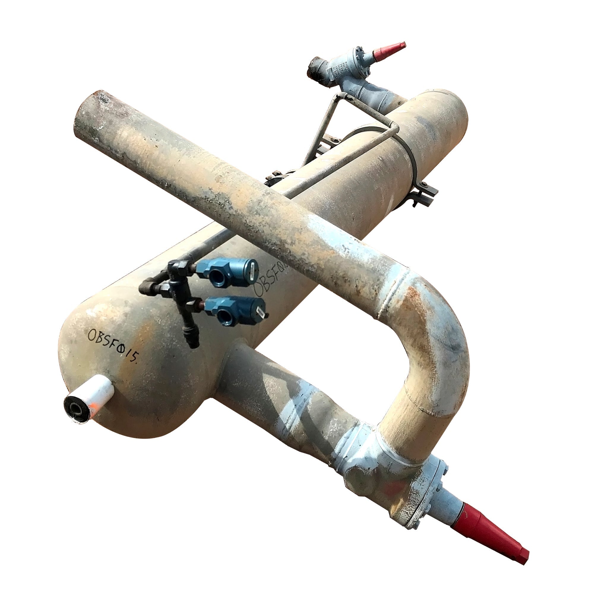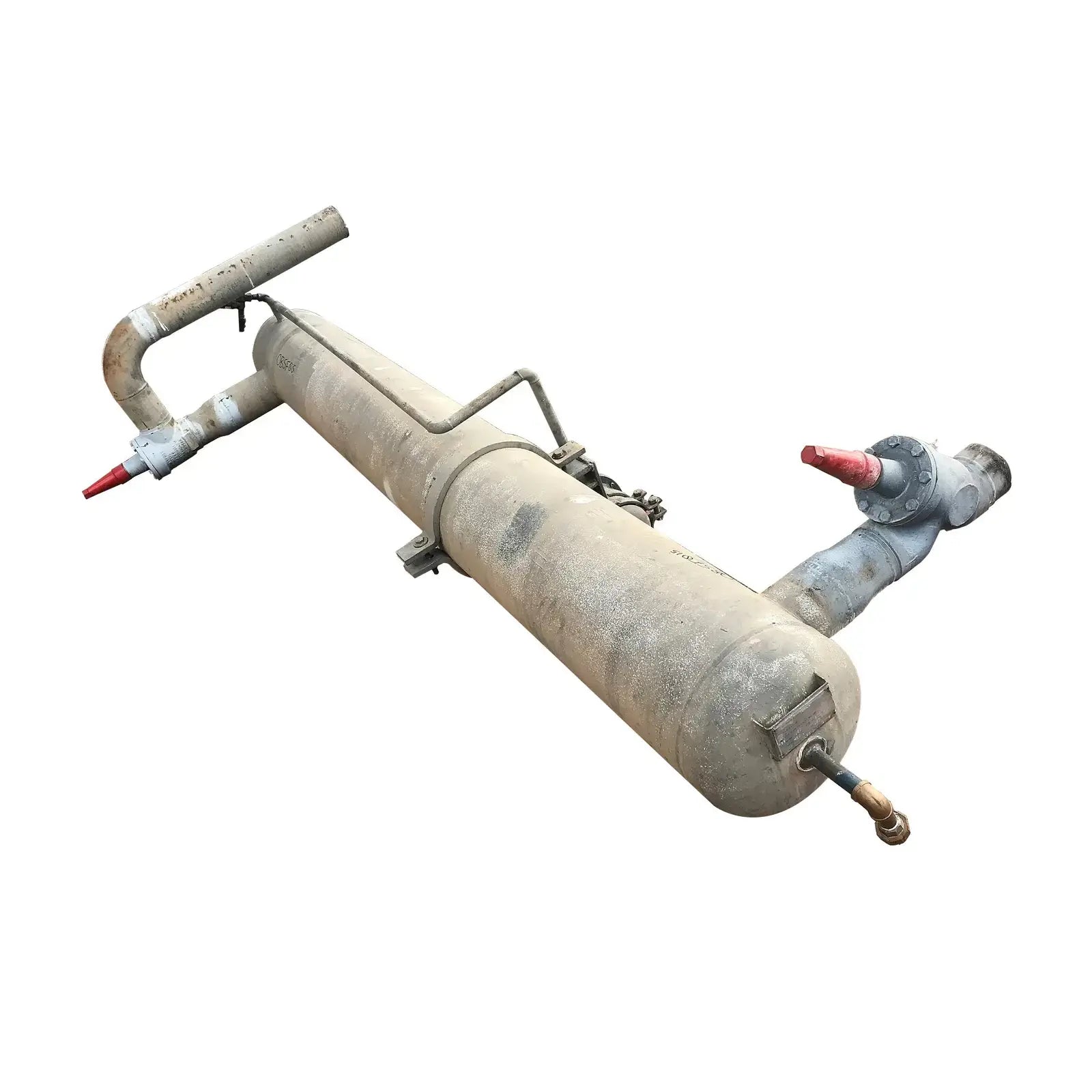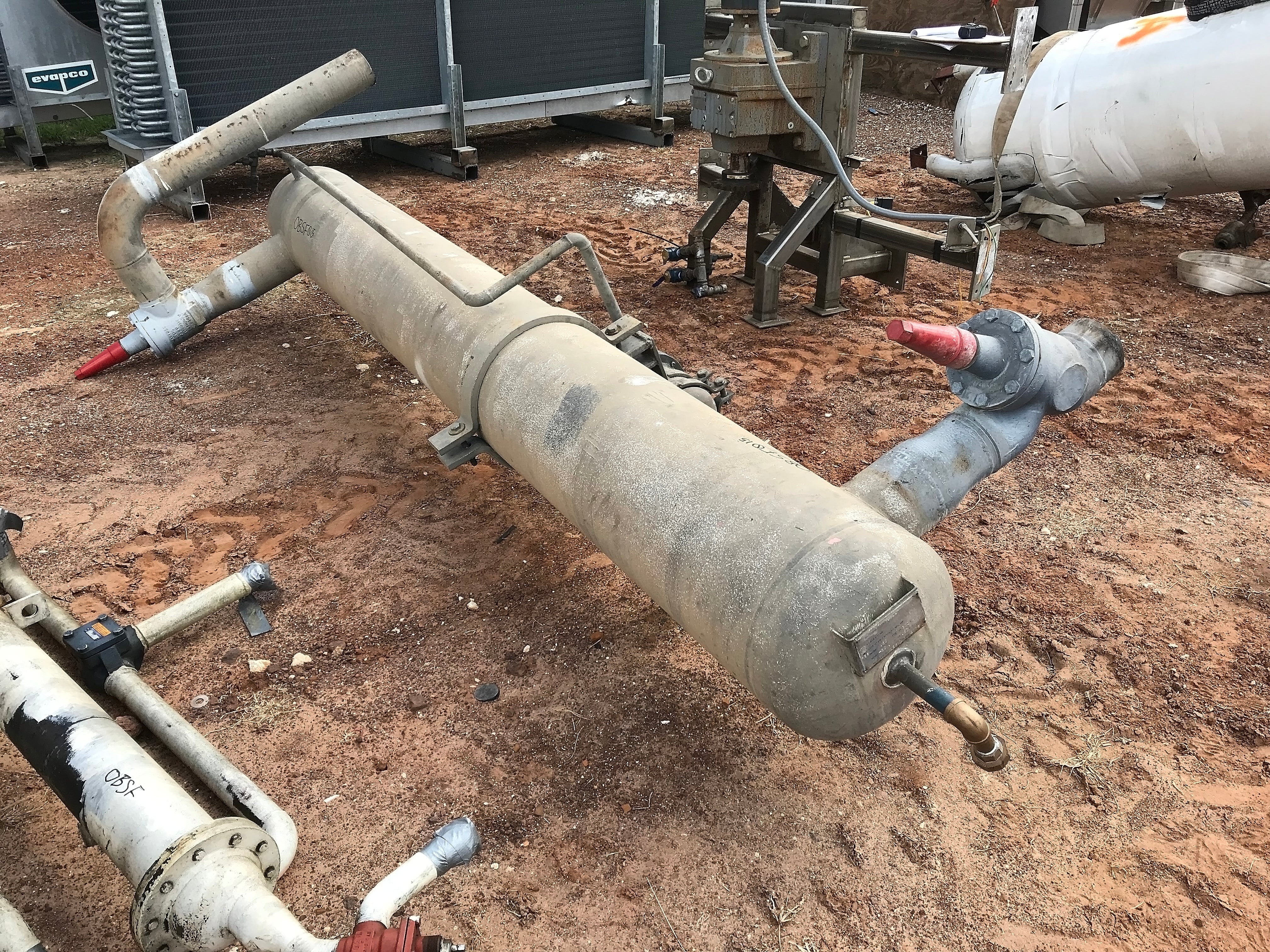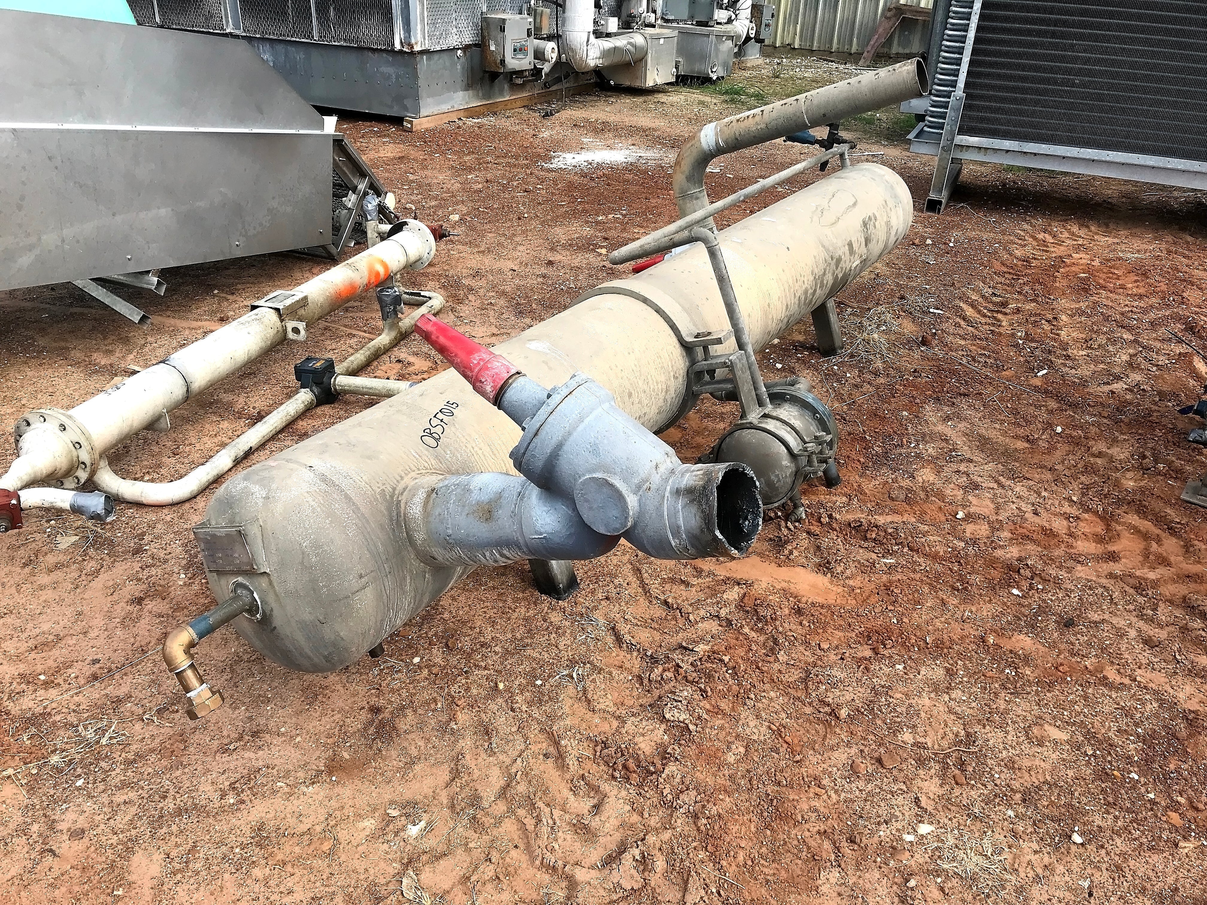 Recipiente horizontal para amoníaco. Certificado por Coastline Fabricators, Inc. Serie 1267. Año: 2002. Nat'l Bd. 1611. MAWP: 150 PSI a 300 °F. MDMT -20F a 150 PSI. Diámetro: 16 pulg. Longitud de la pared lateral: 124 pulg. Puertos: 5 pulg. Volumen aproximado: 100 galones.