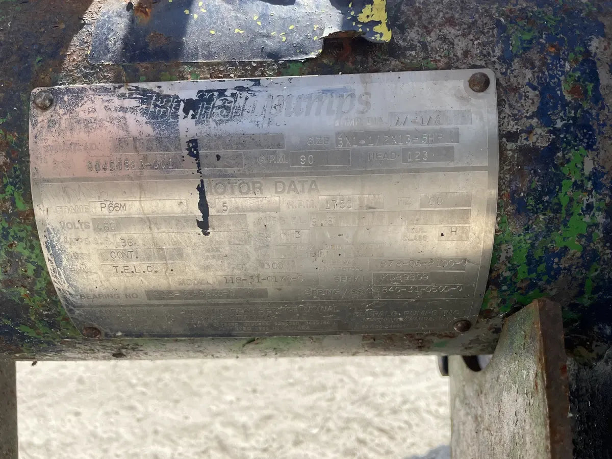 - Descripción(es) de la bomba: Impeller Dia: 11 1/8. Size: 3x1-1/2x13-5HP. GPM:90, Head: 123.