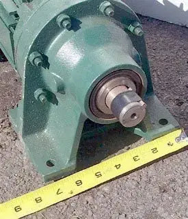 SM Cyclo Drive, 1-1/2 hp, 230/460 voltios, 118 orpm, relación 8:1, eje de 1 pulg., dimensiones 17 pulg. de largo x 9 pulg. de ancho x 7 pulg. de alto.