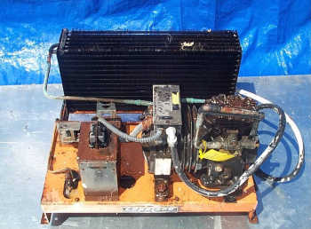 Refrigeración del área de salmuera. Compresor Copeland, ZCH0200AAB101. Refrigerante: R12. Lado alto: 300 psig; lado bajo: 150 psig. 230 V, 8,4 amperios de carga. Dimensiones totales: 32 pulgadas de largo x 26 pulgadas de ancho x 25 pulgadas de alto.