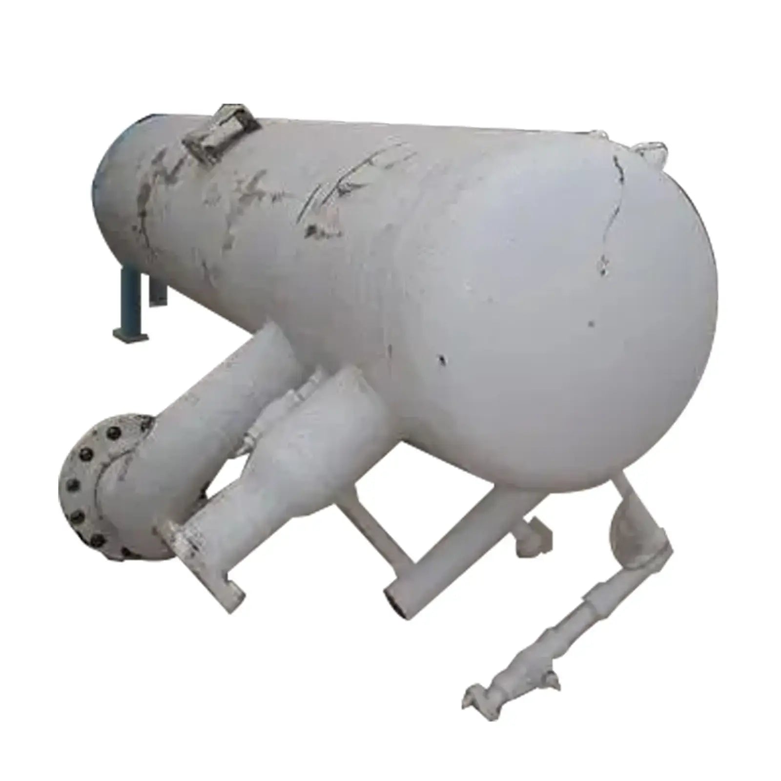 1998 Refrigeration Valves & Systems Corporation Tambor de compensación: 210 galones. S/N: 93819. Nat'l Bd: 11562. Dimensiones interiores de pared recta: 2 pies de diámetro. x 9 pies 2 pulgadas L. MAWP: 250 psi a 300°F. MDMT: -20°F a 250 psi. Entradas: (1) 4 pulg. de diámetro. puerto de succión del compresor, (1) 1 pulg. de diámetro. Puerto de alimentación de líquido, (1) 4 pulg. de diámetro. Puerto de succión húmeda. Salidas: (1) 1-1/2 pulg. de diámetro. puerto de alivio, (1) 8 pulg. de diámetro. Puerto de descarga de líquido bridado. Dimensiones totales: 10 pies de largo x 4 pies 2-1/2 pulgadas de ancho x 4 pies 11 pulgadas de alto (HB2).