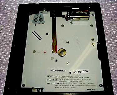 Registrador gráfico de temperatura Dickson. Número de serie: 02-4730. Grabadora de un solo bolígrafo. -40/+30 rev. Entrada: 120 VCA, 60 Hz. Salida: 12 VCA. Dimensiones totales: 7-1/2 pulgadas de largo x 4-1/2 pulgadas de ancho x 8-3/4 pulgadas de alto.