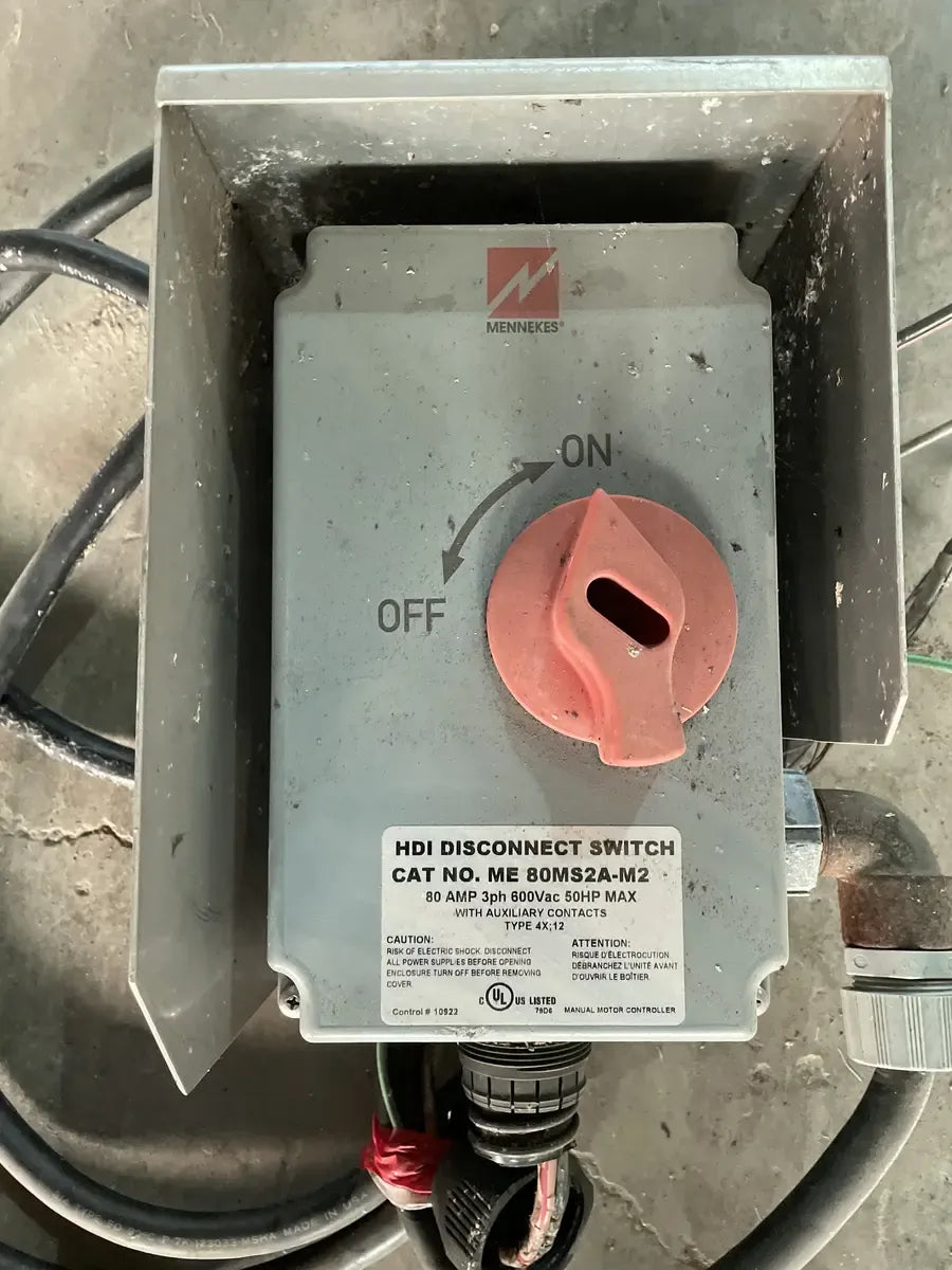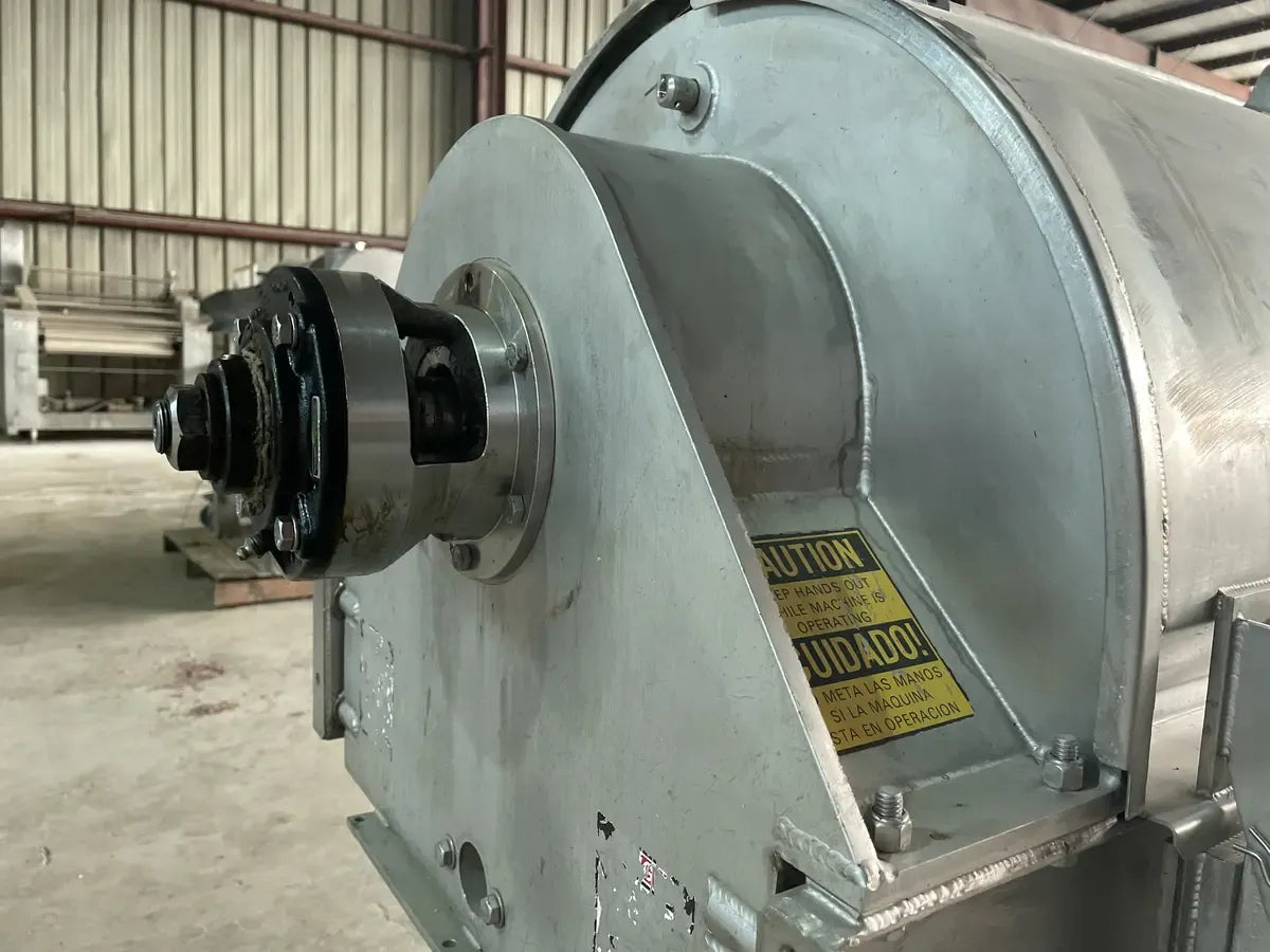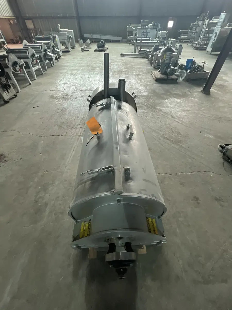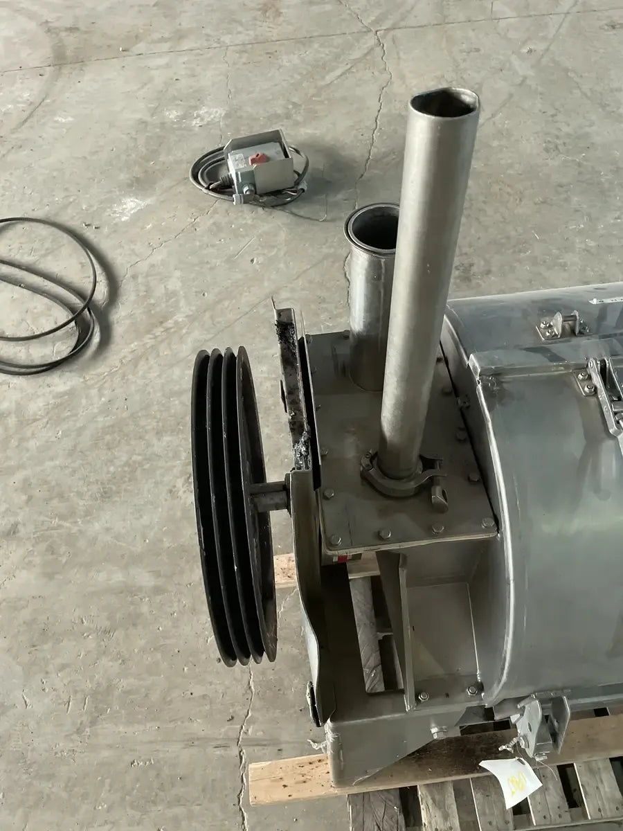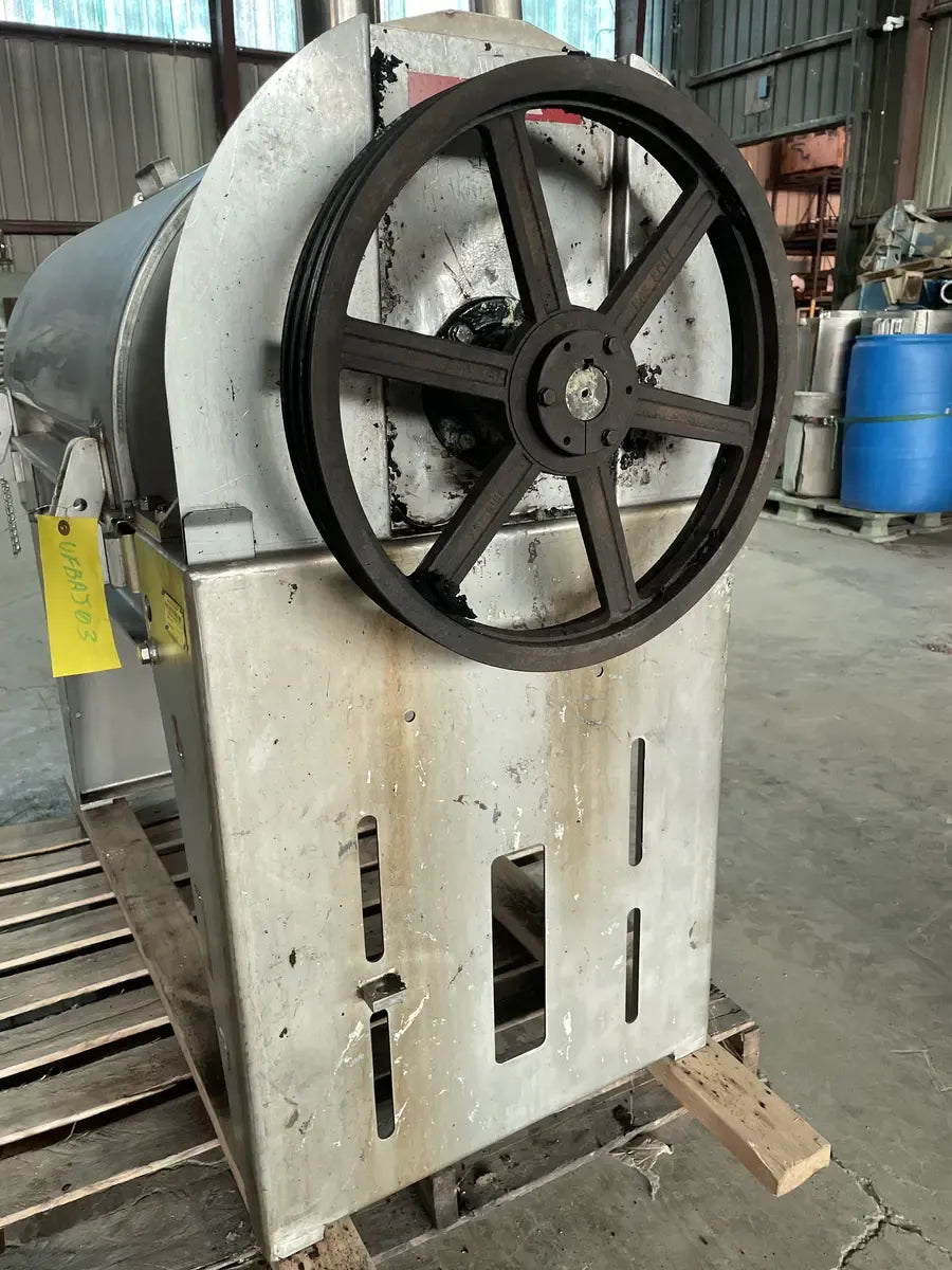 Acabador de paleta de acero inoxidable marrón 202. Número de serie: 204-BAAA-238. Motor accionado por correa: 30 HP, 60 Hz, 230/460V, 1750 RPM. Dimensiones totales: 72 x 32 x 61 pulgadas.