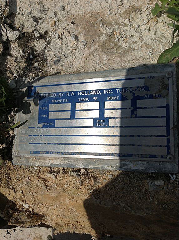 RW Holland, Inc. Intercambiador de calor de carcasa y tubos de alta presión - 97 pies cuadrados