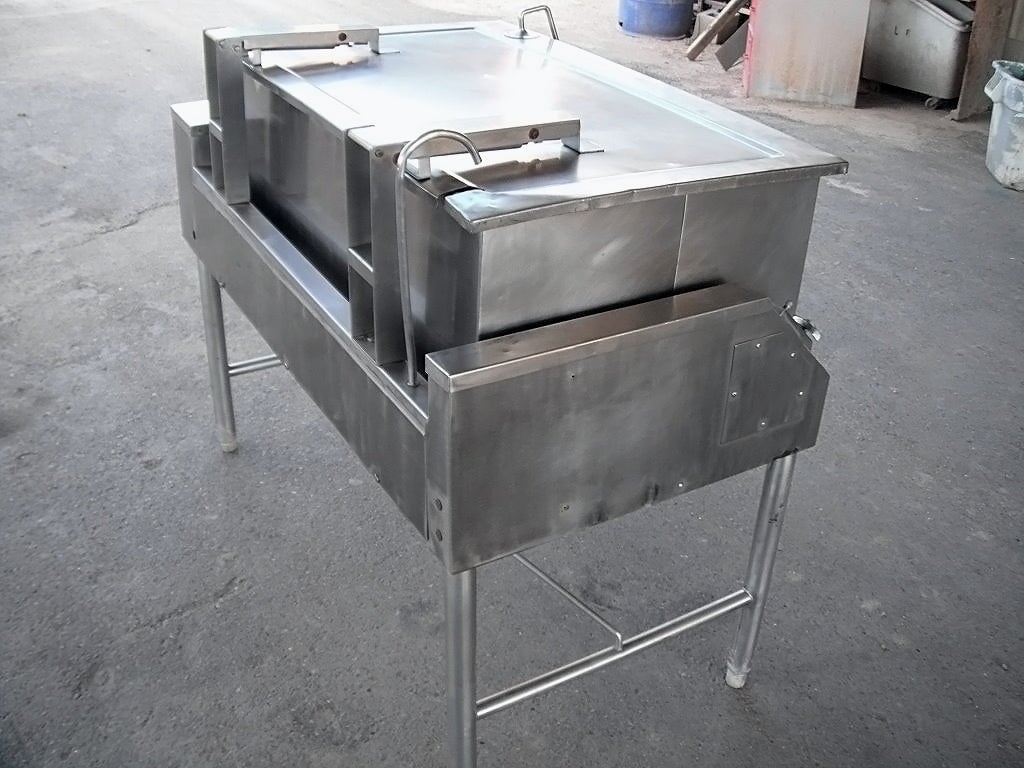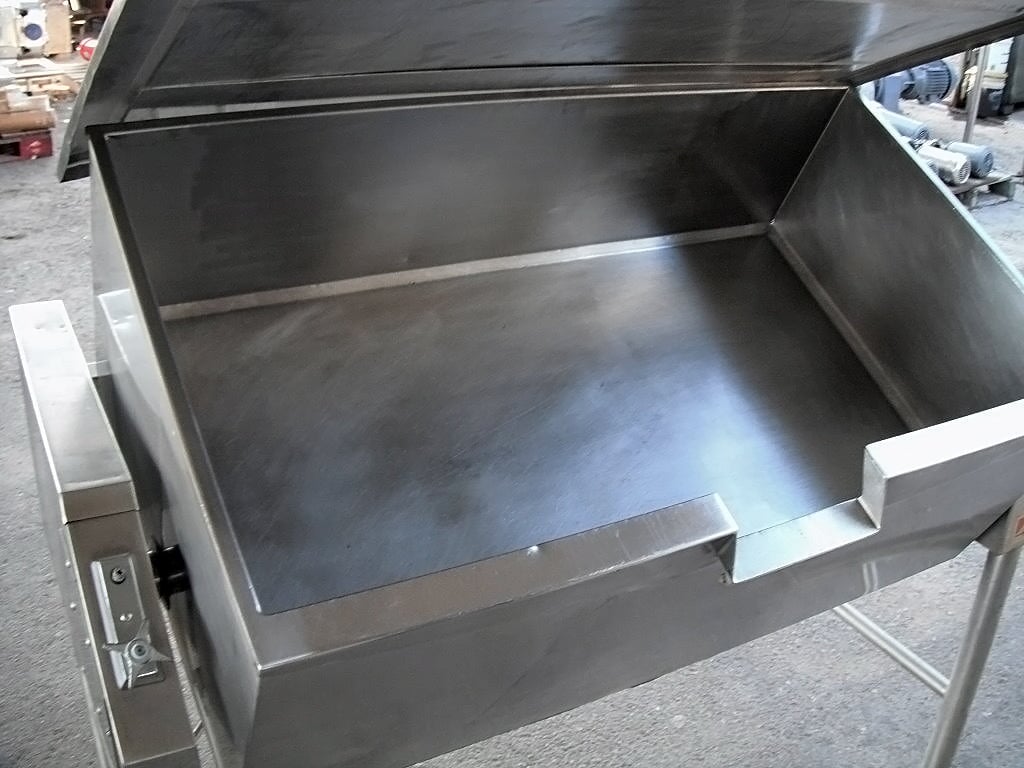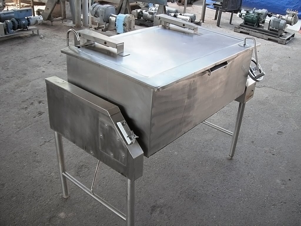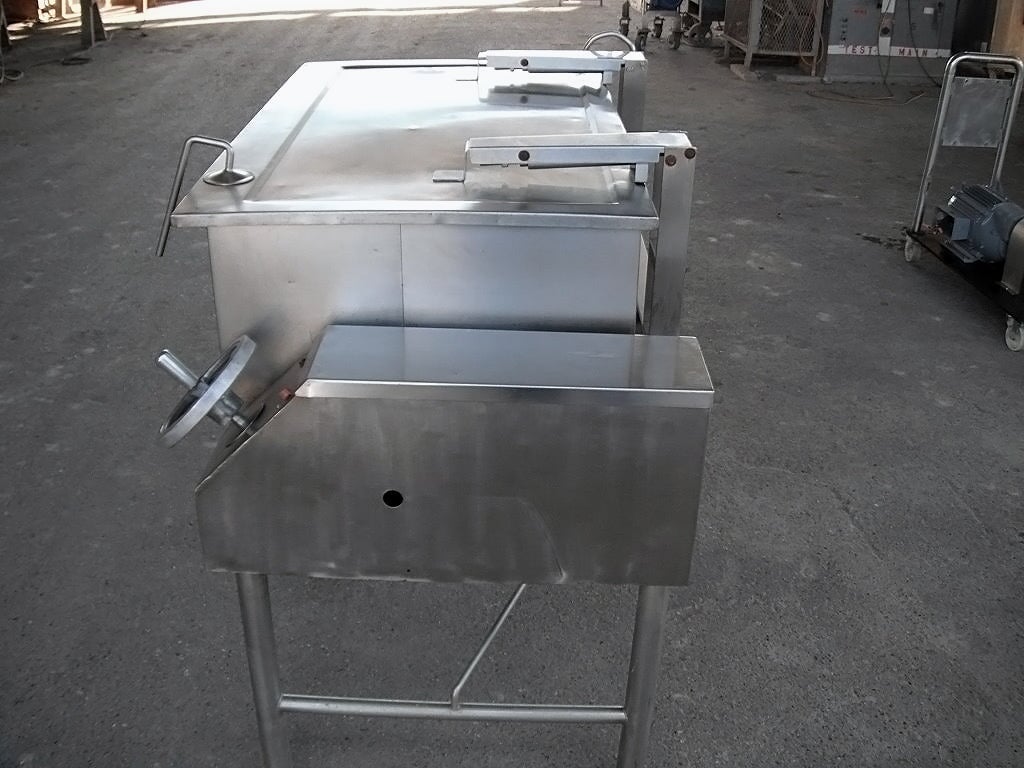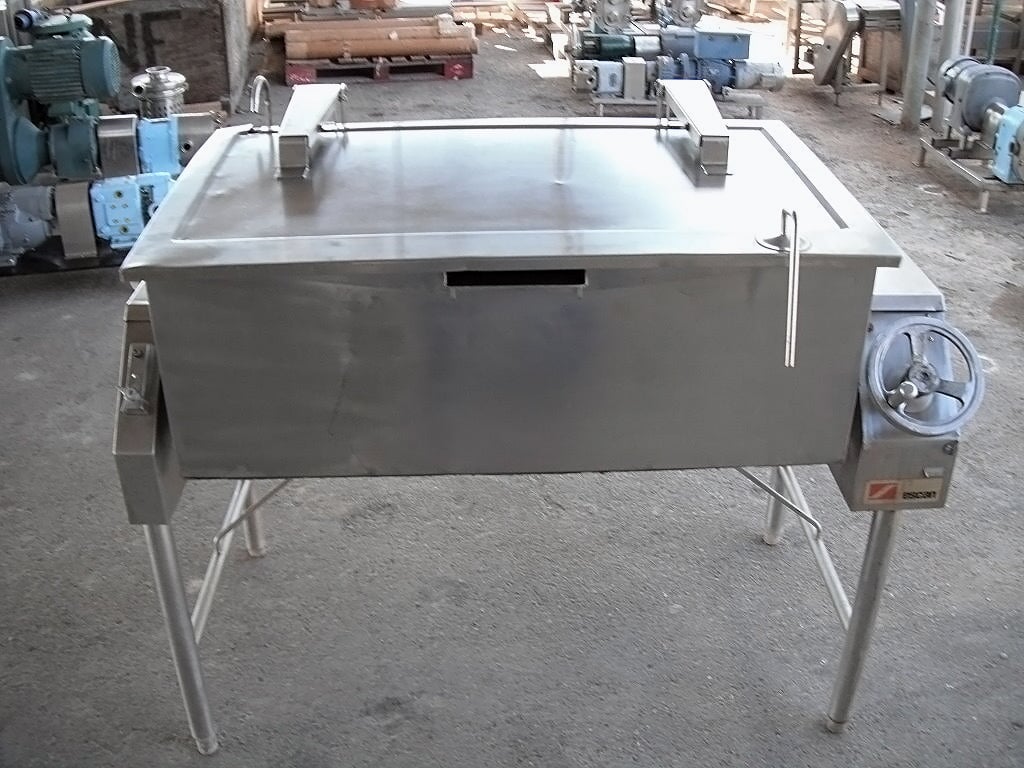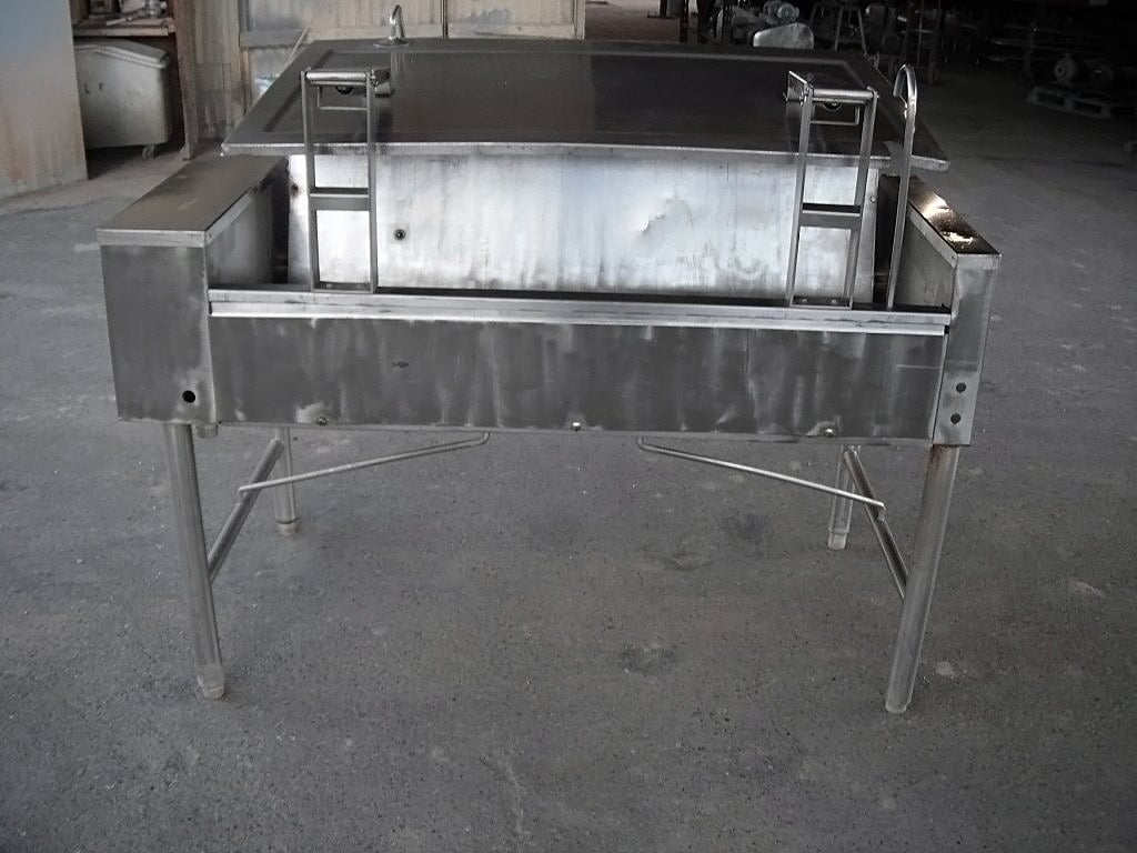 Sartén Eléctrica. Capacidad de 40 galones. Dimensiones interiores: 43 pulgadas de largo x 23 pulgadas de ancho x 12 ½ pulgadas de alto. La altura interior del pico vertedor es de 10 ½ pulgadas. El pico vertedor mide 8 pulgadas de ancho. Tapa abatible. Grifo. Mecanismo de inclinación manual con mango de 8 pulg. de diámetro. Dimensiones totales: 4 pies 9 pulgadas de largo x 2 pies 11 pulgadas de ancho x 3 pies 10 pulgadas de alto.