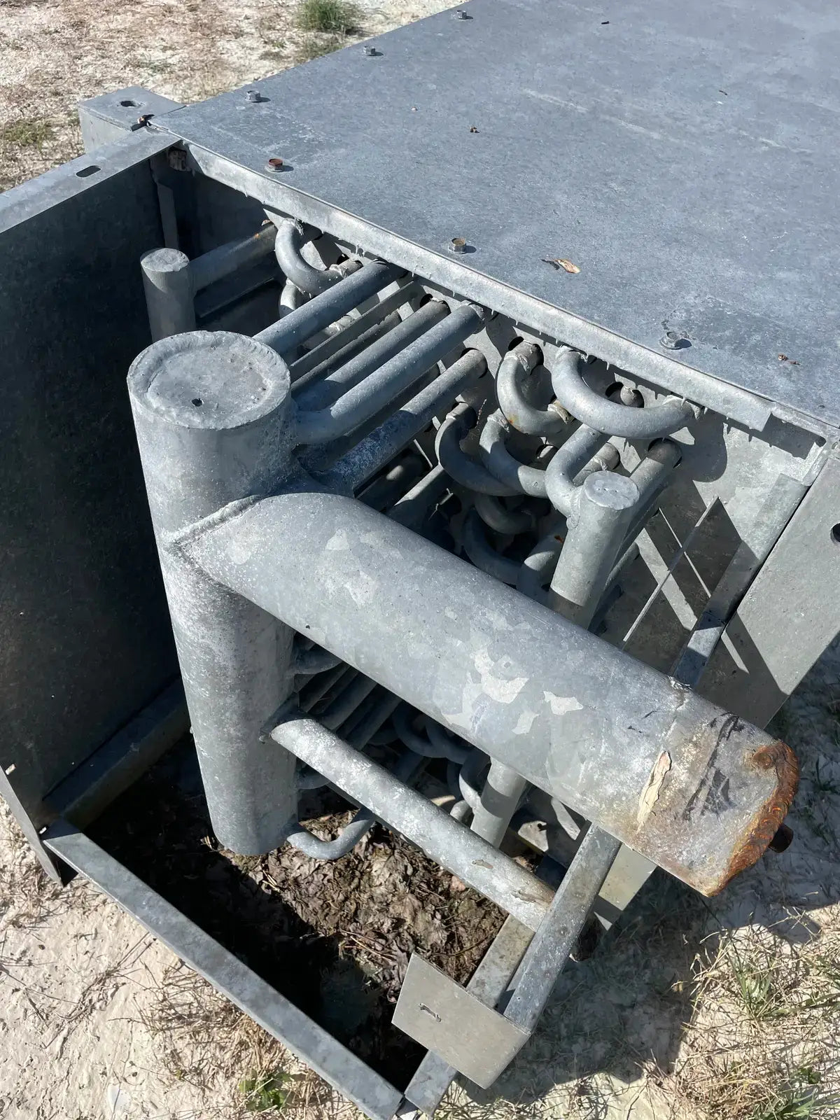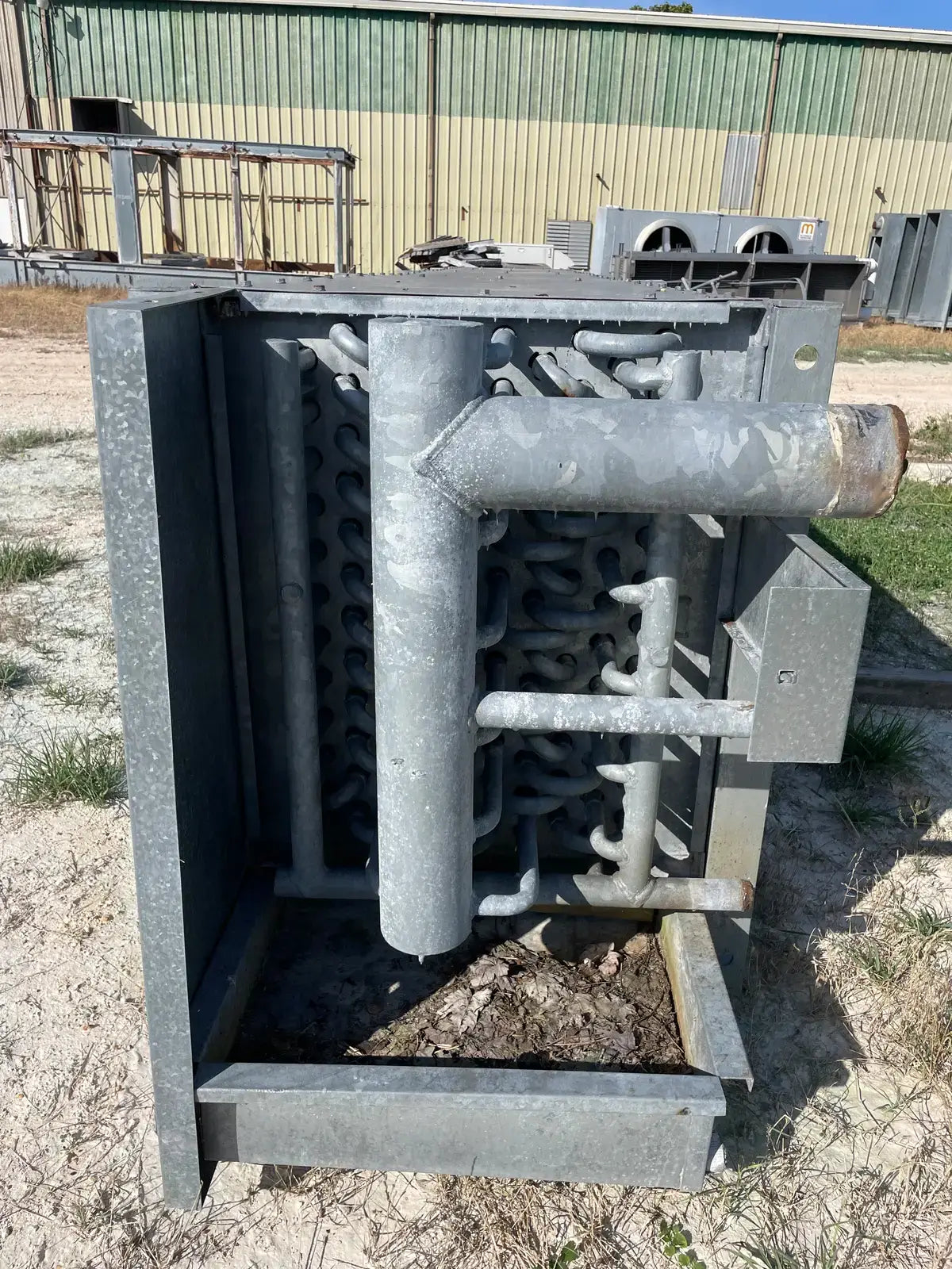 Serpentín evaporativo de baja temperatura ICB de Imeco. Modelo: Serpentín de aletas de placa. N.º de serie: 9008-1 LH. Fecha de fabricación: 30-1-96.