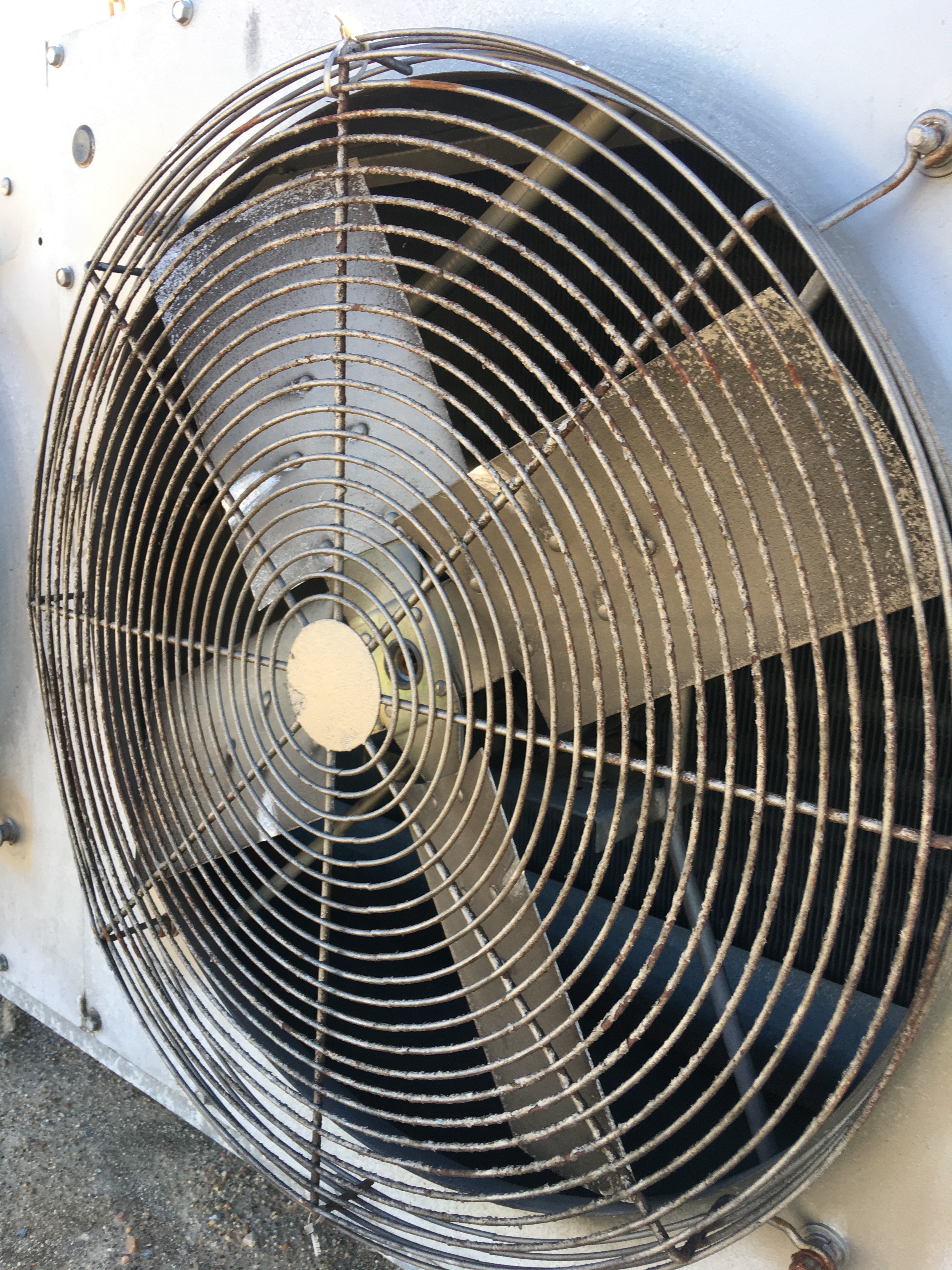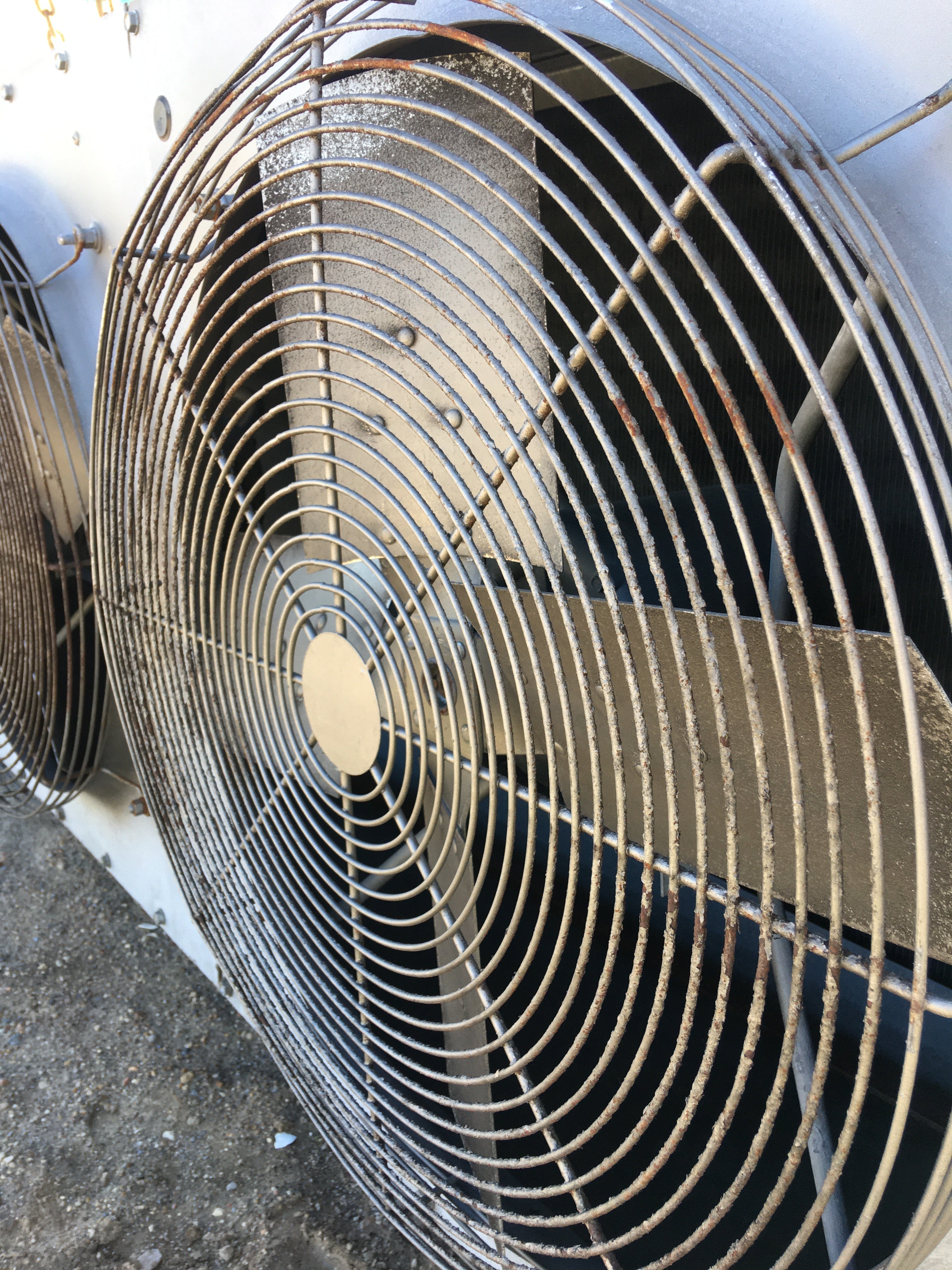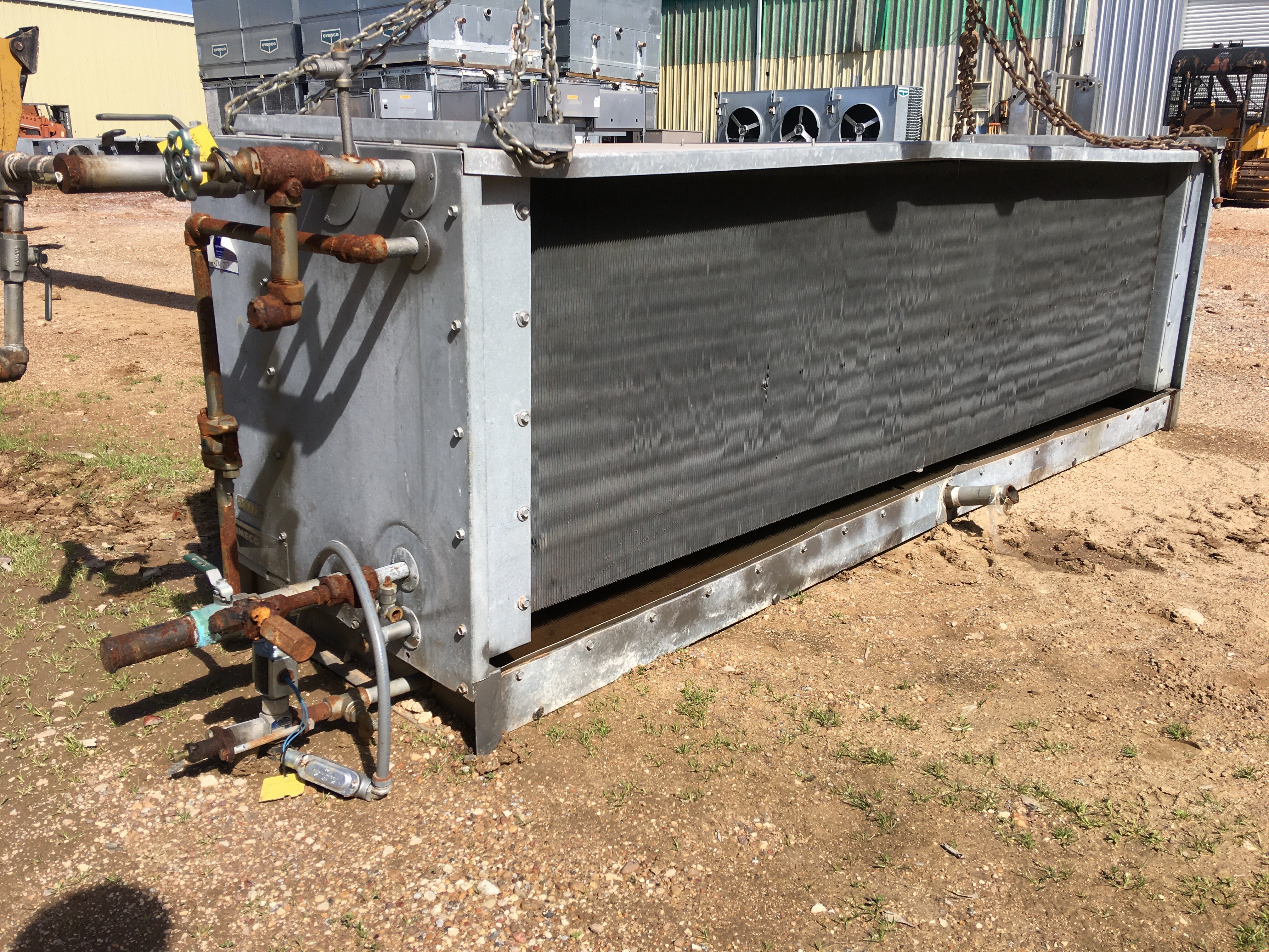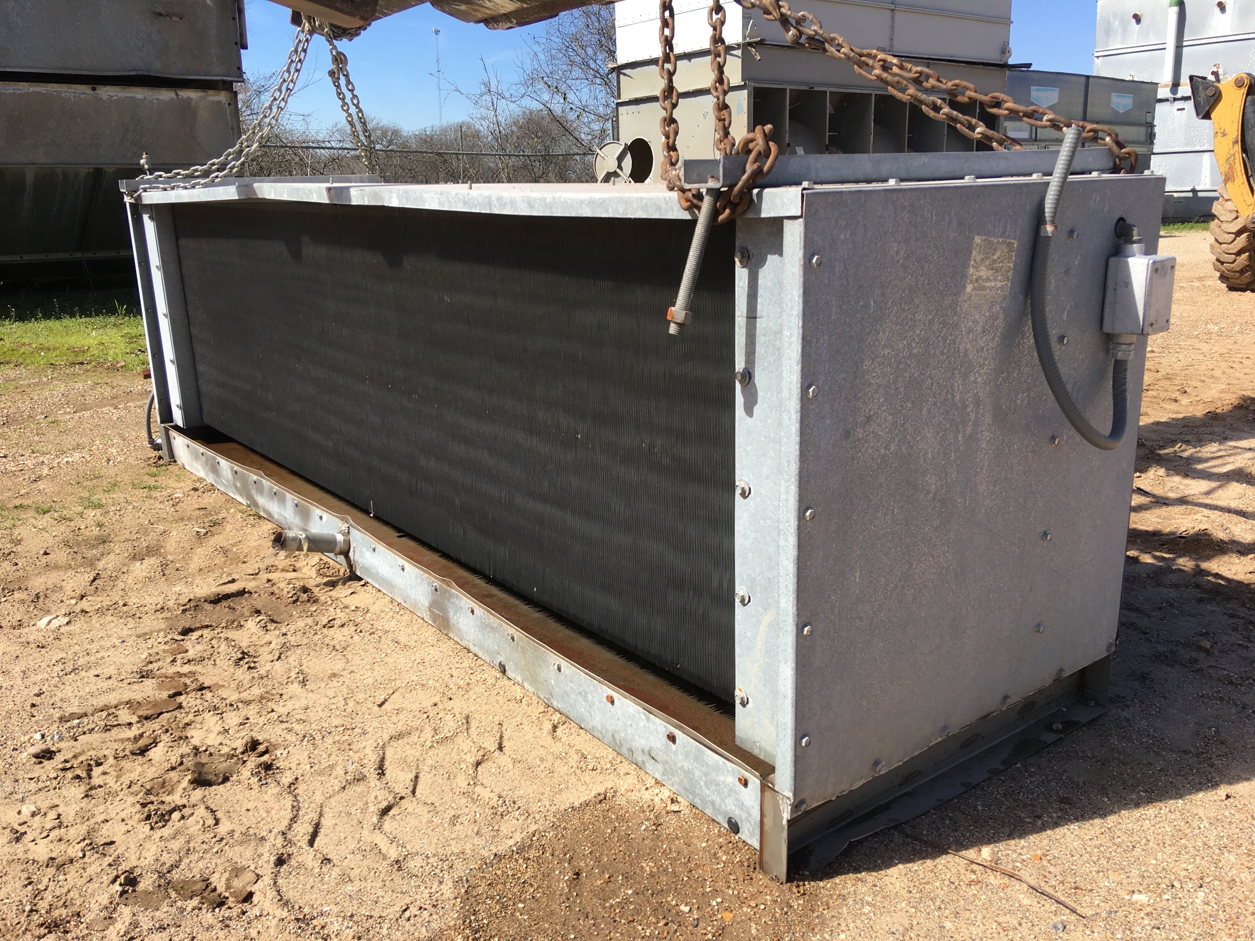 Serpentín evaporador de amoníaco Imeco CO-324-44 -9TR, 3 ventiladores (baja temperatura) Este evaporador funciona con serpentines esmerilados de baja temperatura. Tiene una capacidad de 7350 (BTUH / °F TD) con un tonelaje estimado de 9(TR) @15TD. Un flujo de aire de 13340 CFM. Utiliza serpentines recirculados de alimentación superior con un sistema de descongelación por gas. Anteriormente funcionaba con amoníaco, pero es comparable al freón. Este paquete también incluye 3 motores de ventilador de 0,3 HP.