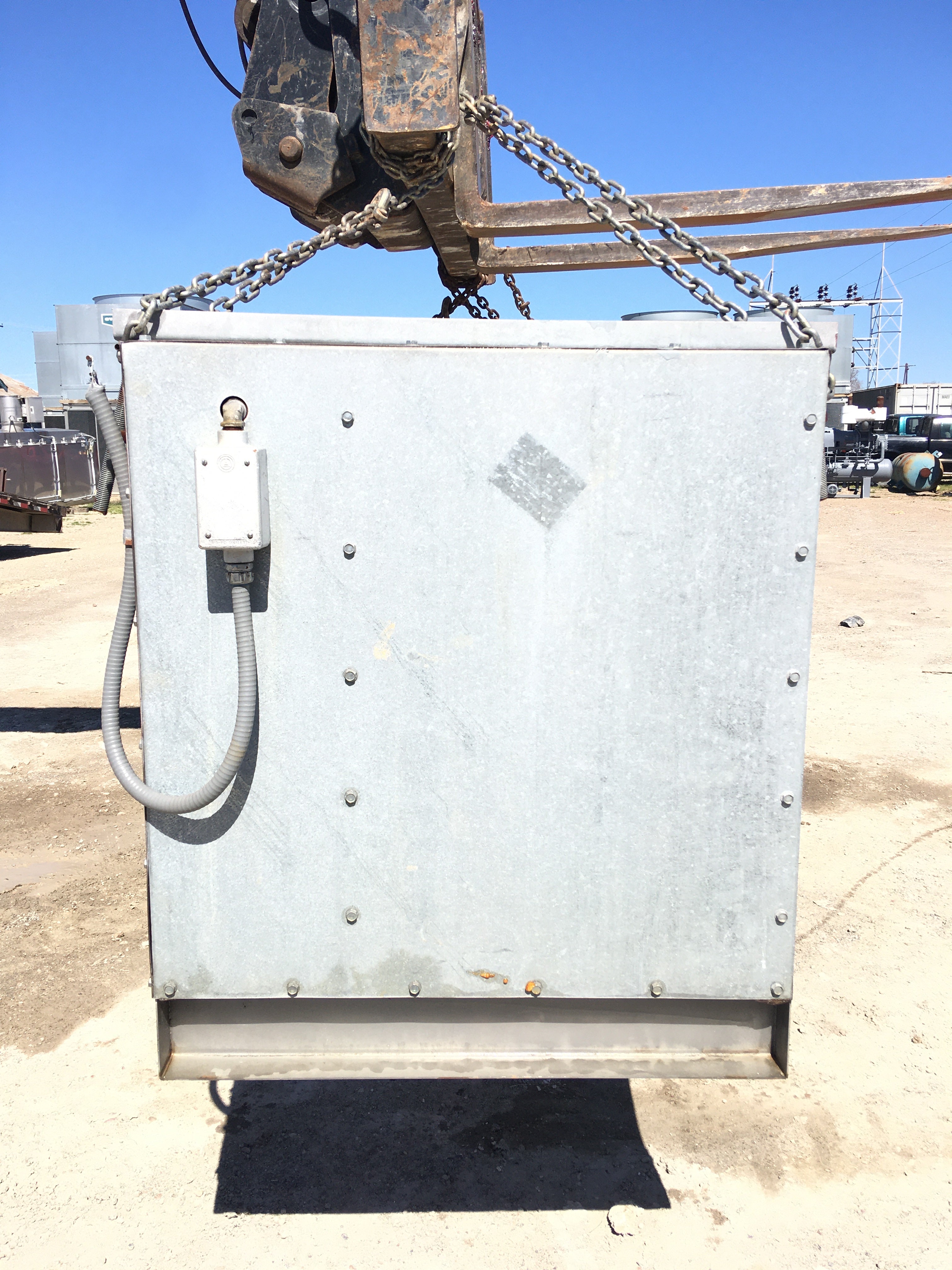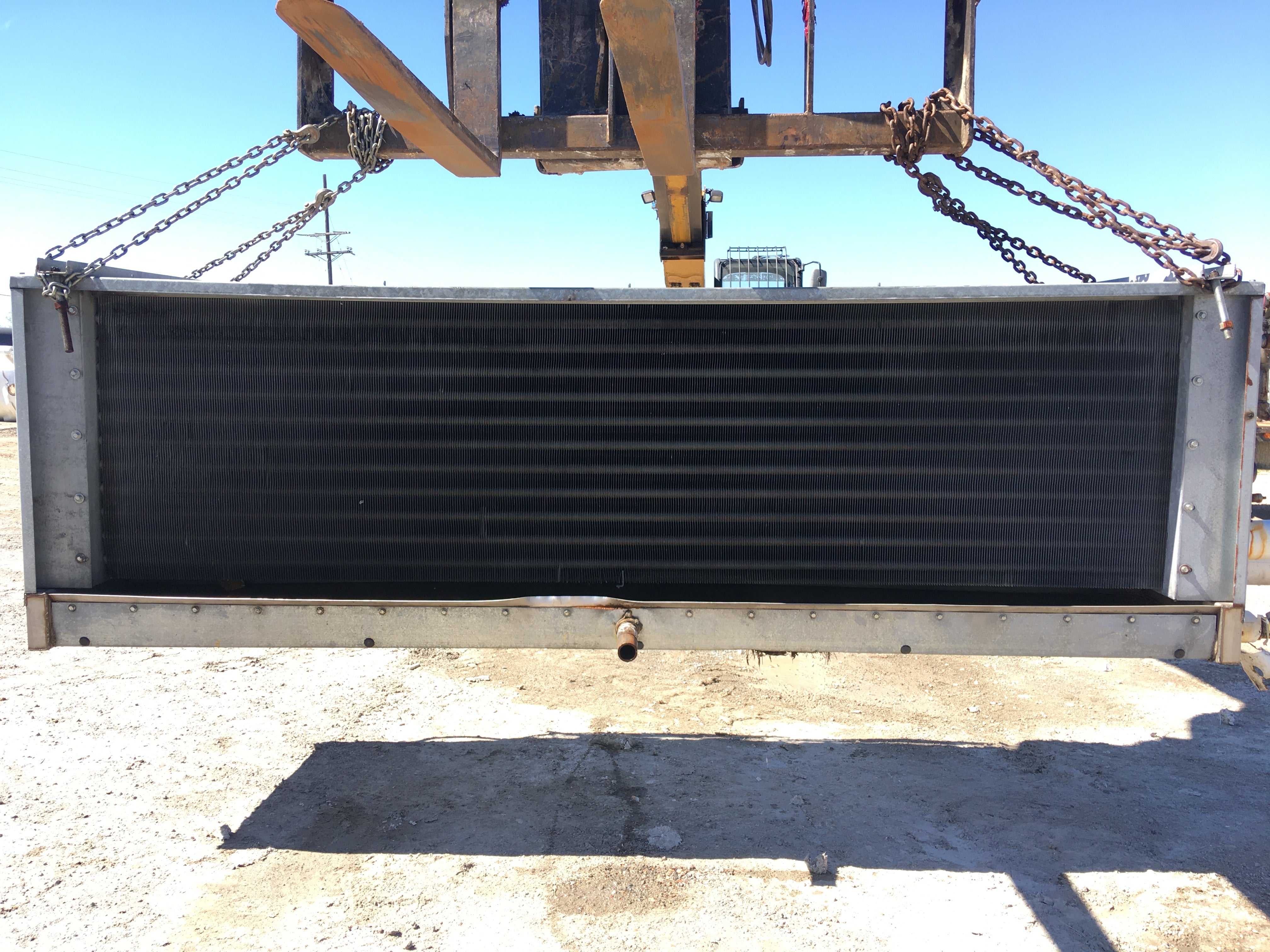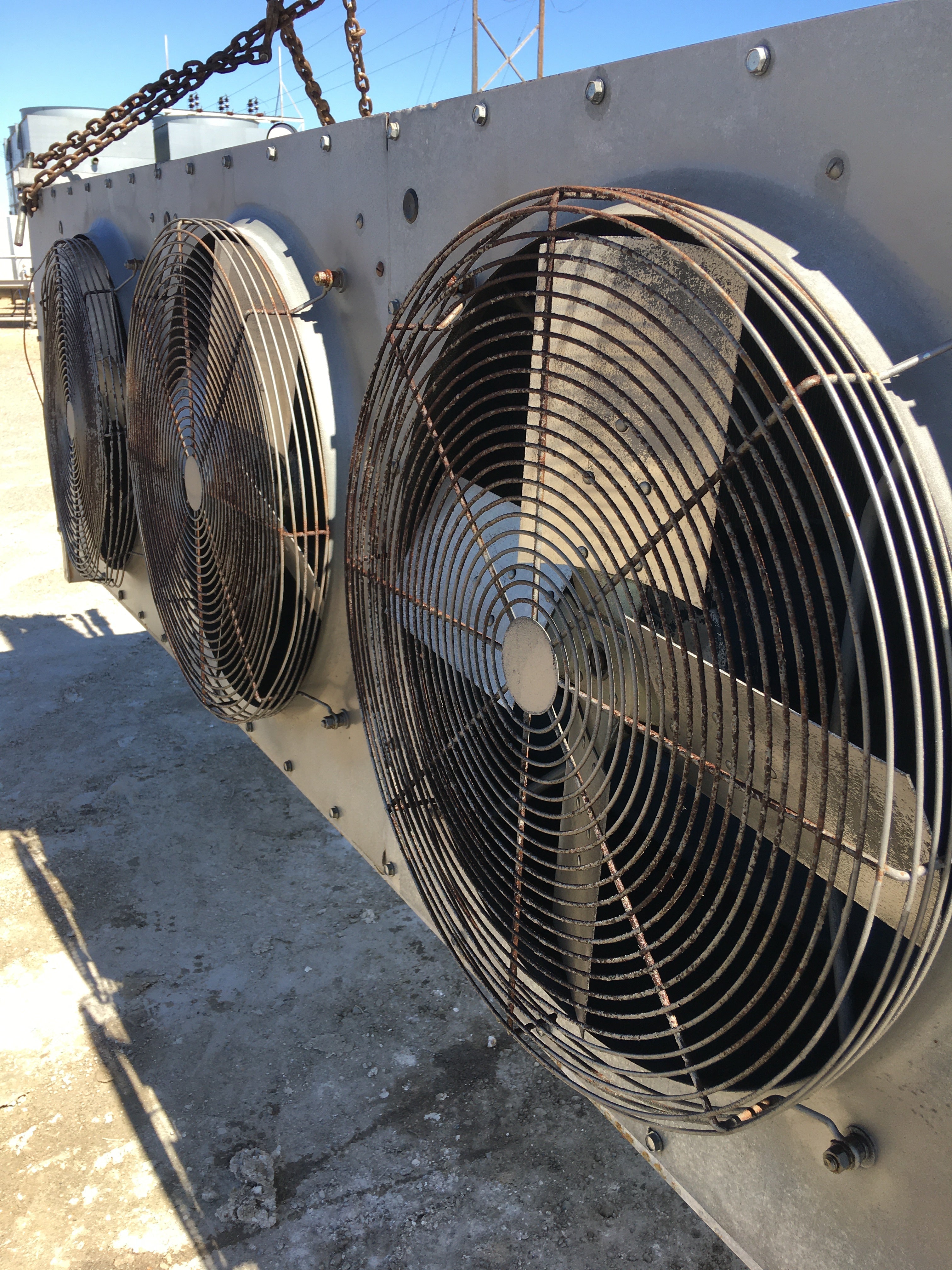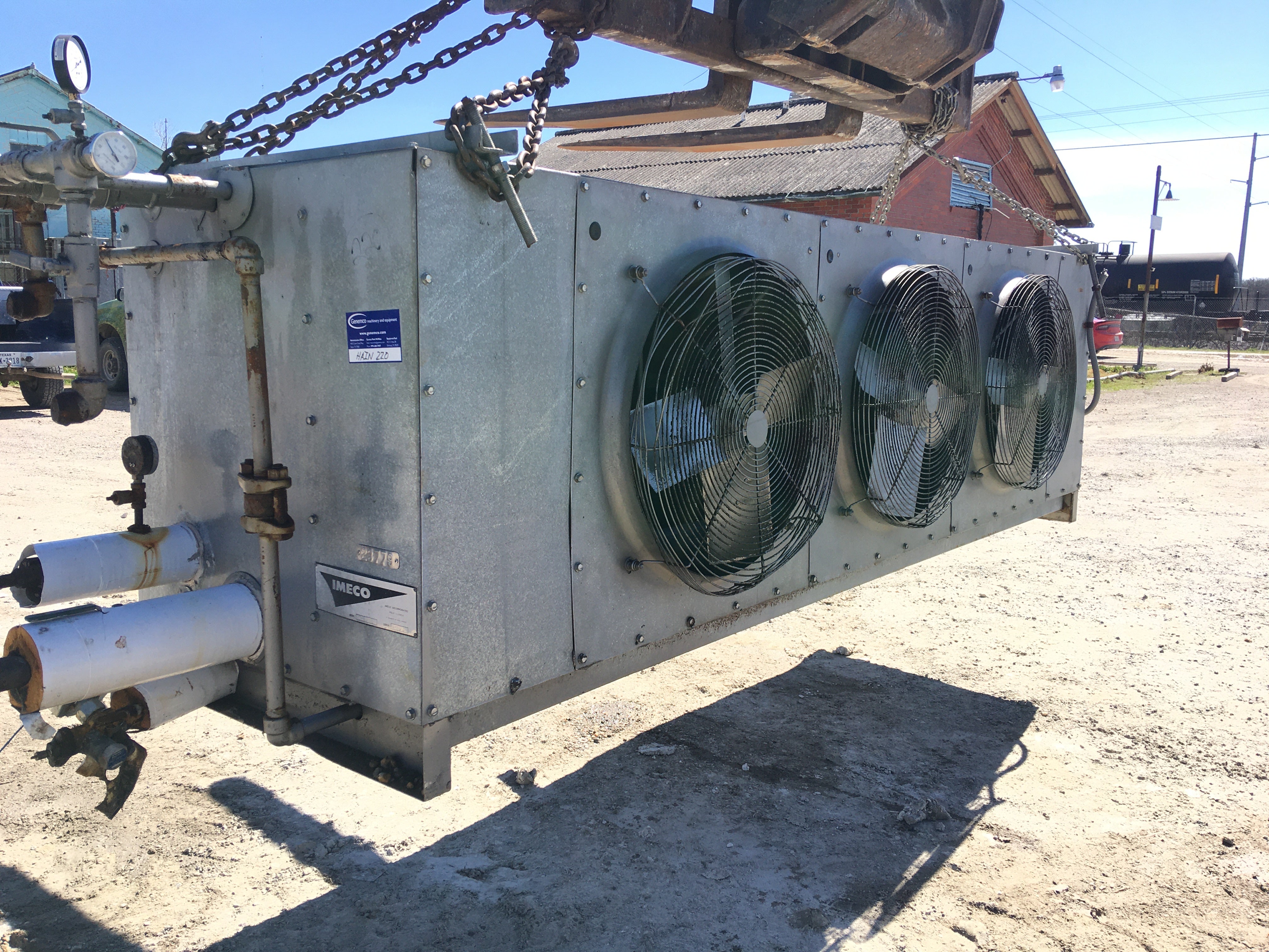 Imeco CO-324-44 Serpentín evaporador de amoníaco -9TR, 3 ventiladores (baja temperatura) Este evaporador funciona con serpentines esmerilados de baja temperatura. Tiene una capacidad de 7350 (BTUH / °F TD) con un tonelaje estimado de 9(TR) @15TD. Un flujo de aire de 13340 CFM. Utiliza serpentines de alimentación superior recirculados con un sistema de descongelación por gas. Anteriormente funcionaba con amoníaco, pero es comparable al freón. Este paquete también incluye 3 motores de ventilador de 0,3 HP.
