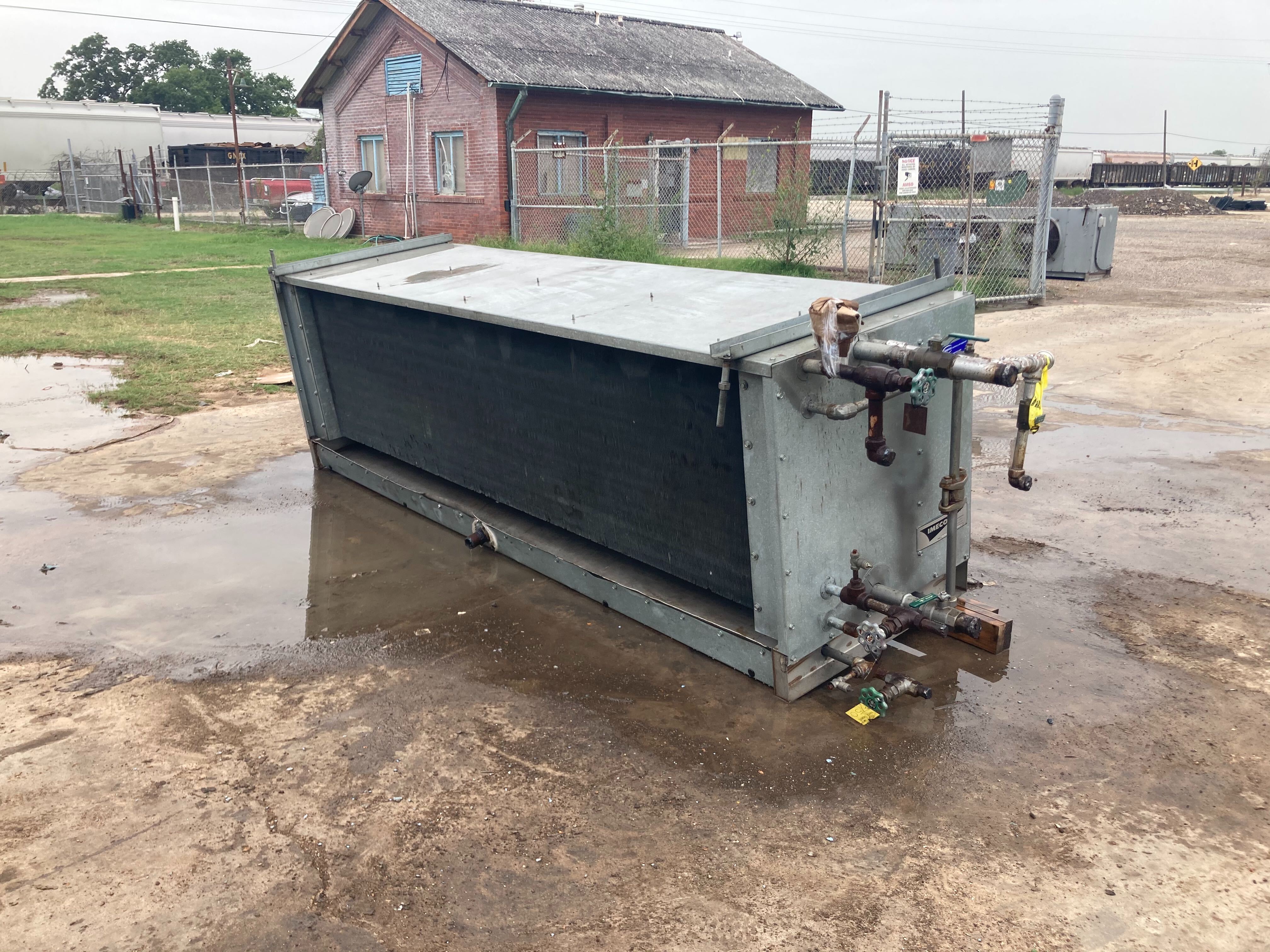 Imeco CO-324-44 Serpentín evaporador de amoníaco -9TR, 3 ventiladores (baja temperatura) Este evaporador funciona con serpentines esmerilados de baja temperatura. Tiene una capacidad de 7350 (BTUH / °F TD) con un tonelaje estimado de 9(TR) @15TD. Un flujo de aire de 13340 CFM. Utiliza serpentines de alimentación superior recirculados con un sistema de descongelación por gas. Anteriormente funcionaba con amoníaco, pero es comparable al freón. Este paquete también incluye 3 motores de ventilador de 0,3 HP.